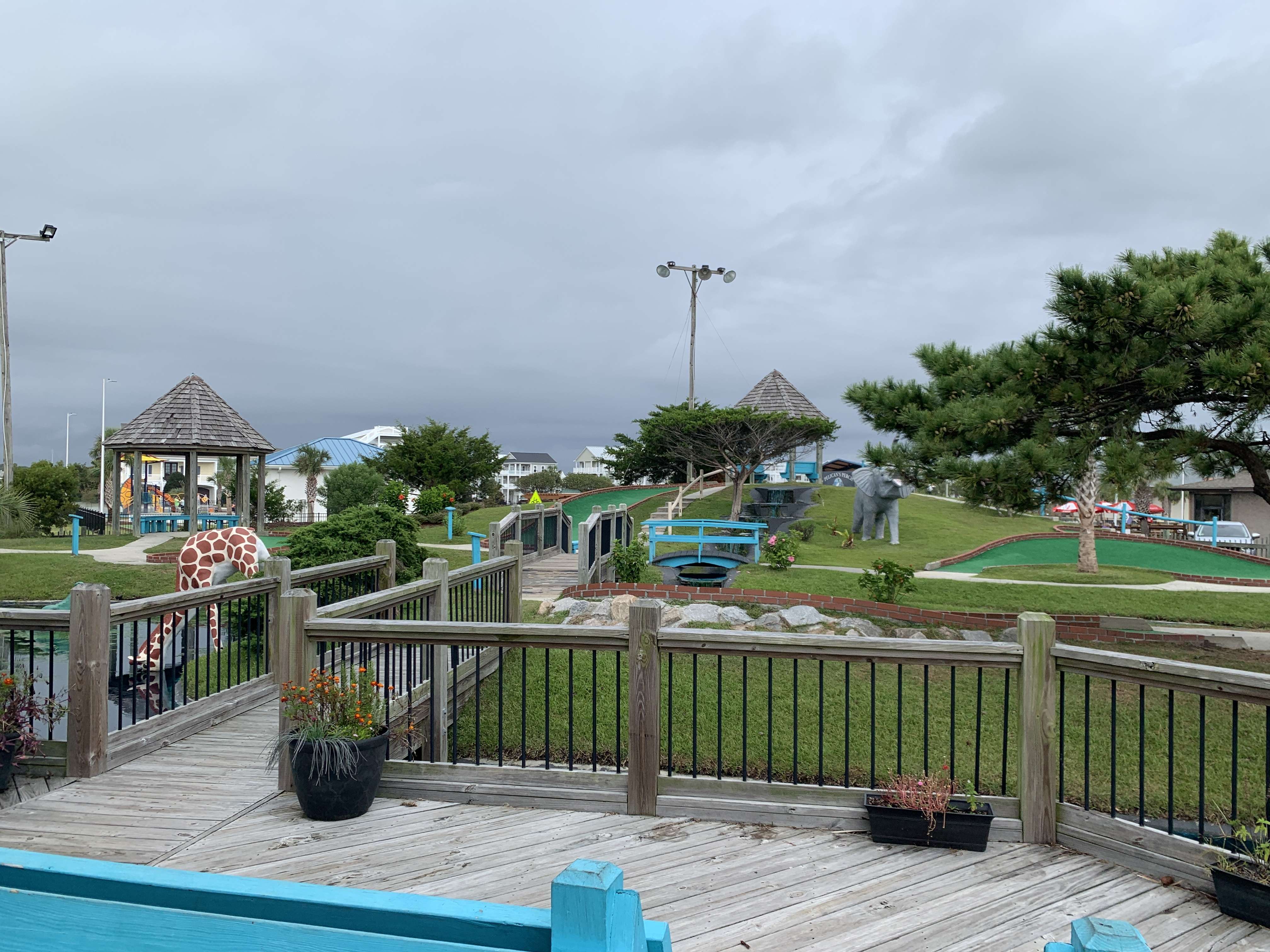 On our walk back home, we stopped and played mini-golf at River Country Mini Golf. Although the animal theme looked cute from a distance, the course itself was pretty uninspired. The theming wasn’t carried through to the holes, there were hardly any obstacles on the course itself, and some of the hole layouts repeated themselves. We always find mini-golf fun just because it is mini-golf, but we were disappointed in this course.