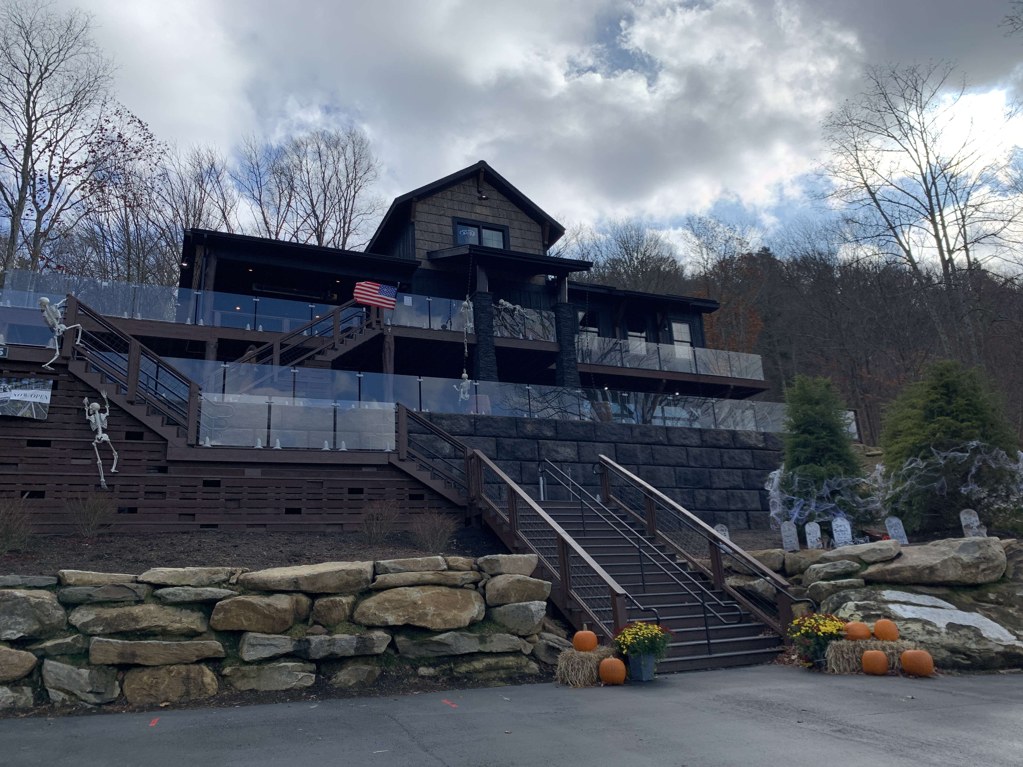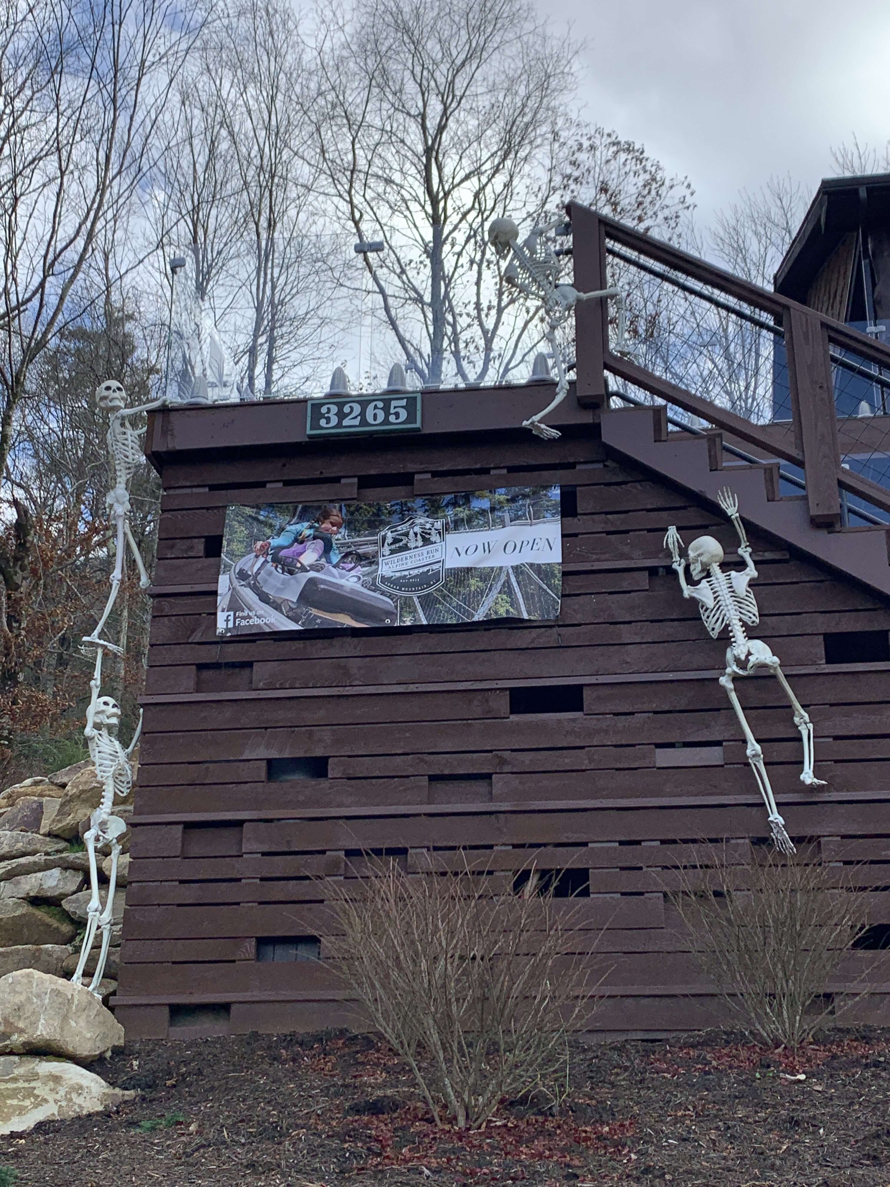 We arrived slightly early and waited in the car for a few minutes and then checked out their Halloween decorations on the way up. The kids loved the skeletons climbing all over the place.