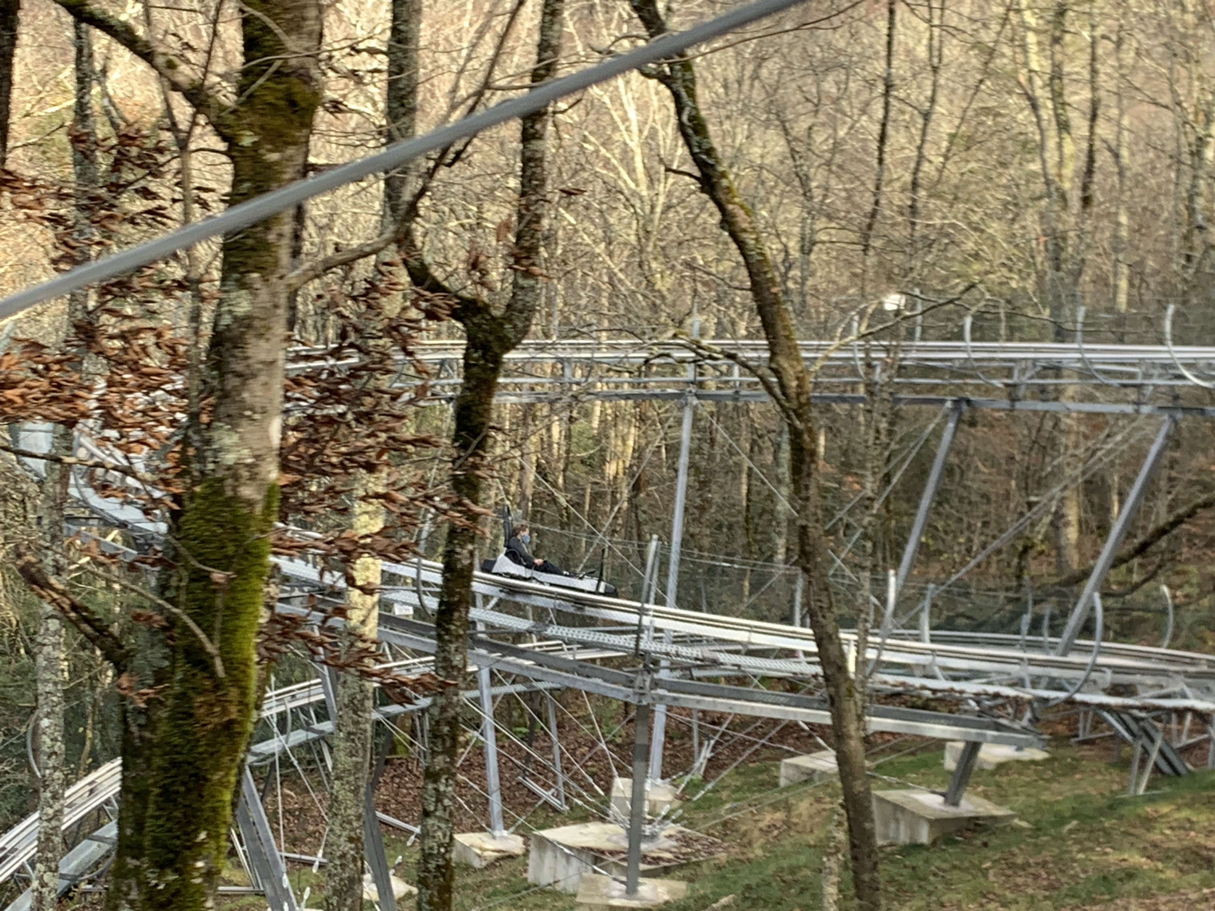 The track is 3,160 feet long and includes three 360 degree loops. The coaster is literally built into the mountain, curving around trees and rocks as gravity pulls you down the slope. It really is a unique experience to be zipping down the side of a mountain, navigating waves and dips and twists in the track as the trees rush past. It felt so much faster and more exciting than I had anticipated. We all loved it.