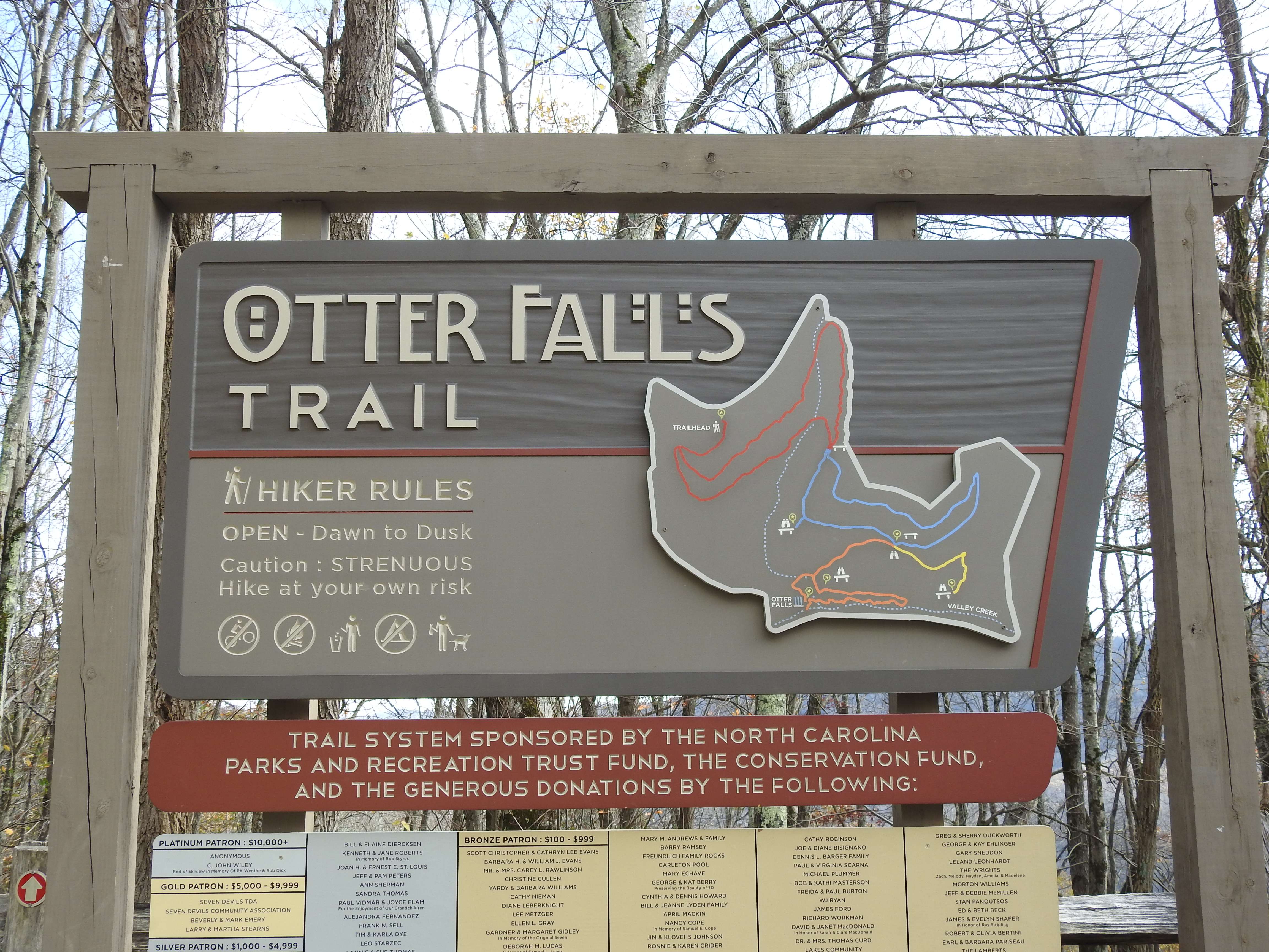 We took an early November trip into the mountains to check out the Wilderness Run Alpine Coaster. We had a great – but short – time there. In order to make the trip worthwhile and to get a real taste of fall in the mountains, I wanted to do a hike as well. My criteria were simple – I was looking for a relatively short hike close to Banner Elk with a waterfall at the end. There were a few popular options but I settled on the little-known Otter Falls in Seven Devils, NC.