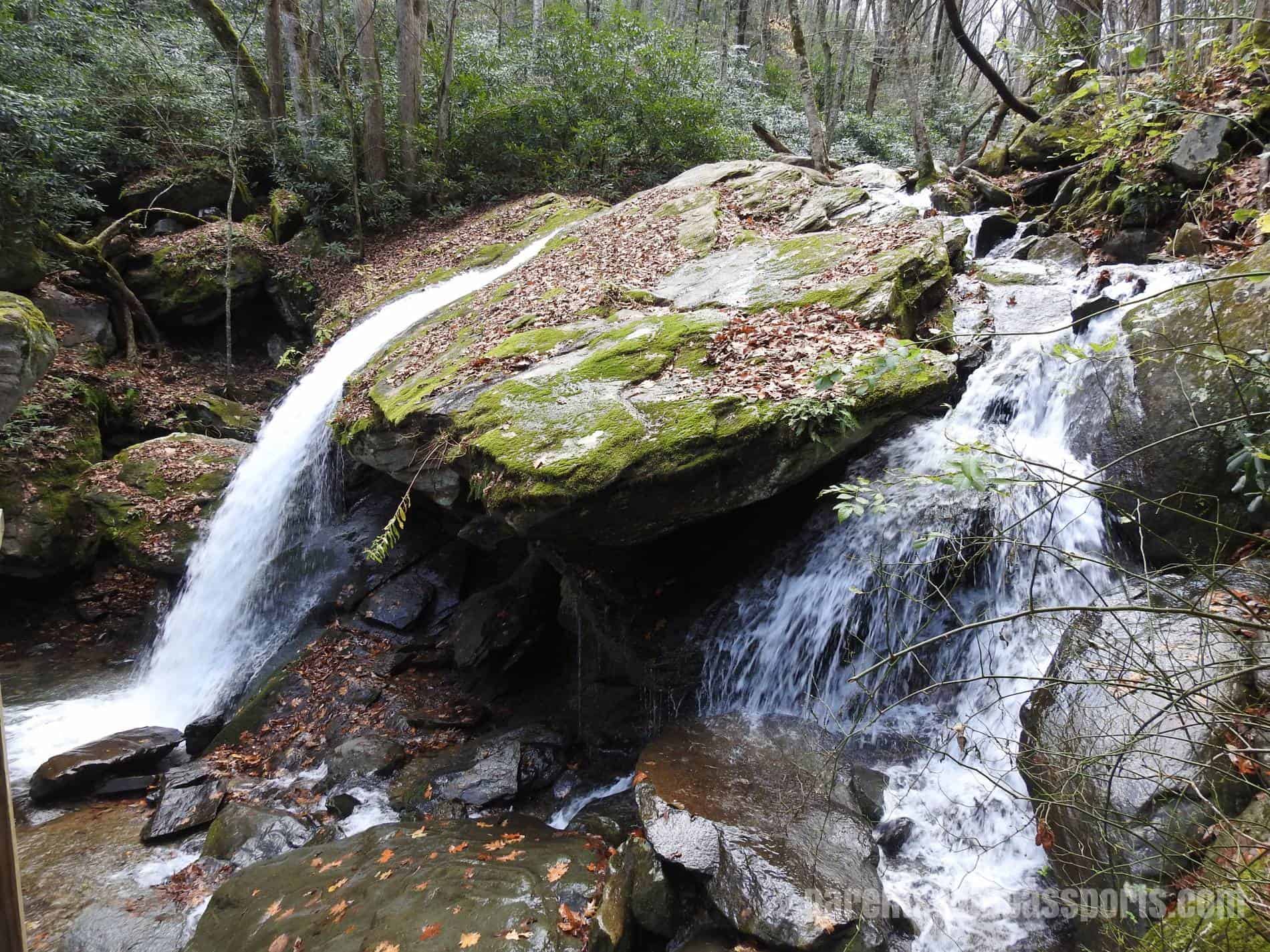 Otter Falls is located on Skyland Drive in Seven Devils and has a very small parking lot right off the main road. It probably only fit about a dozen cars and with its location off a narrow winding road, I don’t know that you could park anywhere else if it were full. We got lucky and there was one open spot when we arrived.