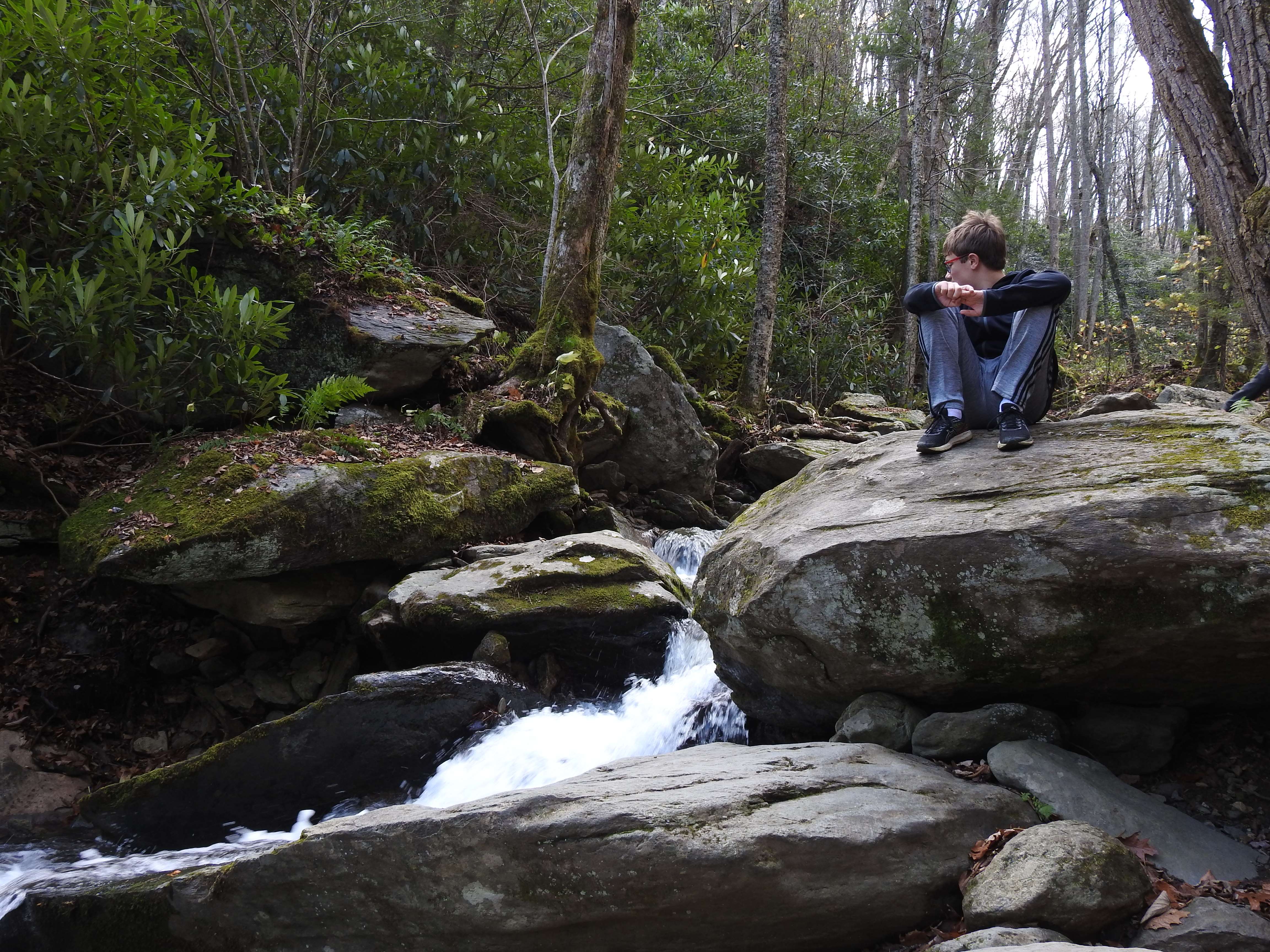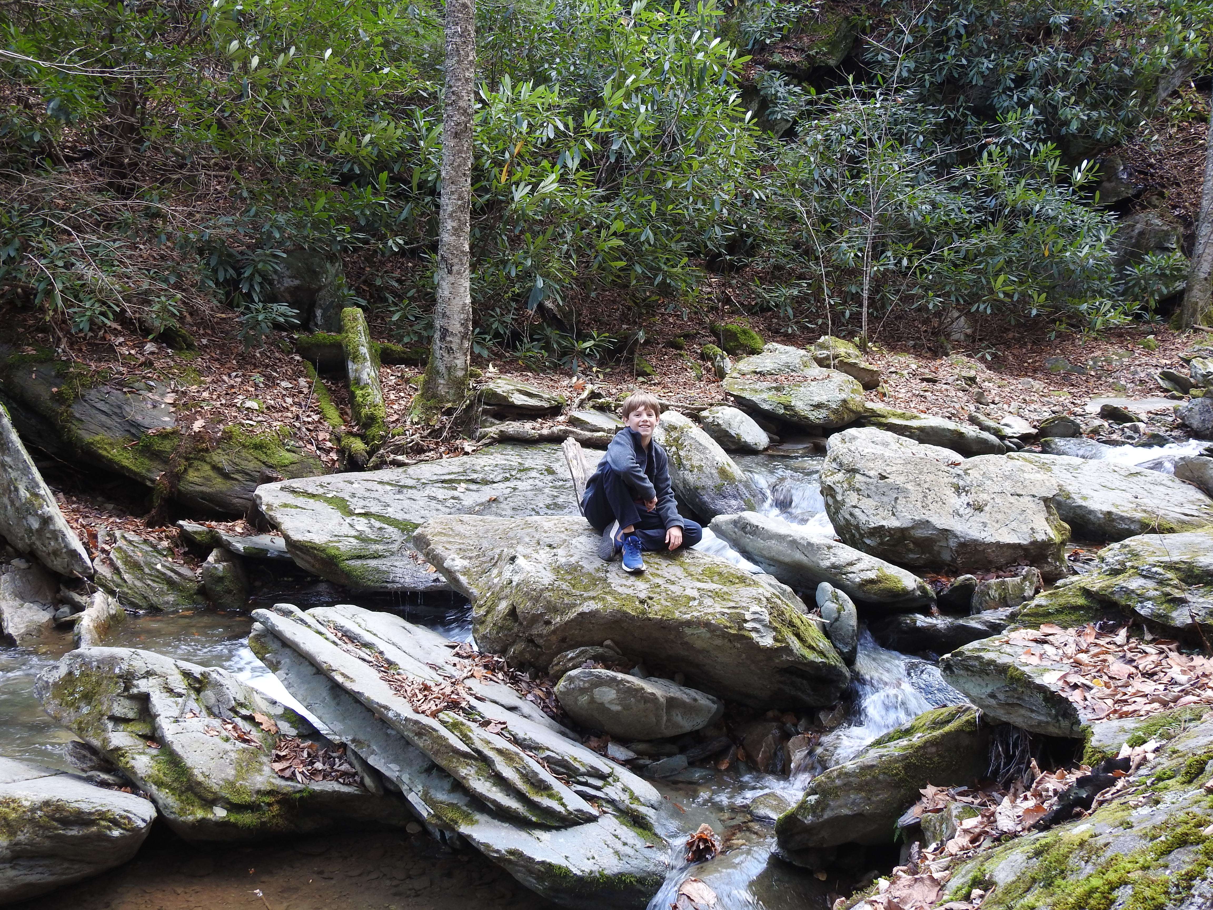 There were plenty of large boulders to scramble over further downstream. The boys loved climbing and playing along the water, as well as relaxing and just enjoying the surroundings. There are several spots where you can safely dip your feet in the water and cool off if you are there during warmer months.