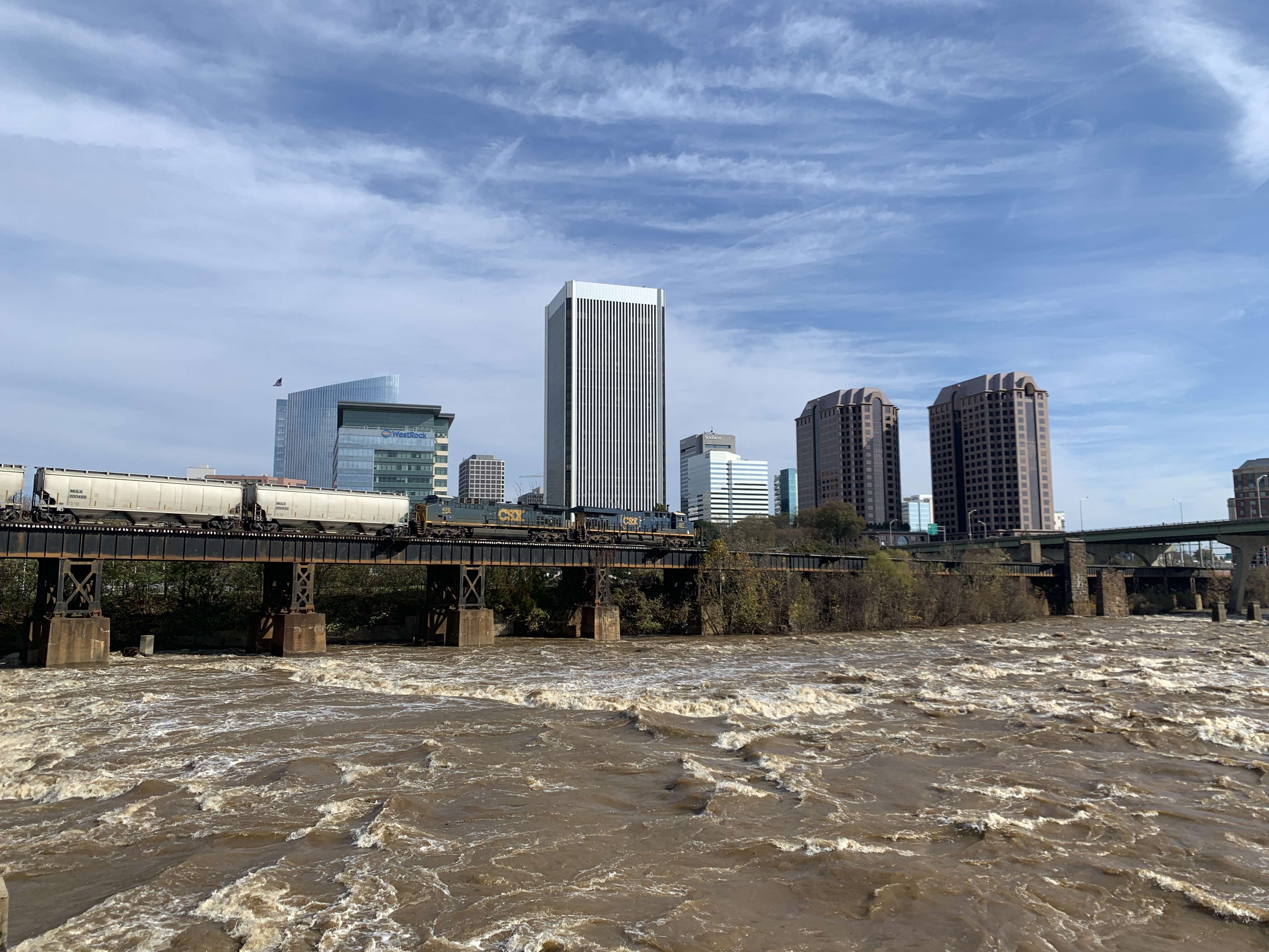 Before heading home from Richmond after my husband’s marathon, we did a brief walking tour of the city. We walked from our hotel to grab some breakfast and then headed down to the riverfront and across the bridge to Brown’s Island. I ran 7 marathons in my younger days and don’t remember ever touring a city the day after, so kudos to my husband for being up for a walking adventure.