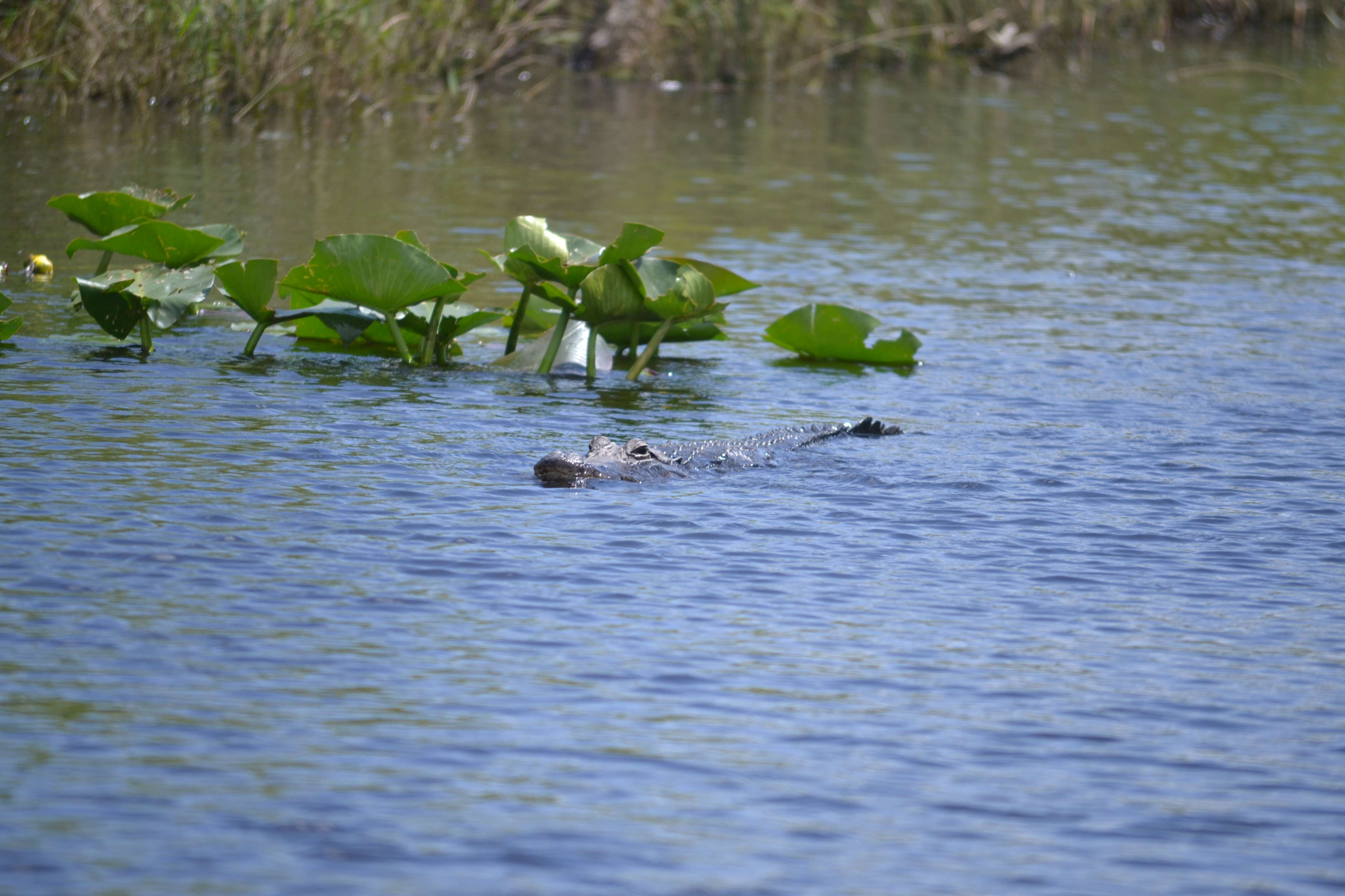 From there we moved on to some deeper waters and wider pathways. And it wasn’t long before we spotted some gators! We saw a few out for an afternoon swim.