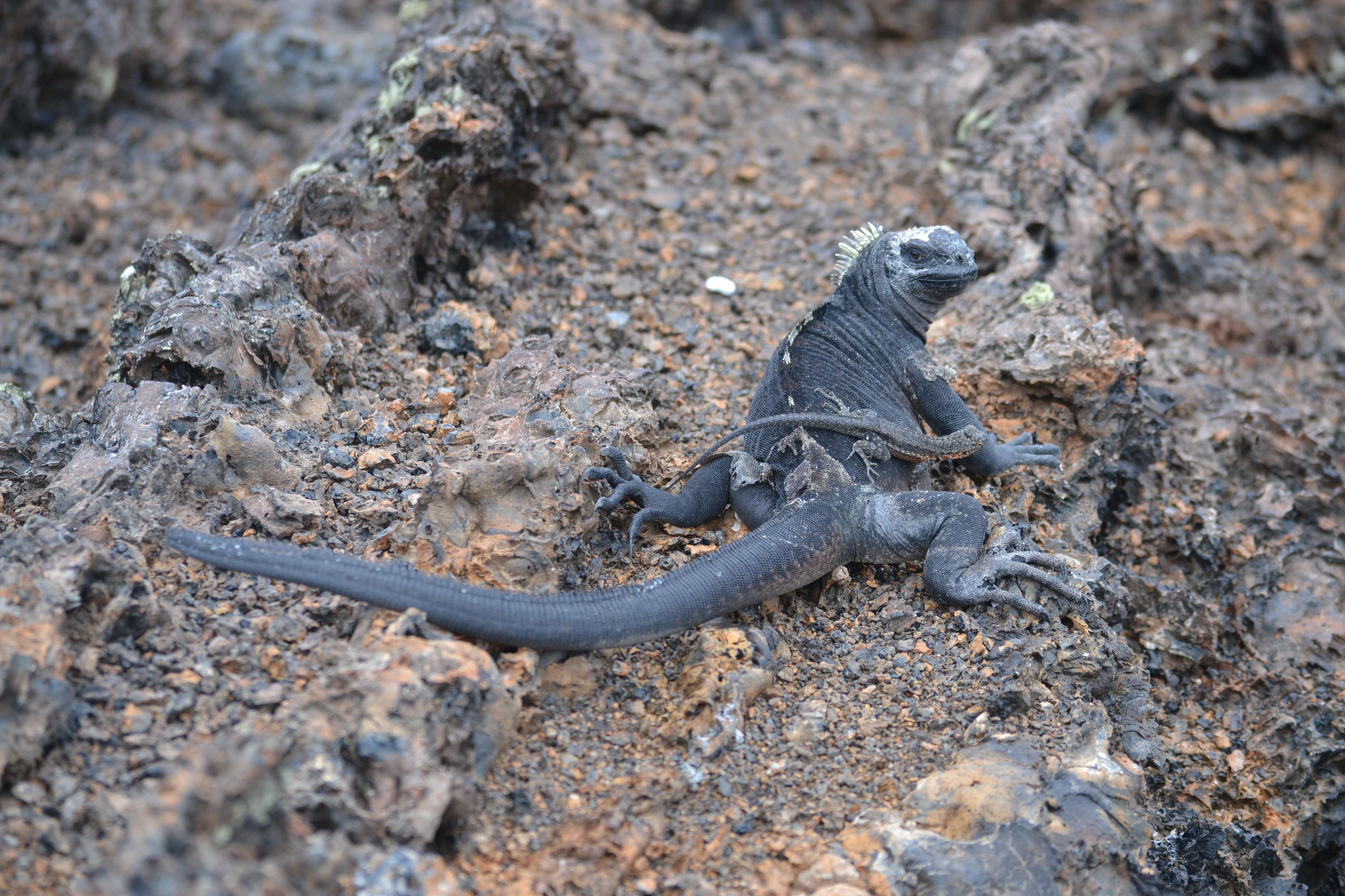 The rough lava surface is the perfect home for marine iguanas and lava lizards.