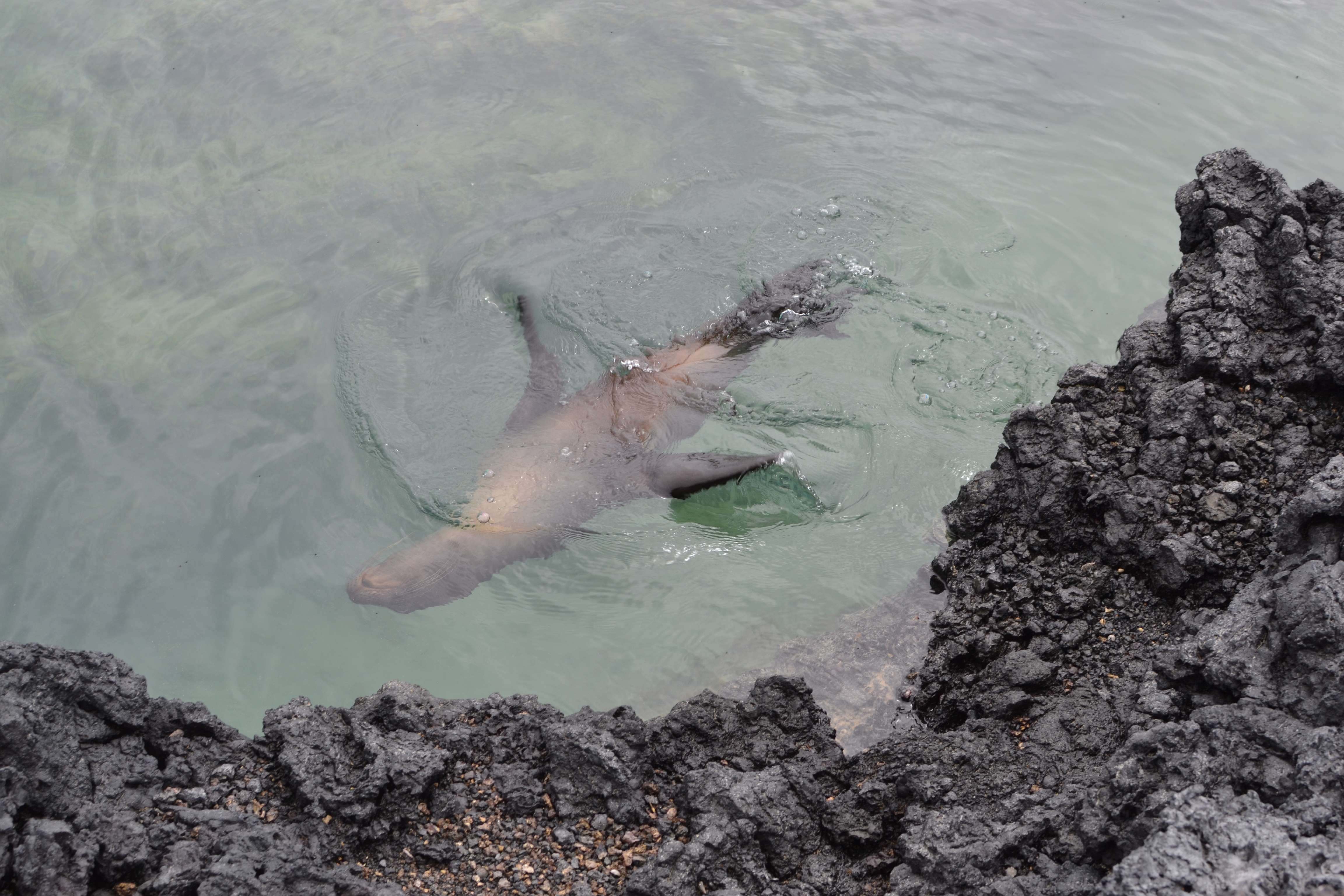 While we were lucky enough to see dozens of young marine iguanas along the lava channel leading to the bay, we were not lucky enough to see the island’s namesake animal, the tintorera, or white-tipped reef shark. The shallow, crystal clear water makes them easy to spot but we just didn’t catch it at the right time to see them. They love resting in the grotto because of the constant water flow from the tides, which is vital for their respiratory system to function properly. Even without the sharks, the channel cutting through the lava was beautiful and filled with other wildlife.