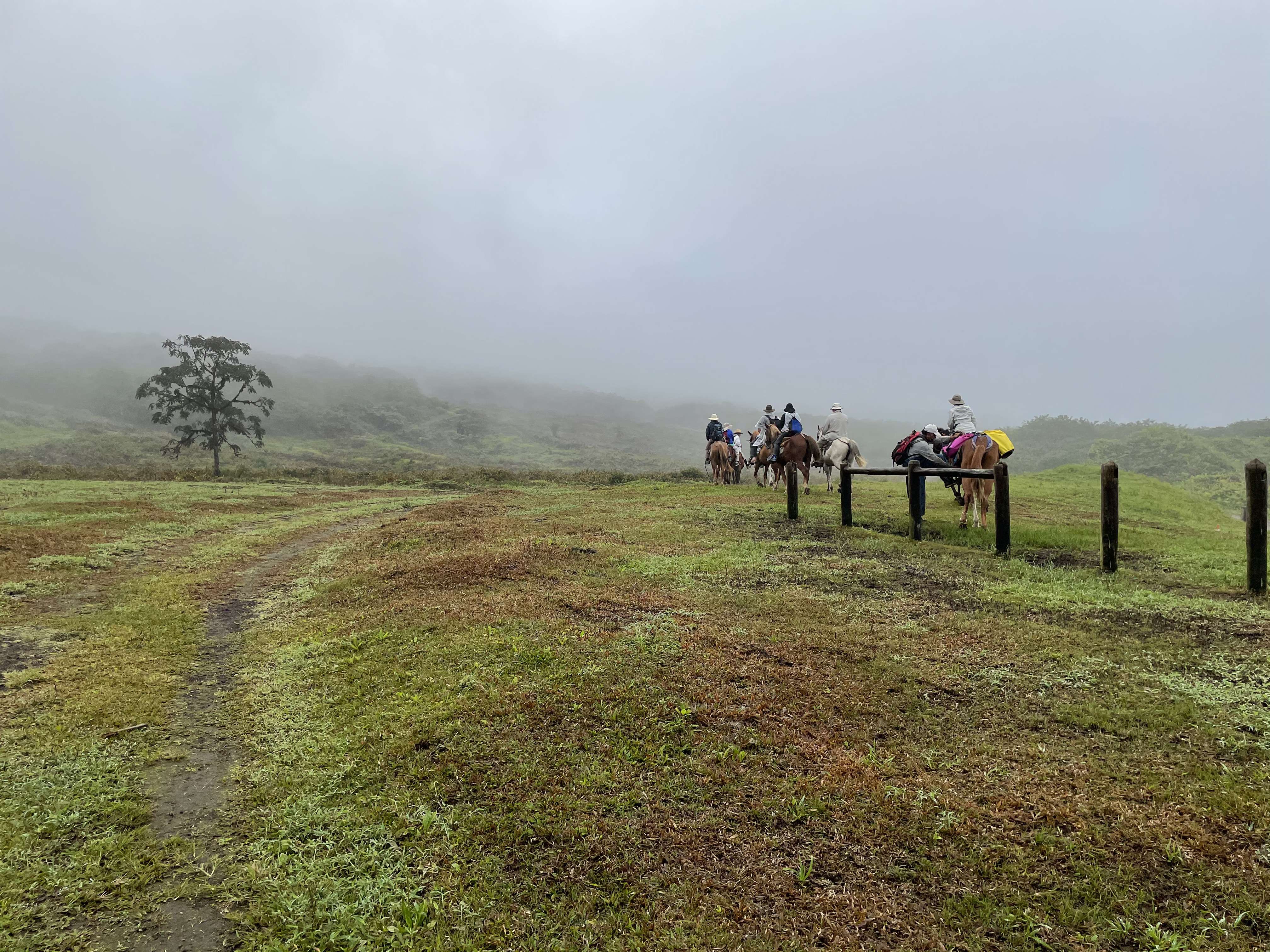 With no sun and plenty of mist, it was chilly and my kids immediately wished they had listened to me and brought a sweatshirt. 🙂 But even more than that, they wished that they were part of the group that was taking off on horseback. The tour through the hotel was for a hike but I wish I had known that horseback riding was an option because I definitely would have changed to that if we could. The trail is long (8 km each way), muddy, and not especially scenic along the way, and I think we all would have enjoyed it more as a horseback ride than a hike.