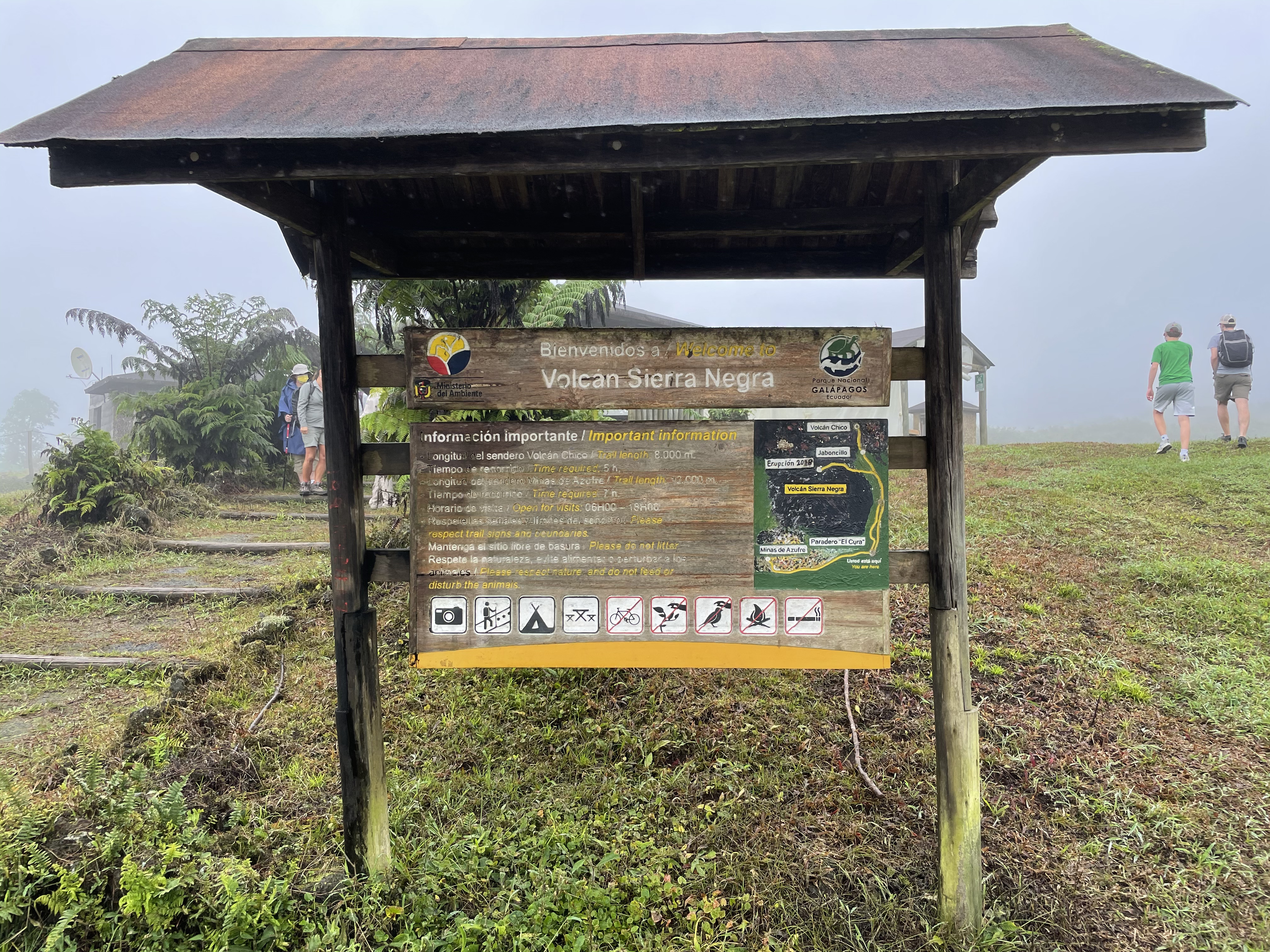 As part of the package through Iguana Crossing, we had a private tour of Sierra Negra. Our guide and a driver picked us up at the hotel and drove us about 45 minutes to the start of the trail. There was a pretty view looking back over the highlands of Isabela. Clouds hung low in the sky and the area was covered in mist, which is typical of the site. I read one review of the tour on Trip Advisor entitled “Cloudy with a Chance of Volcano”, which perfectly sums up the experience on Sierra Negra.
