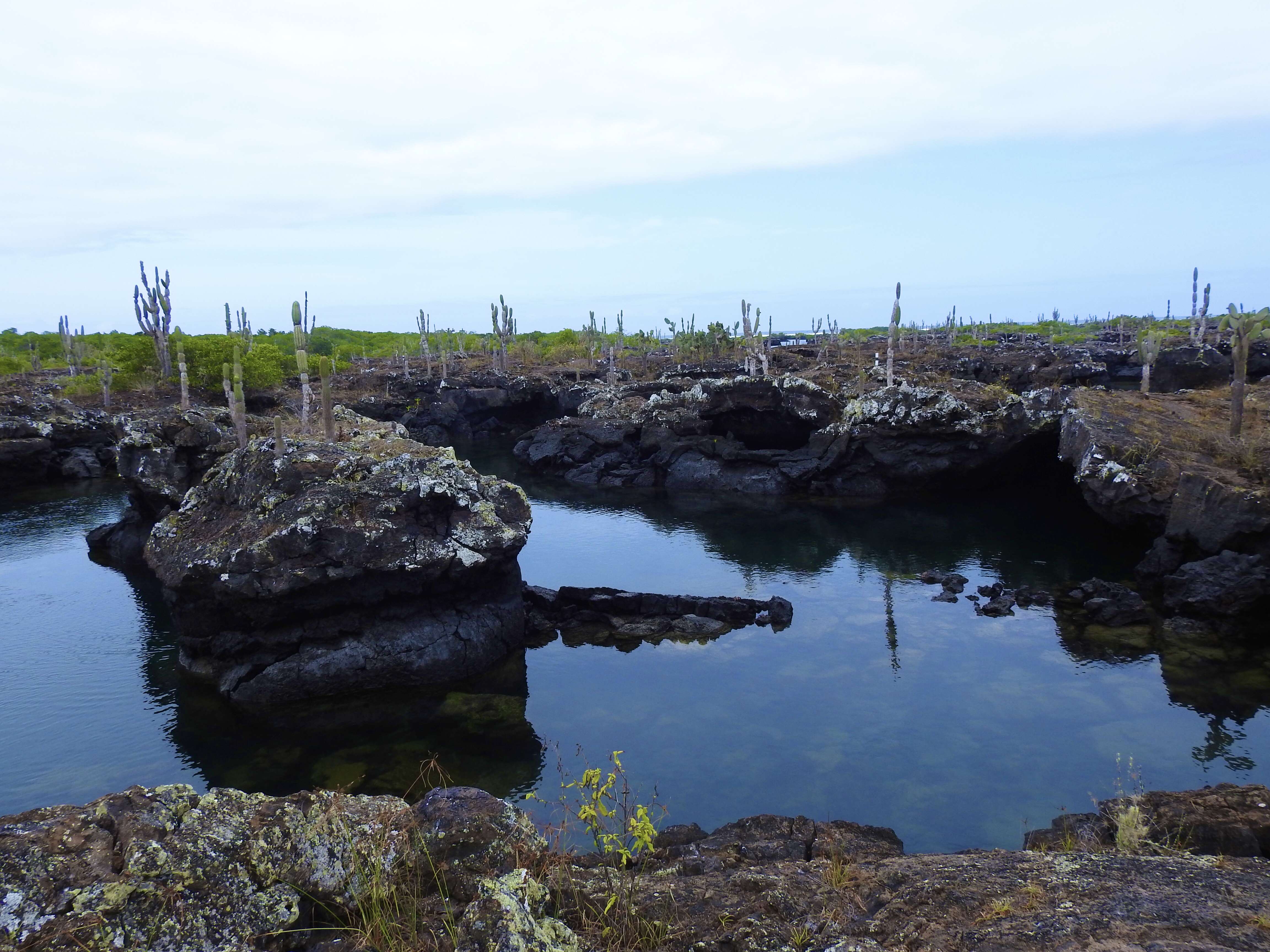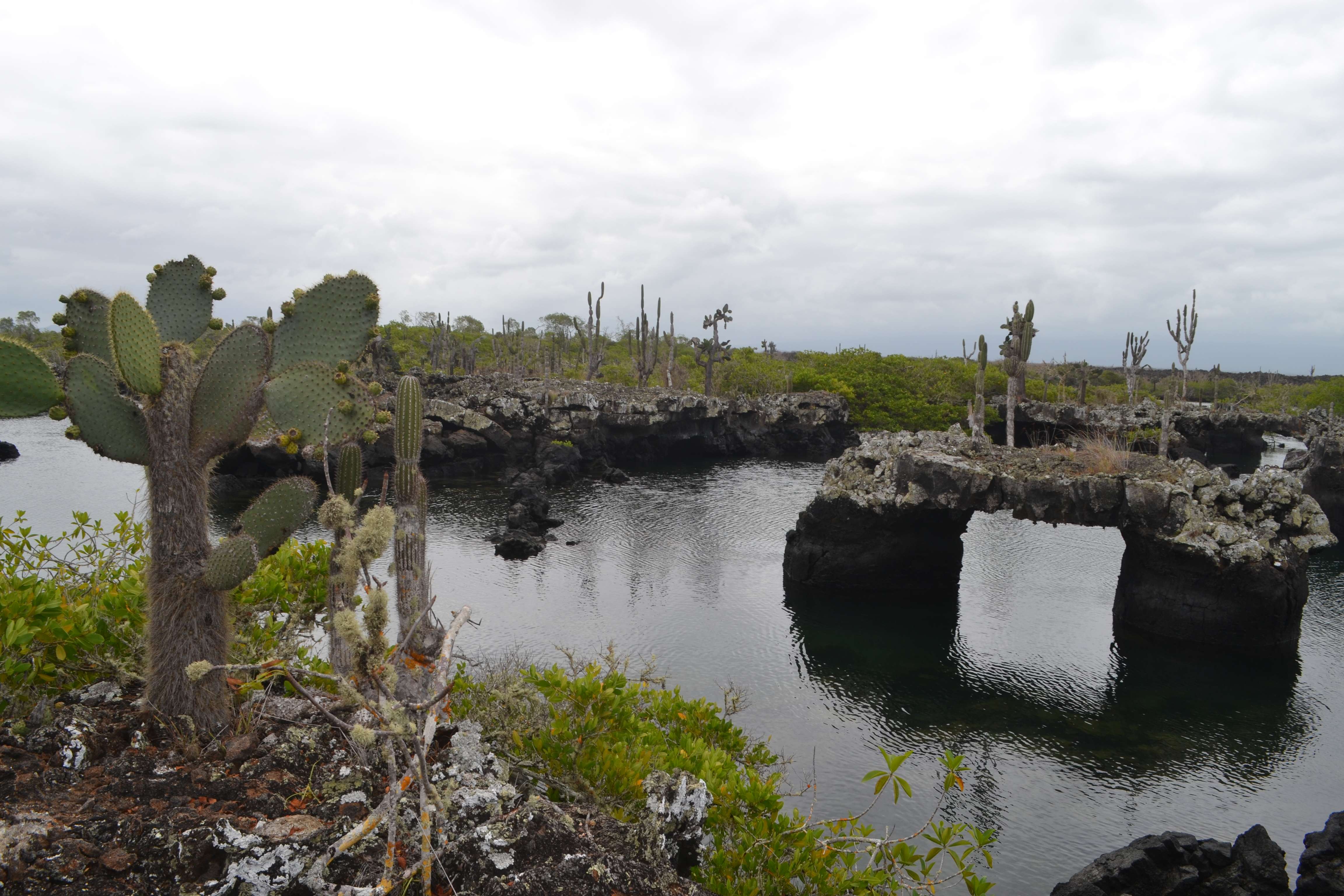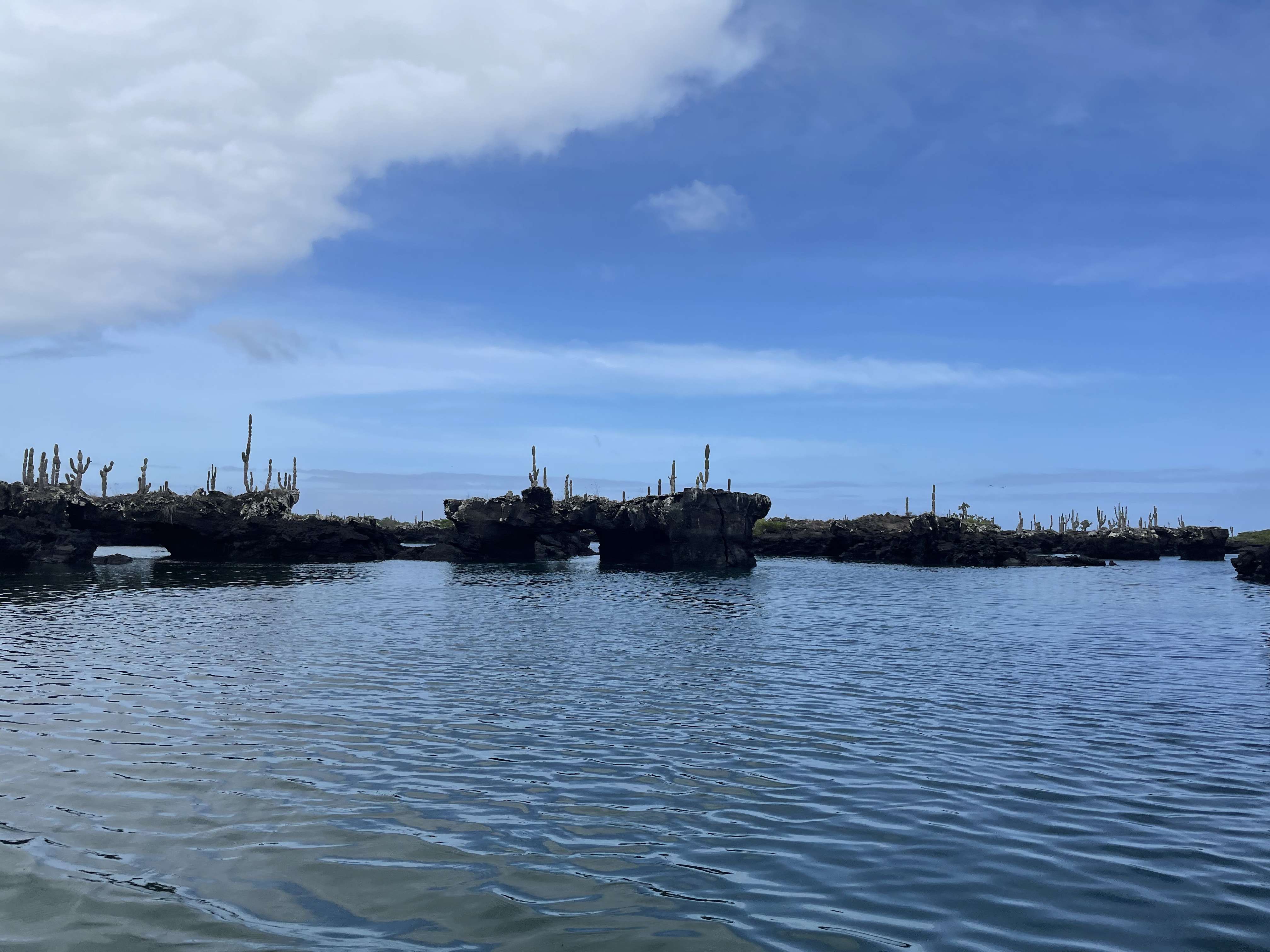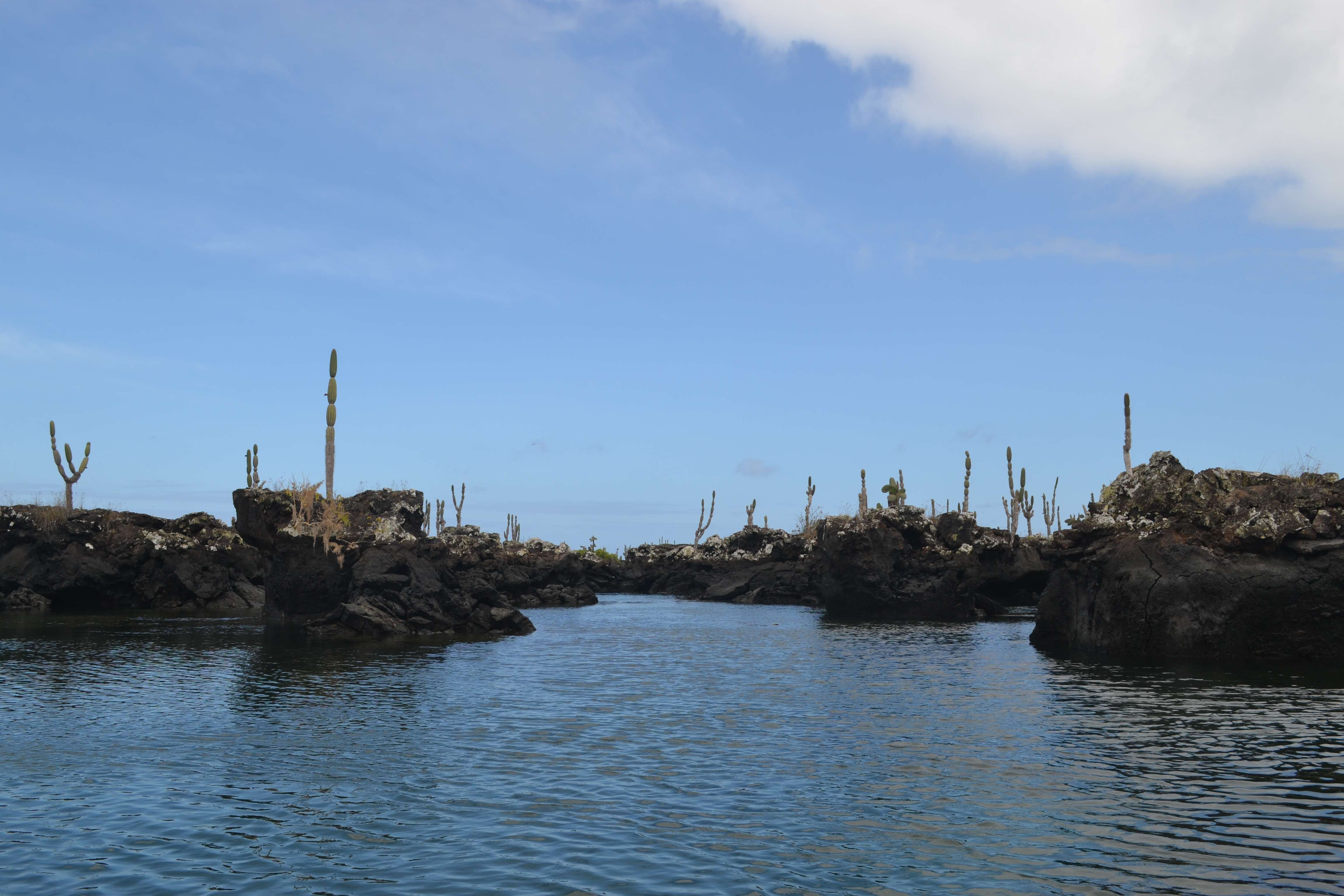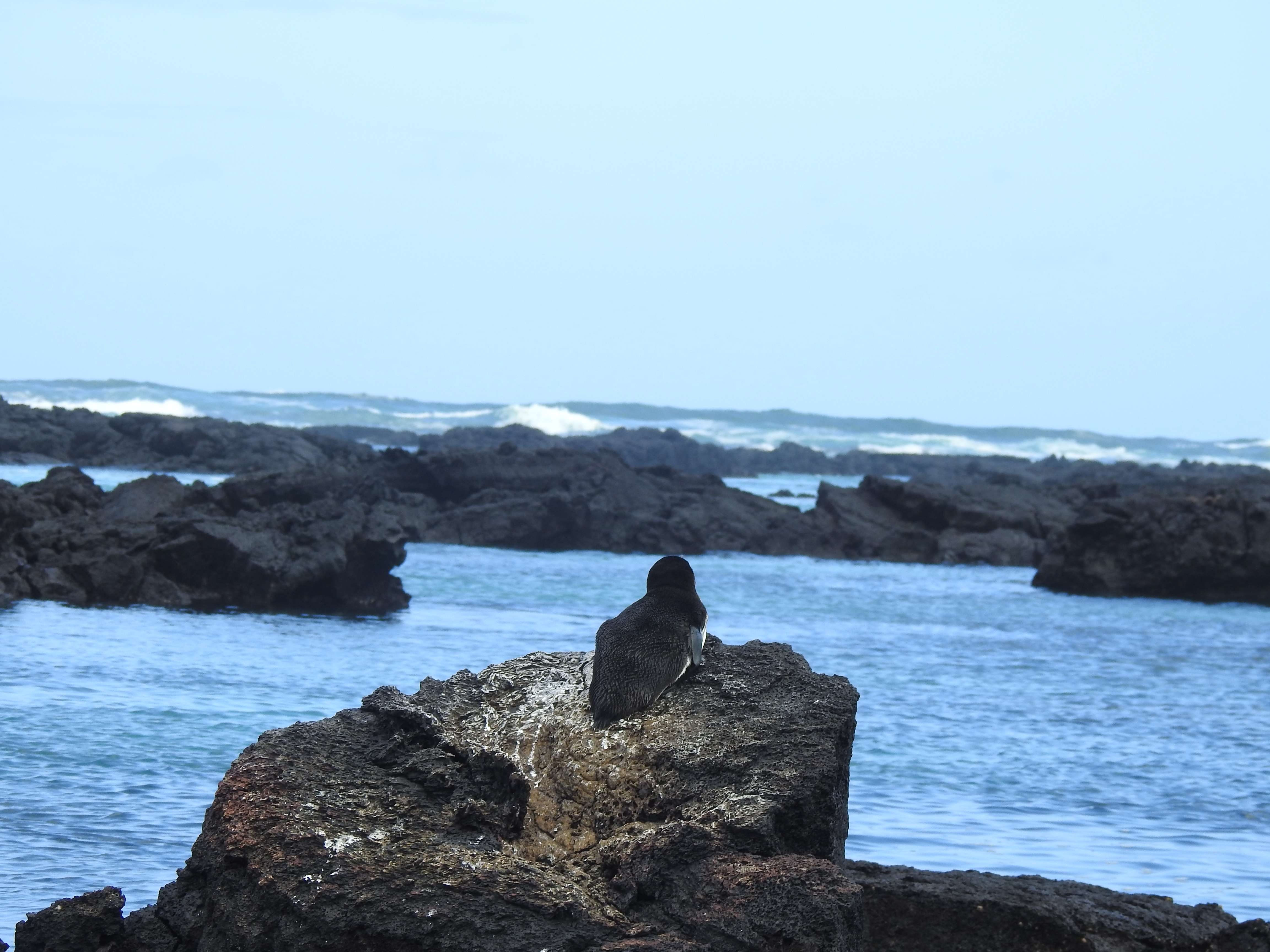 From our spot on the edge of the lagoon, we watched penguins dart around the rocks and jump into the water and splash around. We saw giant sea turtles swim slowly across the water and pop their heads up to the surface every now and then. We saw birds fly by and improbably land on cactus. It was so quiet and peaceful and such a fantastic experience to just sit and watch the wildlife against this amazing backdrop.