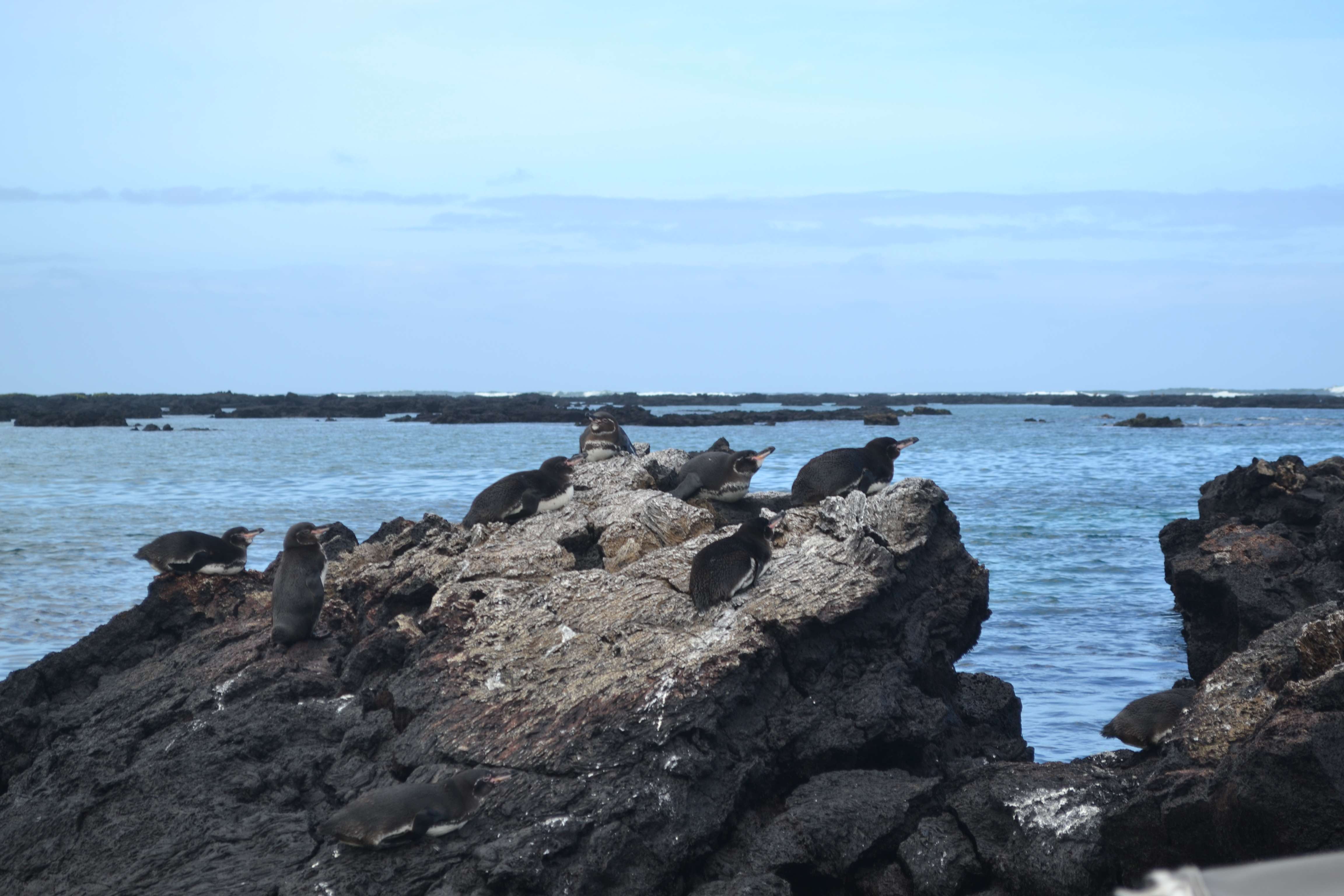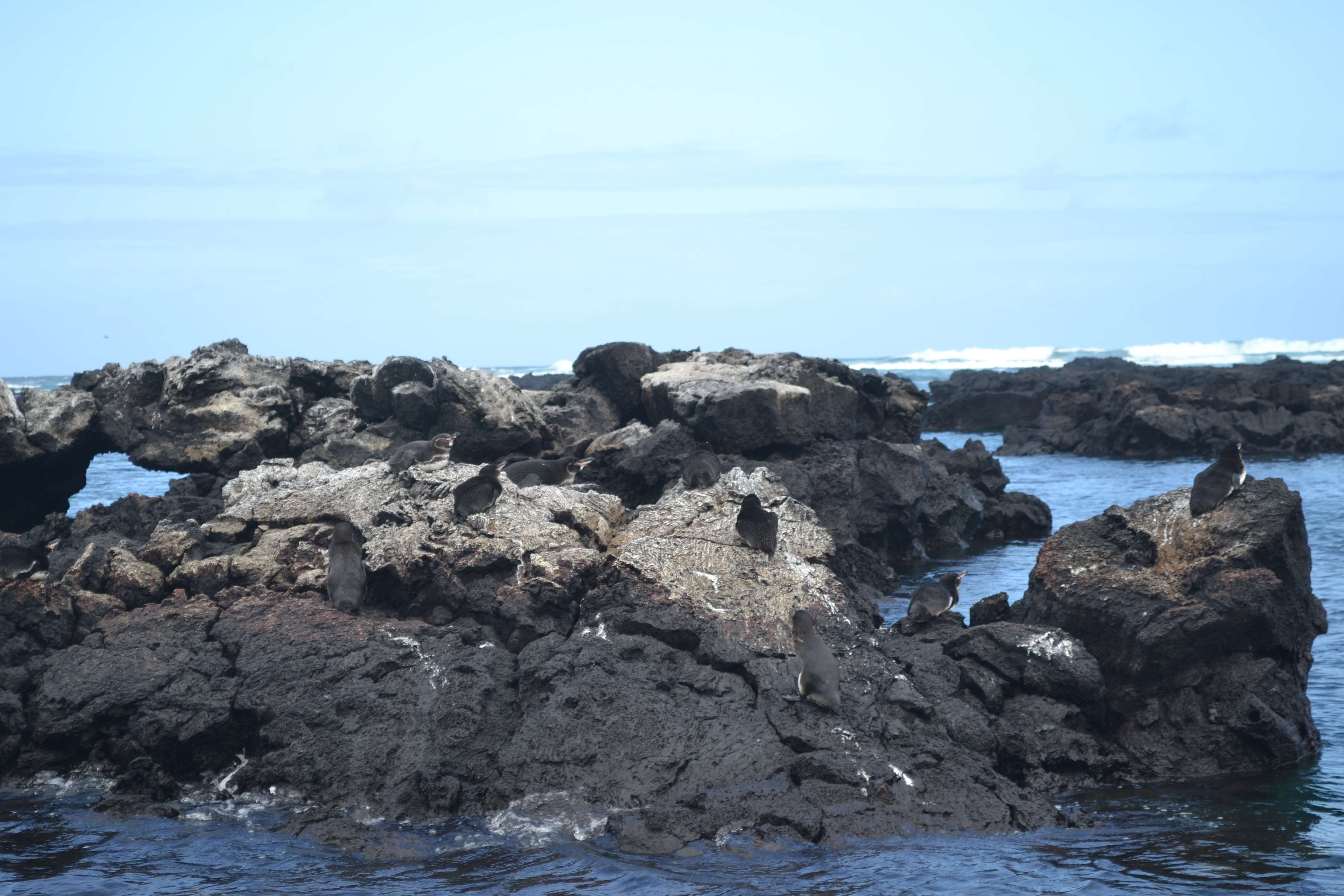 As the boat headed to our snorkeling spot, we got an extra treat – a dozen or so penguins were hanging out on the rocks on our way out. This was our best penguin-spotting the whole trip. Amazing!