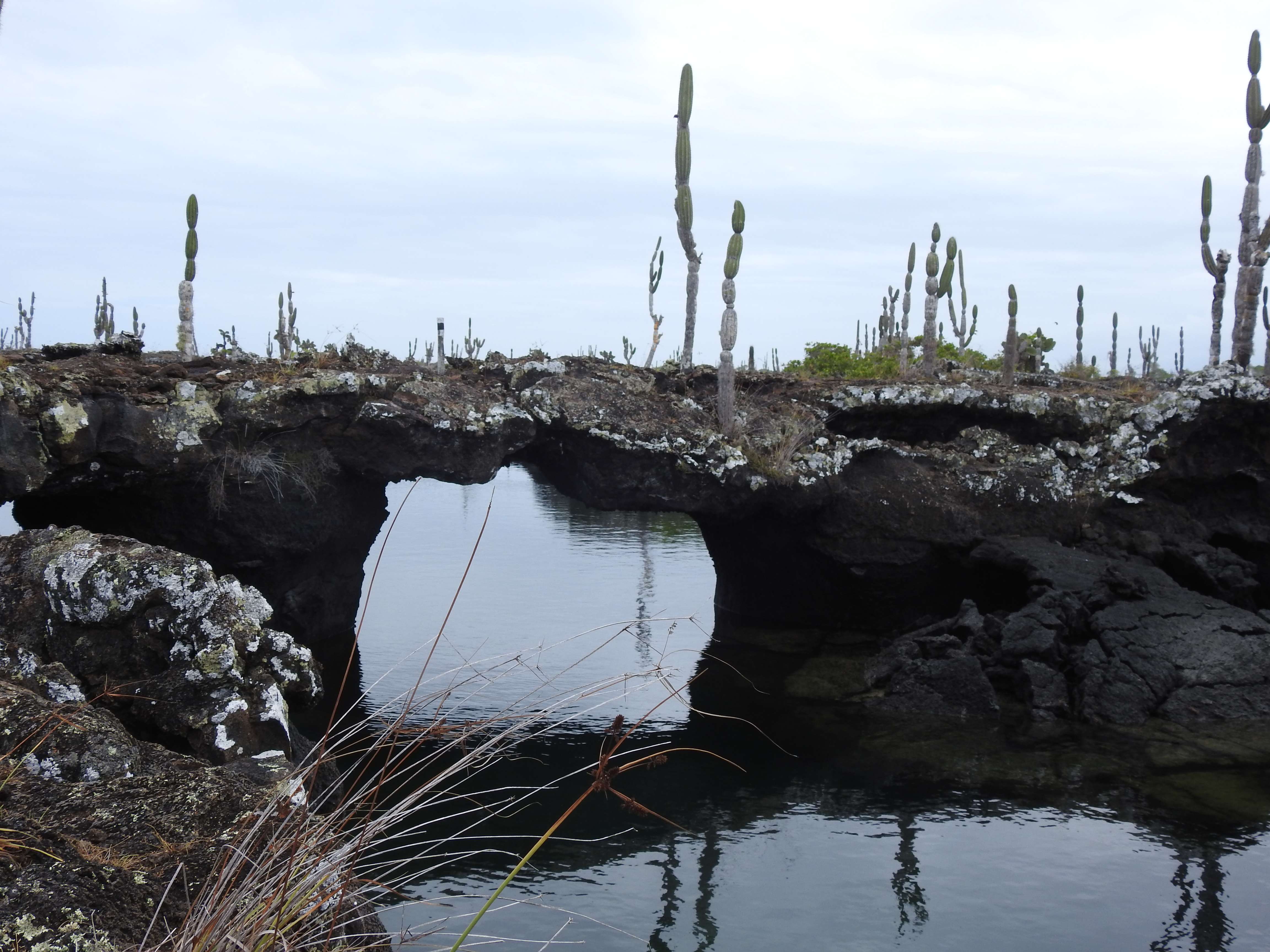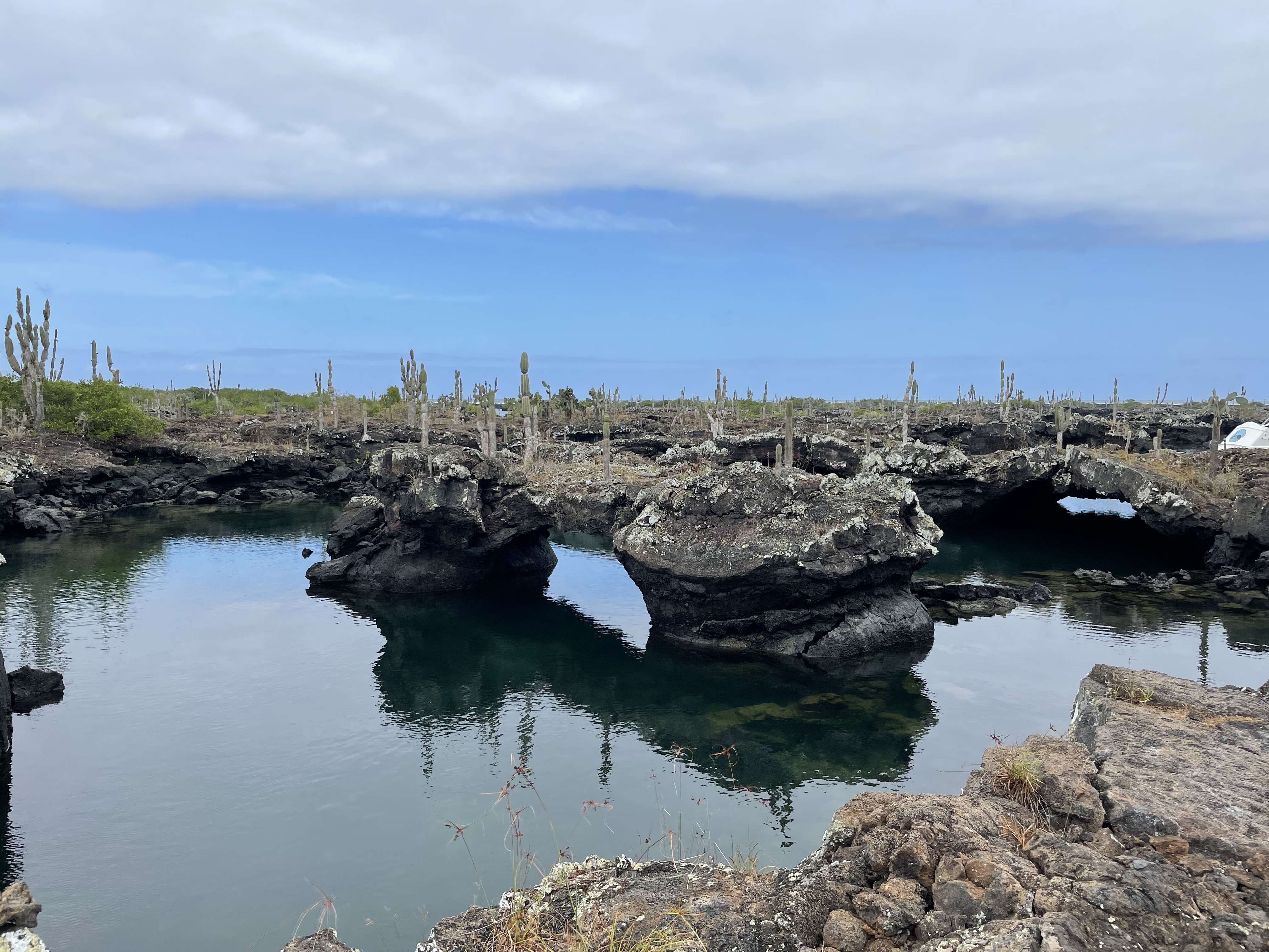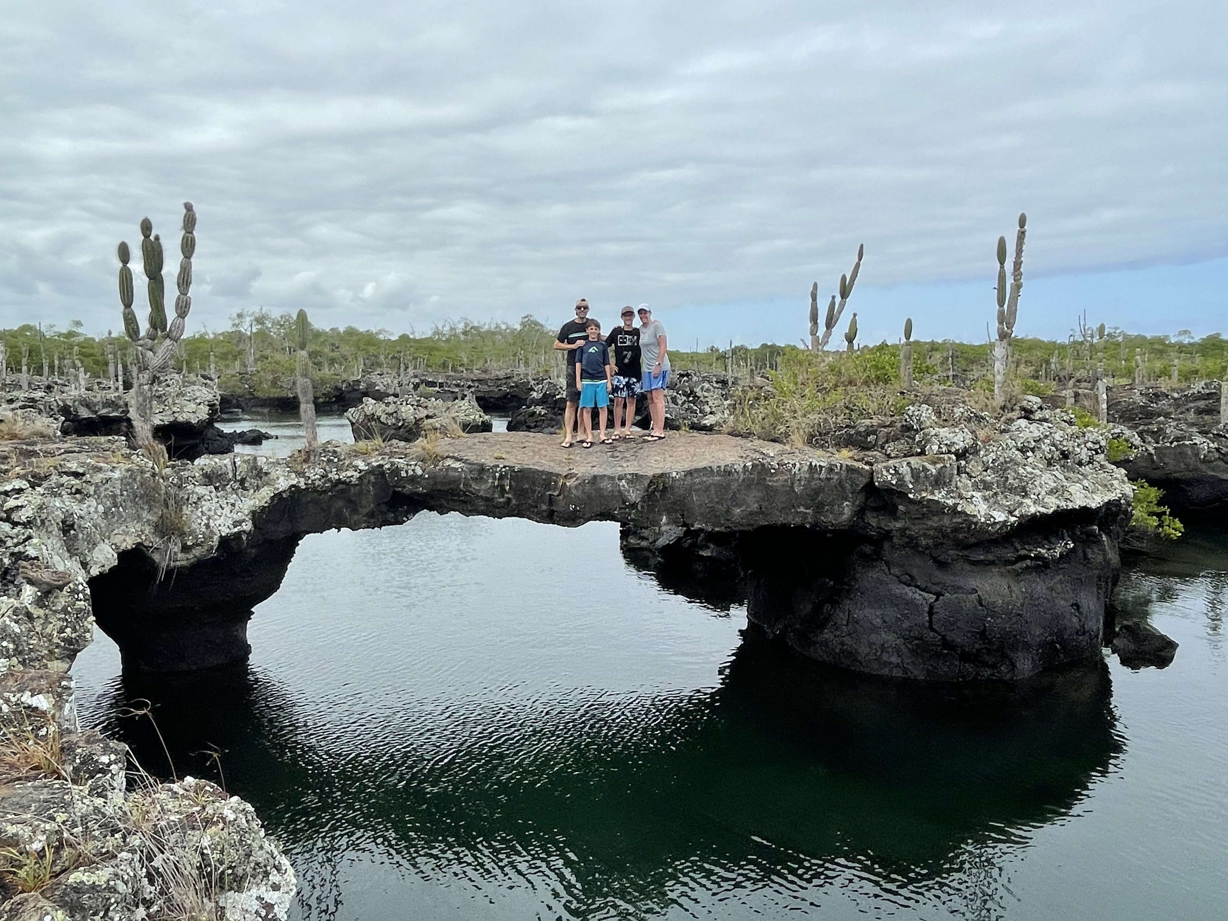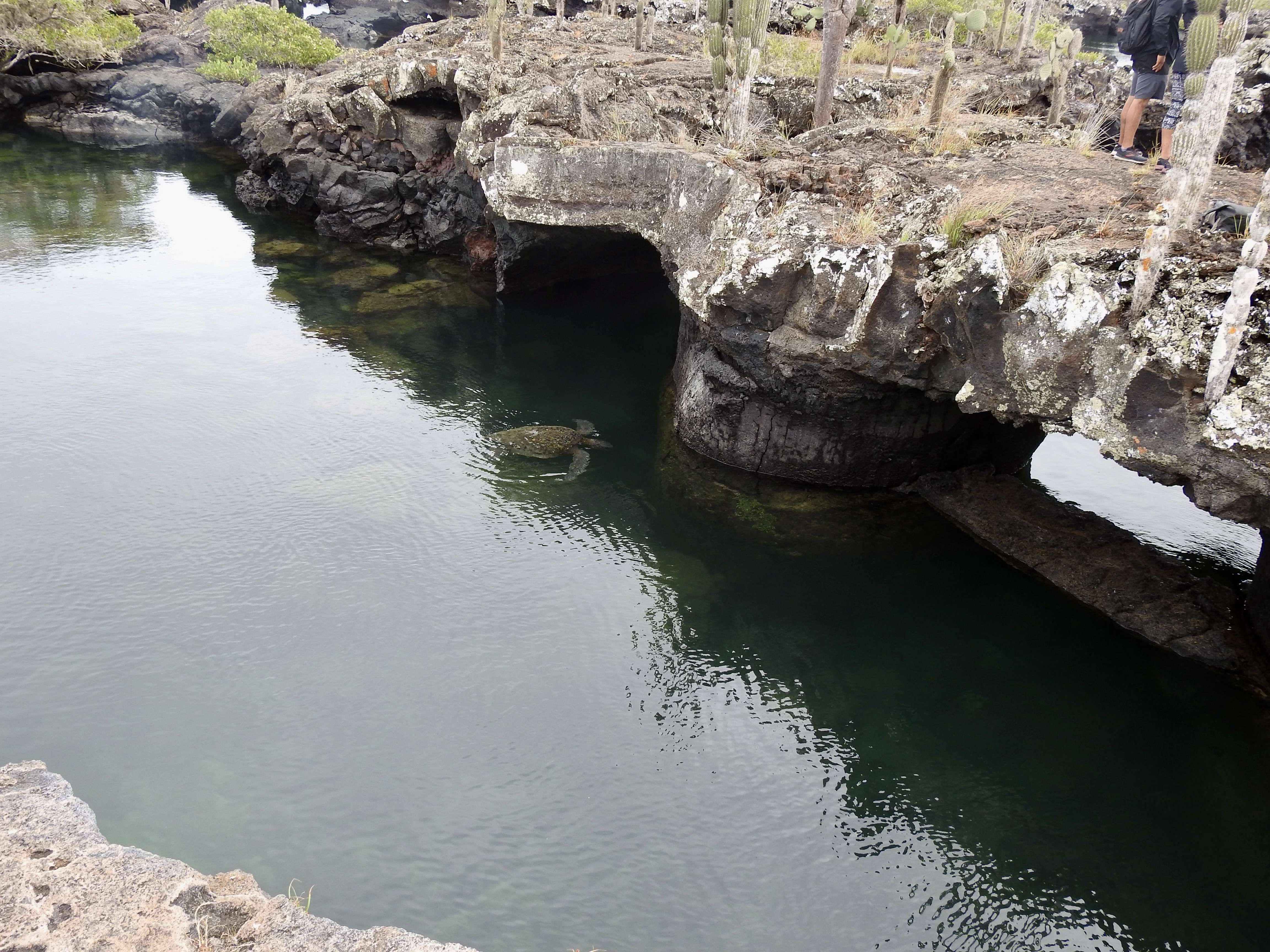 Formed by lava flows, Los Tuneles is a series of geological arches and tunnels that create a protected habitat for many land and marine species. Our guide walked around the rocky terrain, explaining the geological phenomenon. My oldest immediately felt better on land and he and my husband went on the tour while my youngest and I sat on the edge of one of the largest pools, recovering from the rough trip and taking it all in.
