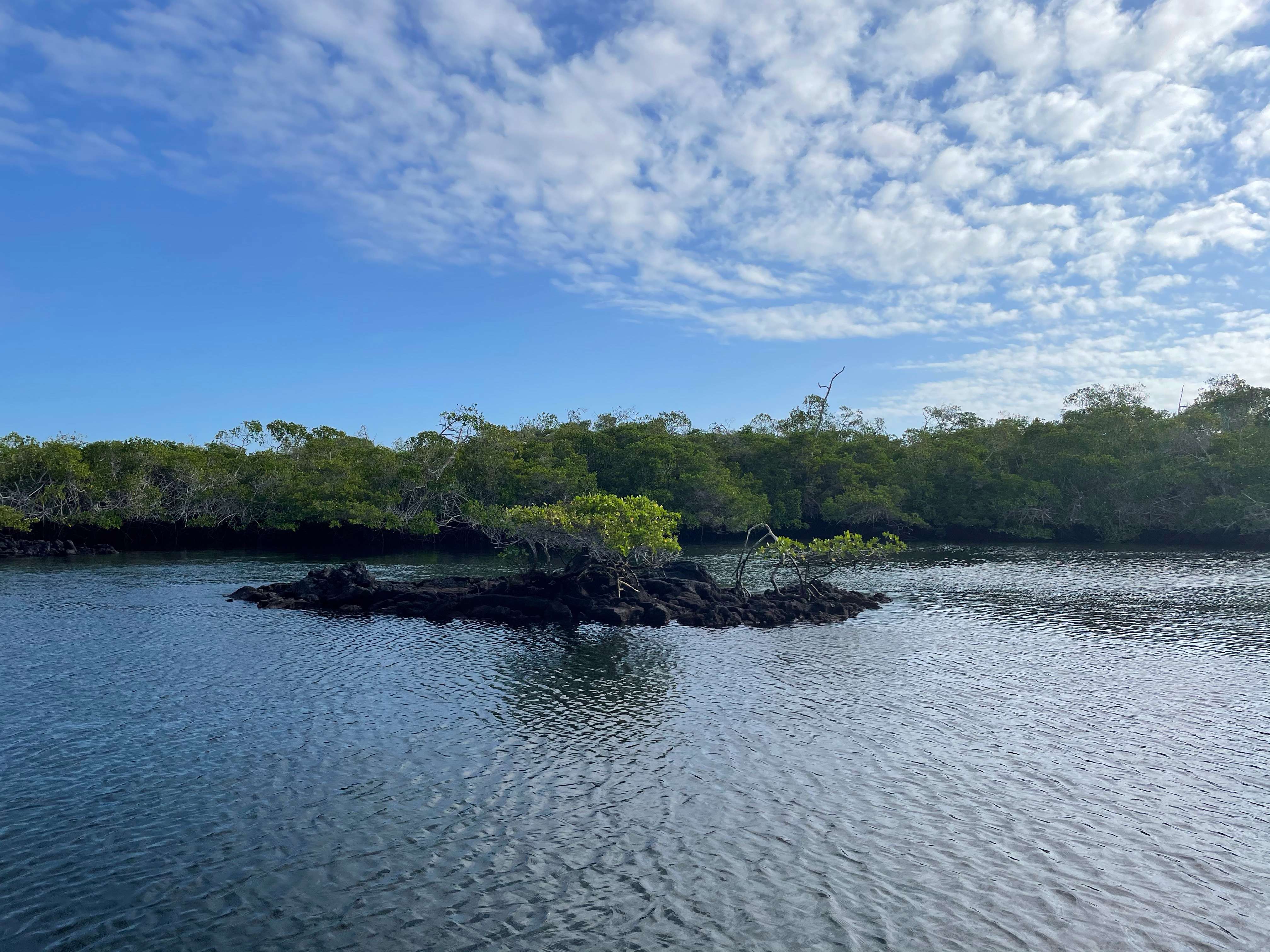 The boat anchored in a protected area surrounded by mangroves and some smaller lava tunnels. This spot was beautiful in its own right. The landscape was different than Los Tuneles but still unique and the larger open water area looked perfect for snorkeling. We got our gear on and jumped off the side of the boat.