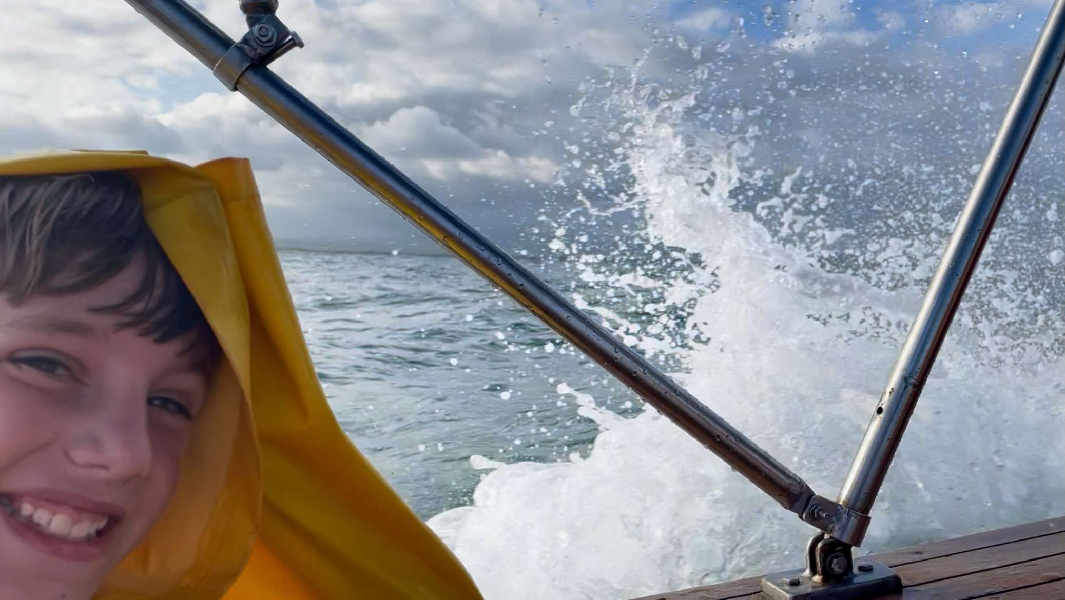 - The people at the back of the boat were given bright yellow rain jackets to wear.