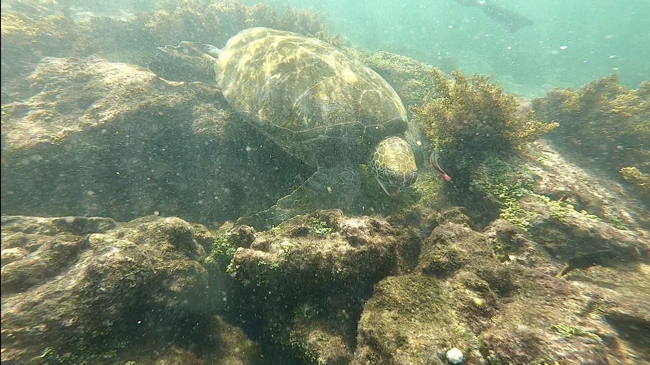 It didn’t take long before we started seeing some amazing underwater creatures. First, some colorful fish! (Please excuse the poor quality screenshots from GoPro videos taken by my 13 year old…)