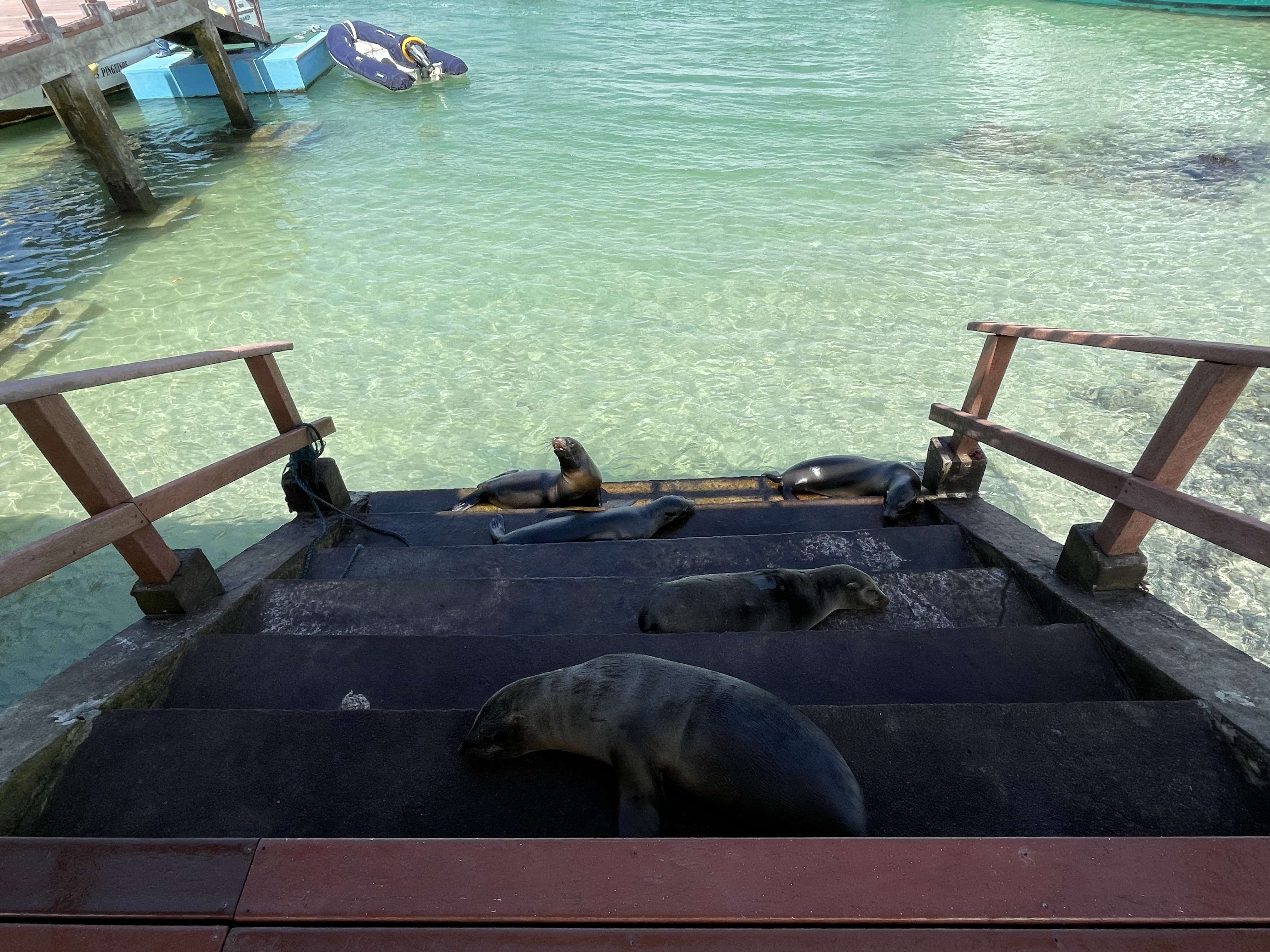 And not to be left out, there is a land-based greeting crew as well. Do not expect these lounging marine iguanas to get out of your way. Even the sound of an army of wheeled luggage coming up from the dock did not make them budge. We happily gave them the appropriate distance of 2 meters while we marveled at how little they cared about our presence.