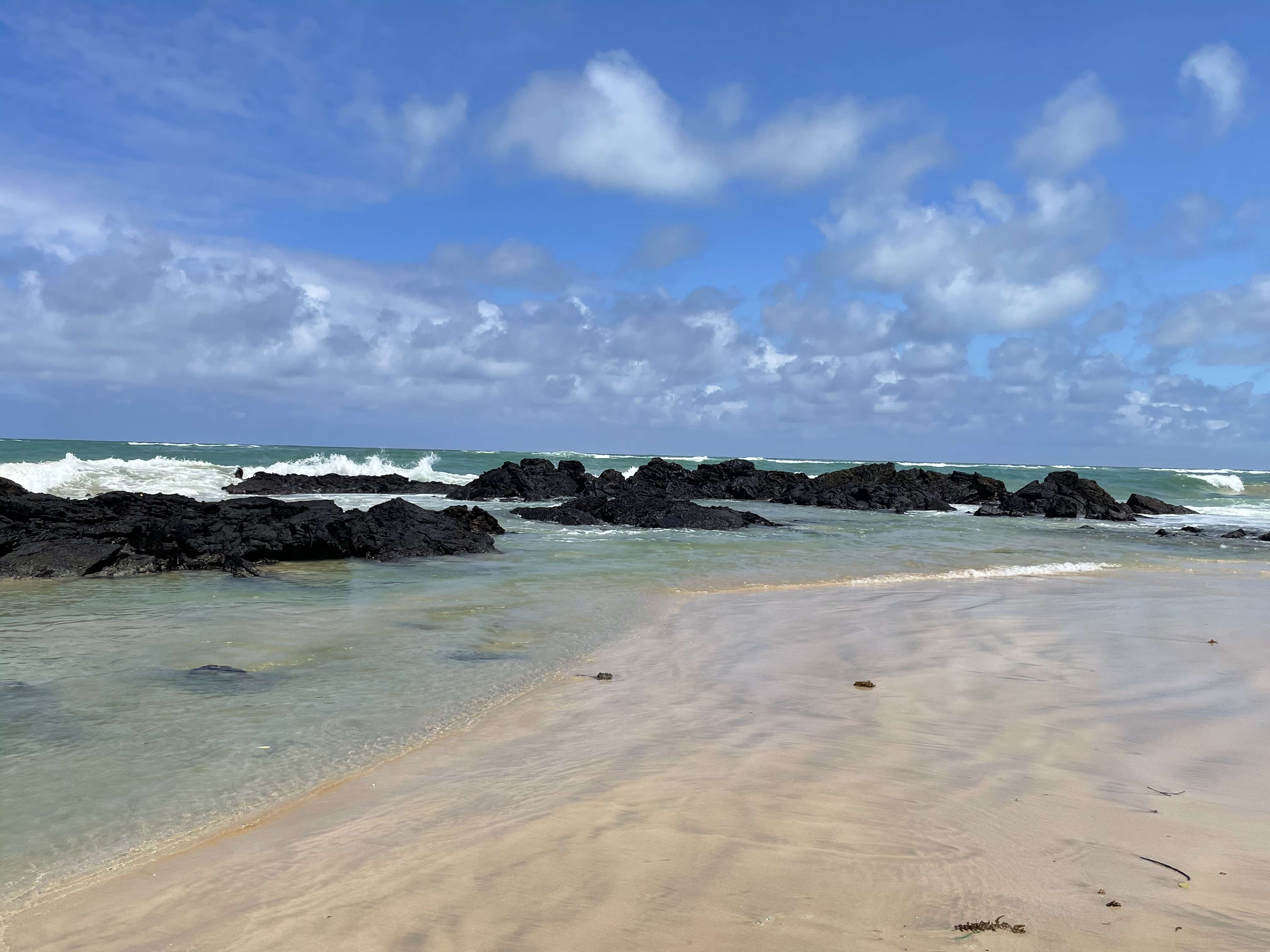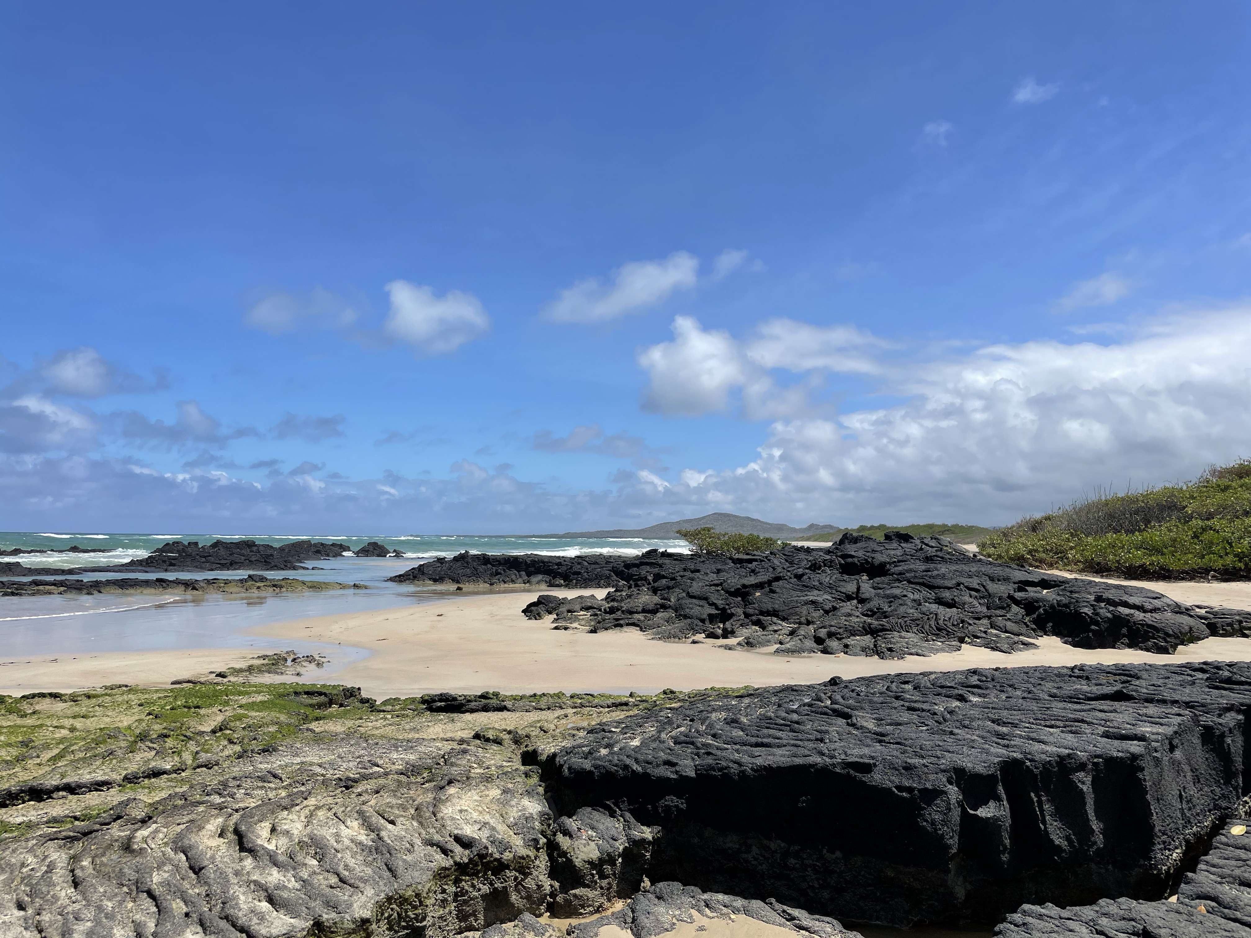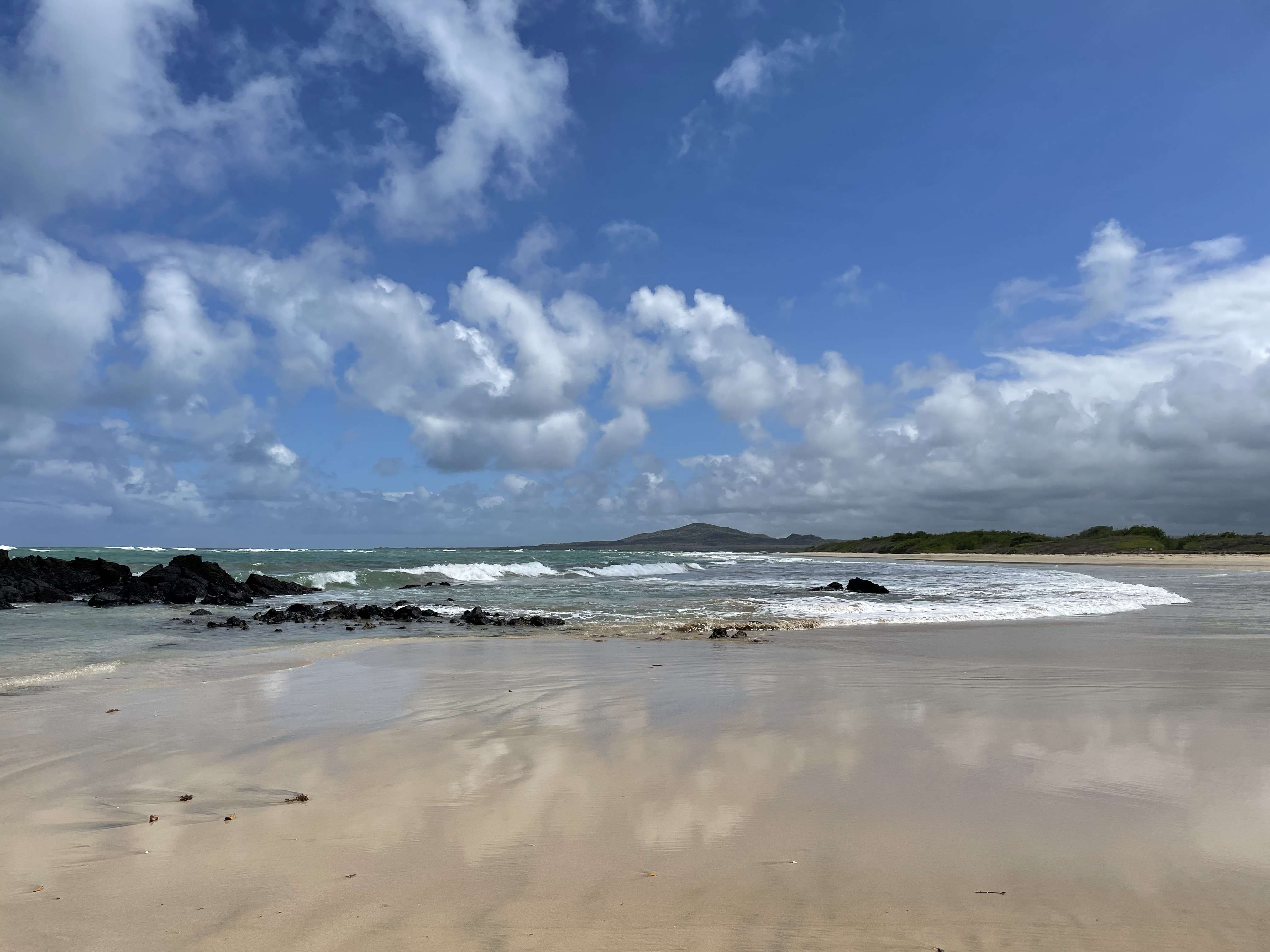And the beaches around Puerto Villamil simply cannot be beat. The scenery is absolutely jaw dropping. Black lava rocks are scattered across the sand and in the water, with marine iguanas lounging on top and Sally Lightfoot Crabs crawling about. The water is so clear that you can see the marine iguanas’ tails swishing back and forth under water while they swim. Volcanos span the horizon and mangrove trees dot the foreground. I can’t image there is any other place in the world with a view like this.