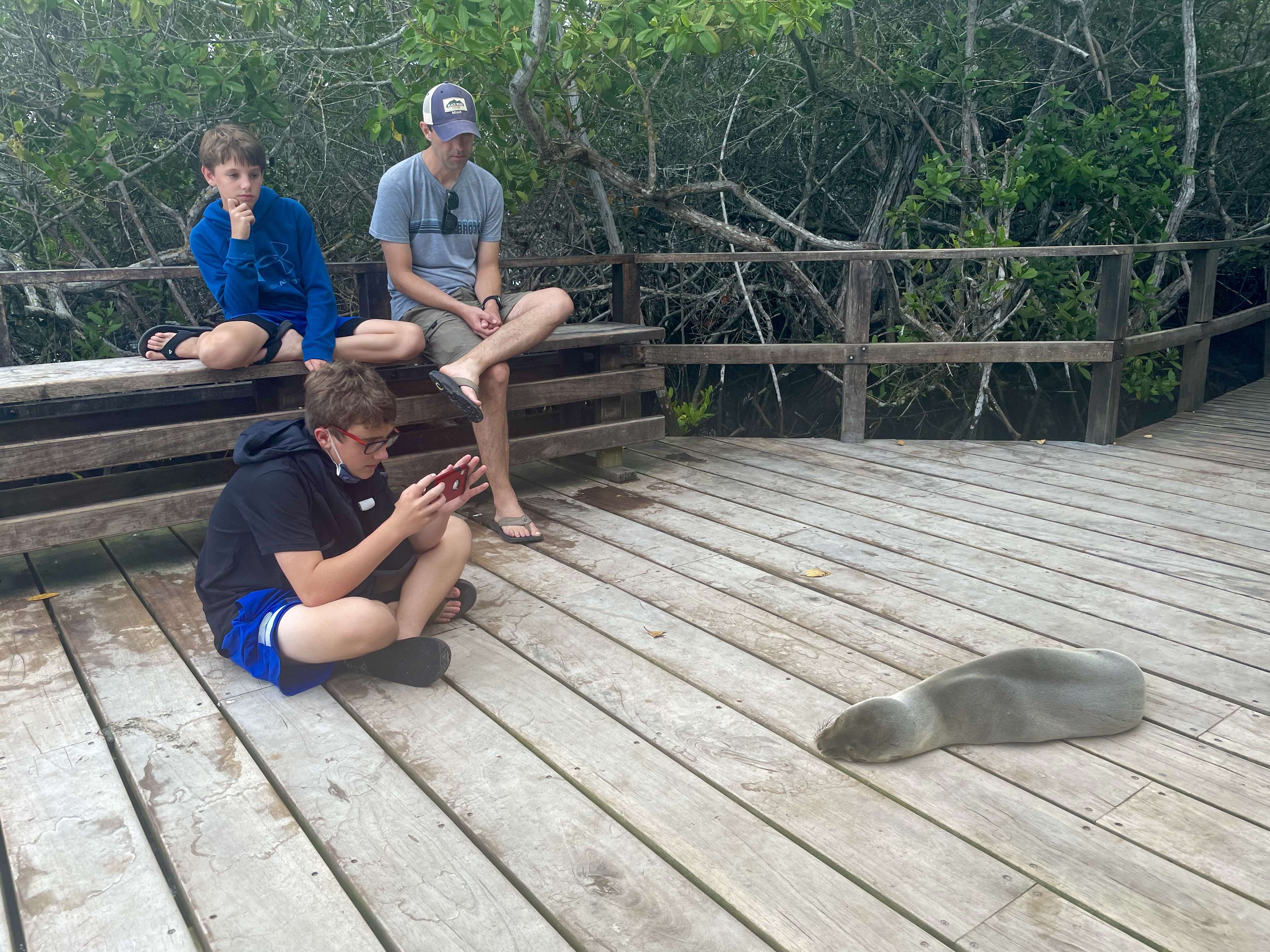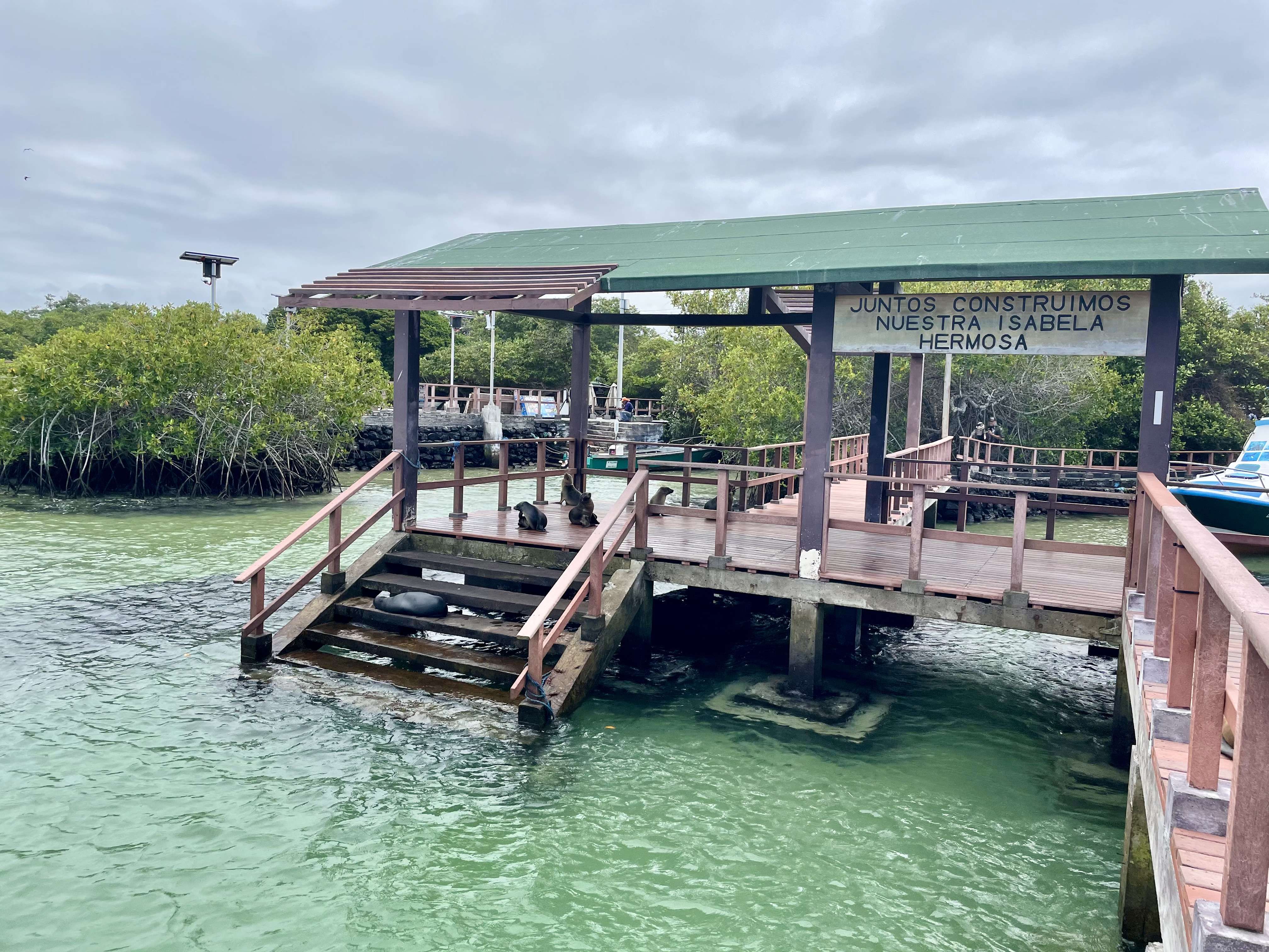 You can even snorkel on your own at Concha de Perla. Located just next to the harbor, the short boardwalk trail through a canopy of mangrove trees is stunning in its own right. At the end of the trail there is a small dock (where there happened to be a small sea lion waiting for us!) with direct swimming access to a bay with calm, clear waters that are perfect for snorkeling. We didn’t get in but apparently this is a great place to easily swim with fish, sea lions, turtles and rays. Note that this is a public spot with no secured storage for your belongings so keep that in mind if you plan to snorkel.
