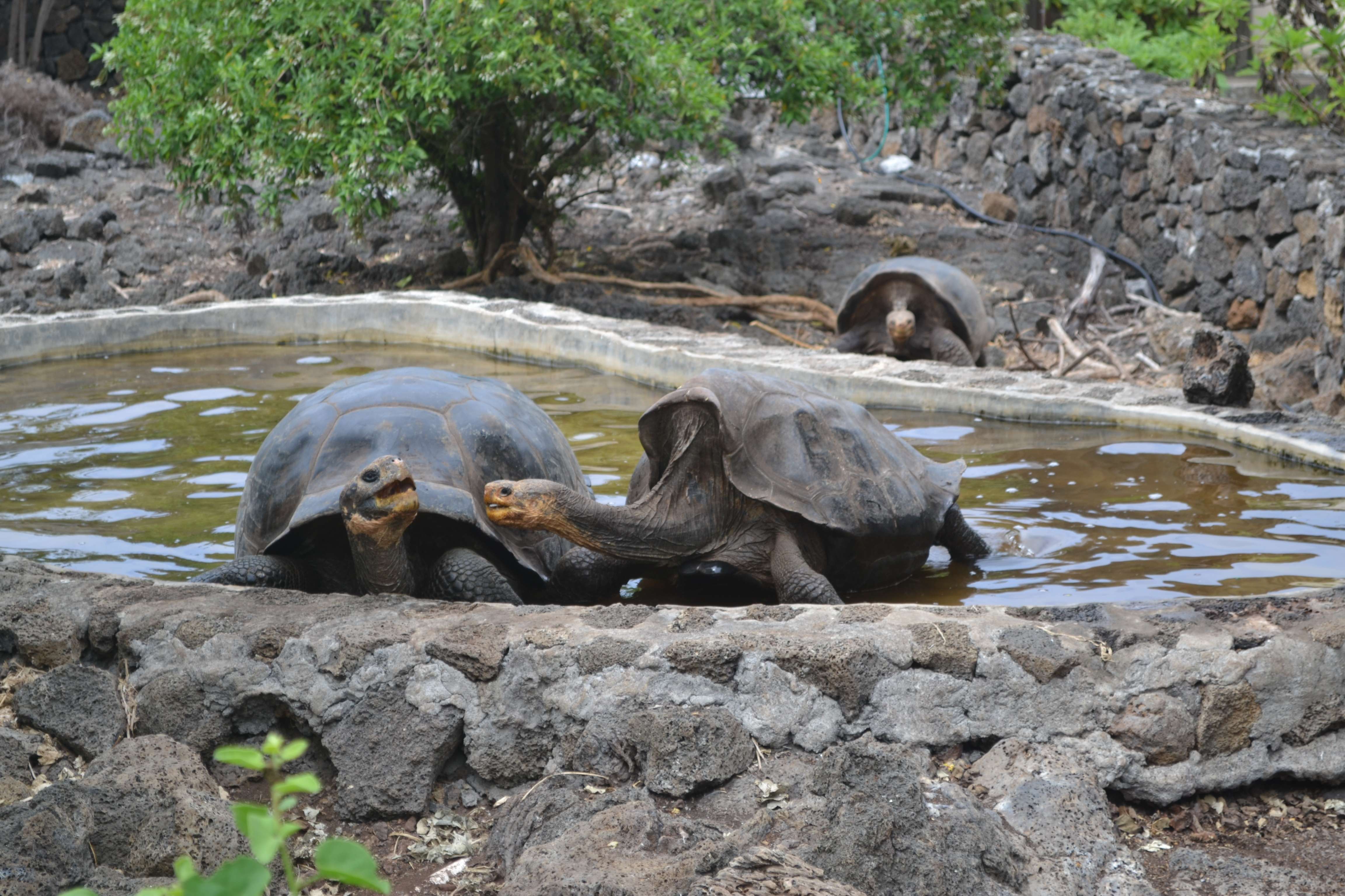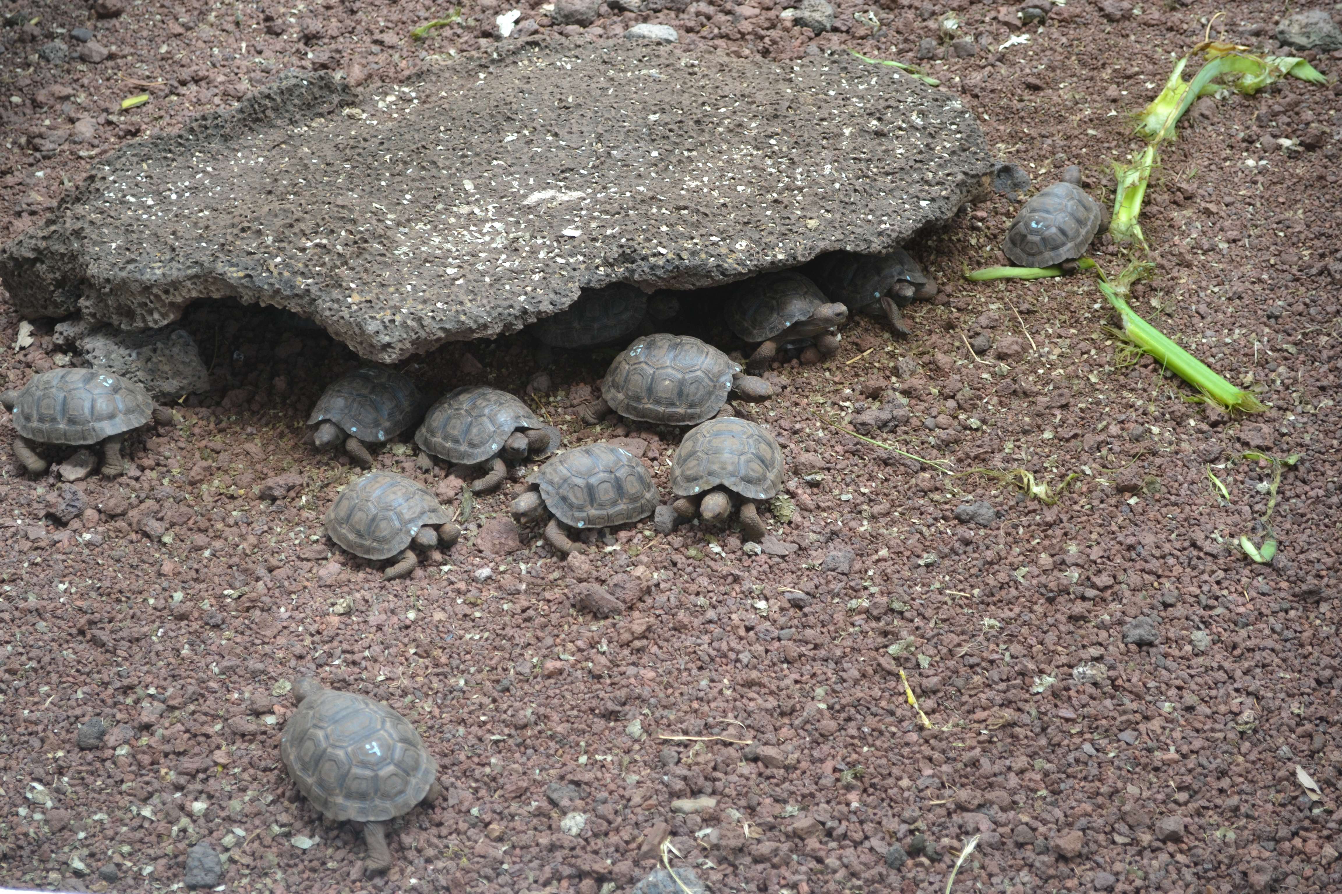 Another major feature of the Charles Darwin Research Station is the Fausto Llerena Breeding Center. Galapagos tortoises have been threatened by introduced species such as rats, pigs, and dogs. In order to conserve these species, tortoise eggs from several different islands are brought to the breeding center and incubated artificially. They are born and raised in the center for the first five years of their life. At that point, they have a better chance of survival over their predators and they are released back into the wild on their original island.
