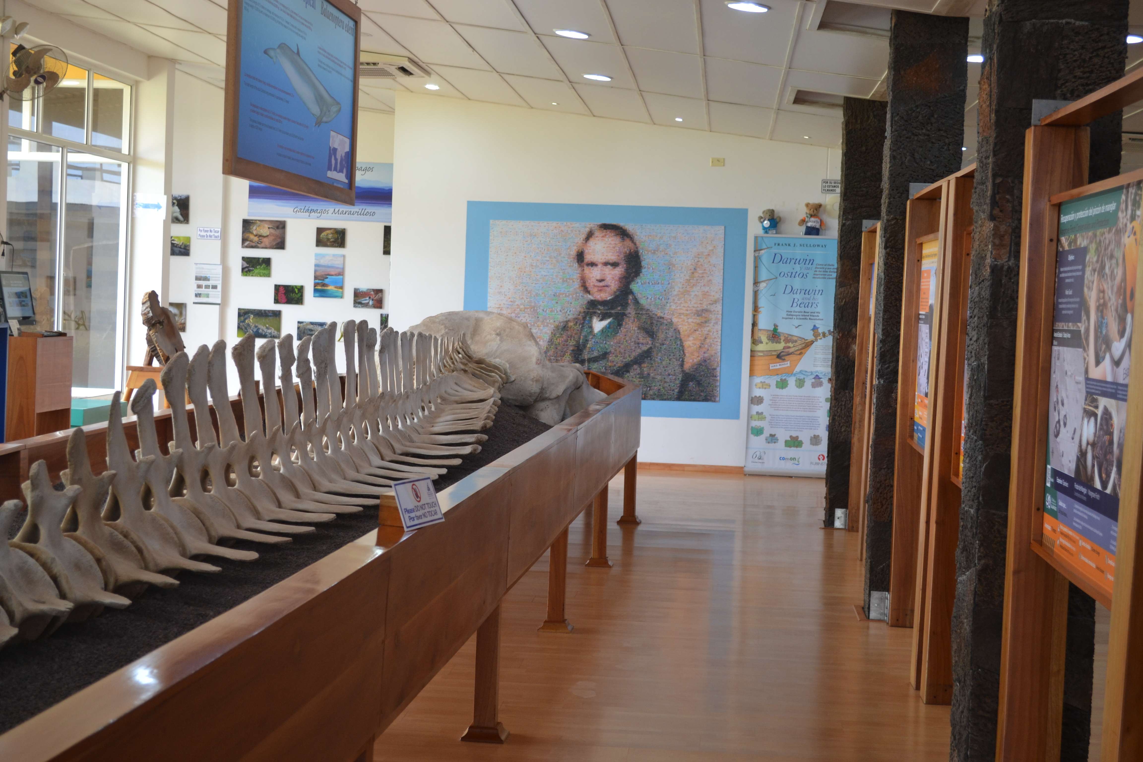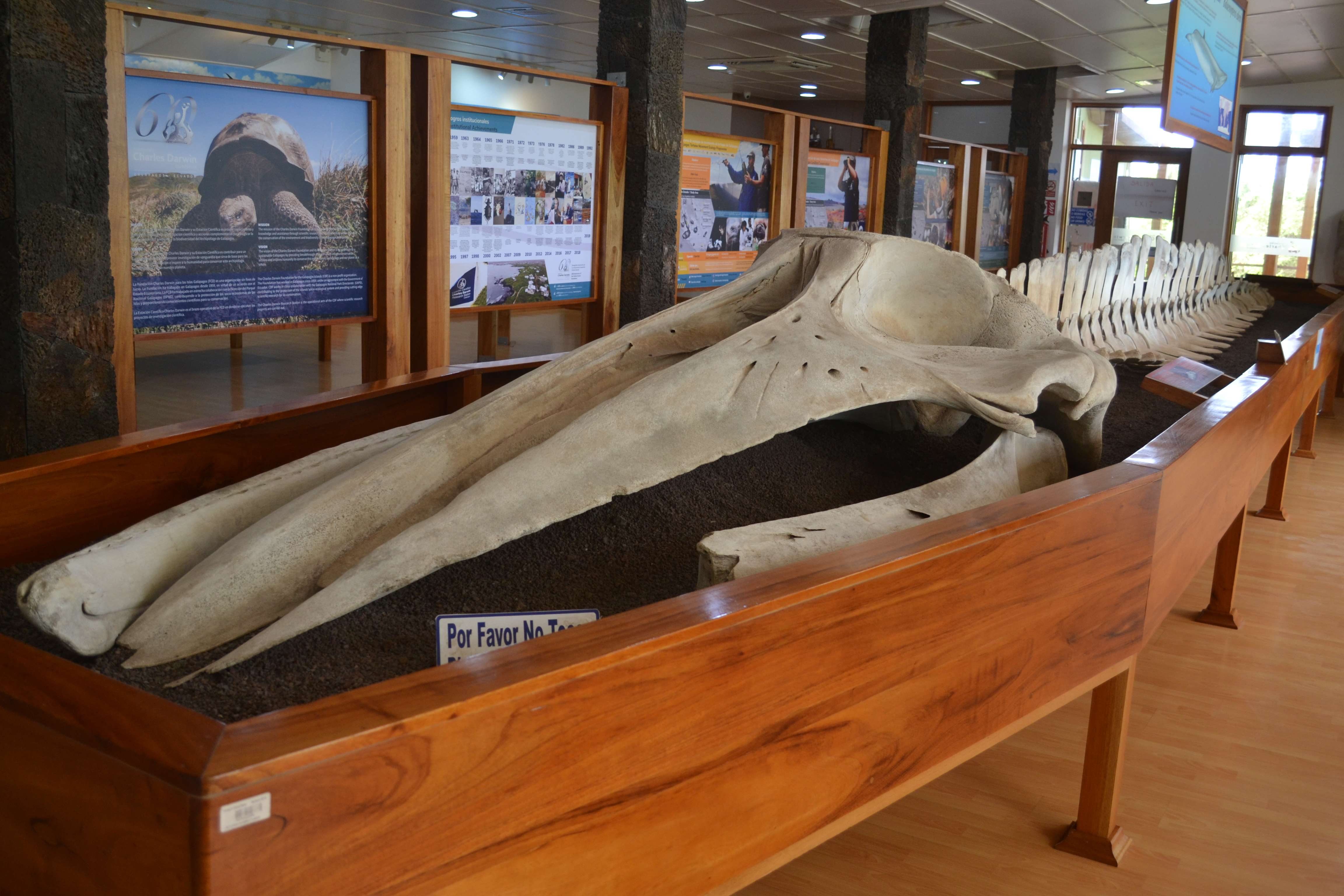 After watching the tortoises for a long time, we completed the path and parted ways with our guide at the Charles Darwin Exhibition Hall. Opened in 2016, the hall features a small museum with photo displays, murals and local artists’ work, a natural history collection, and a full skeleton of a Bryde’s whale. The museum was small but well done and interesting. The boys especially enjoyed the skeleton and examples of different tortoise shells.