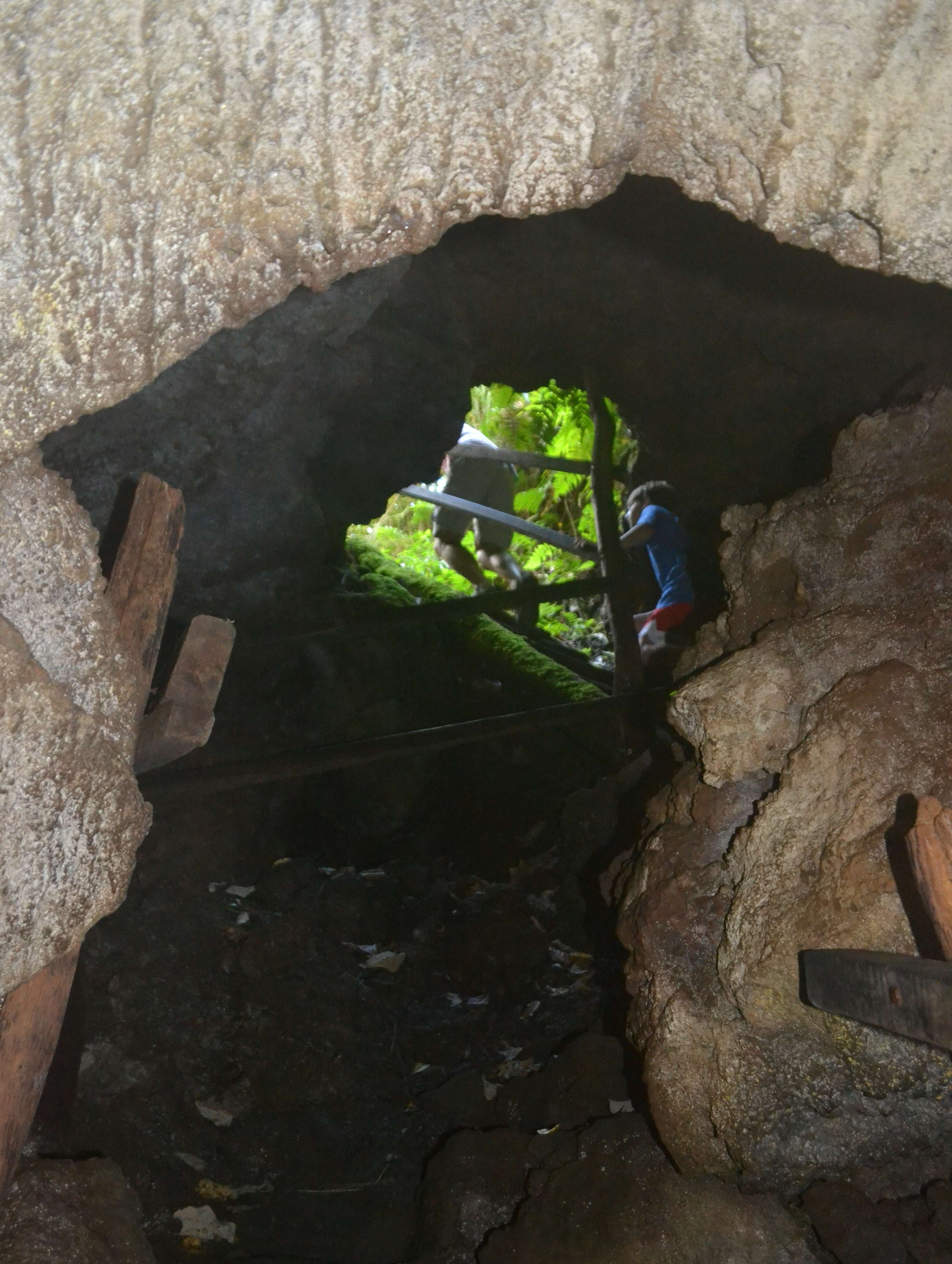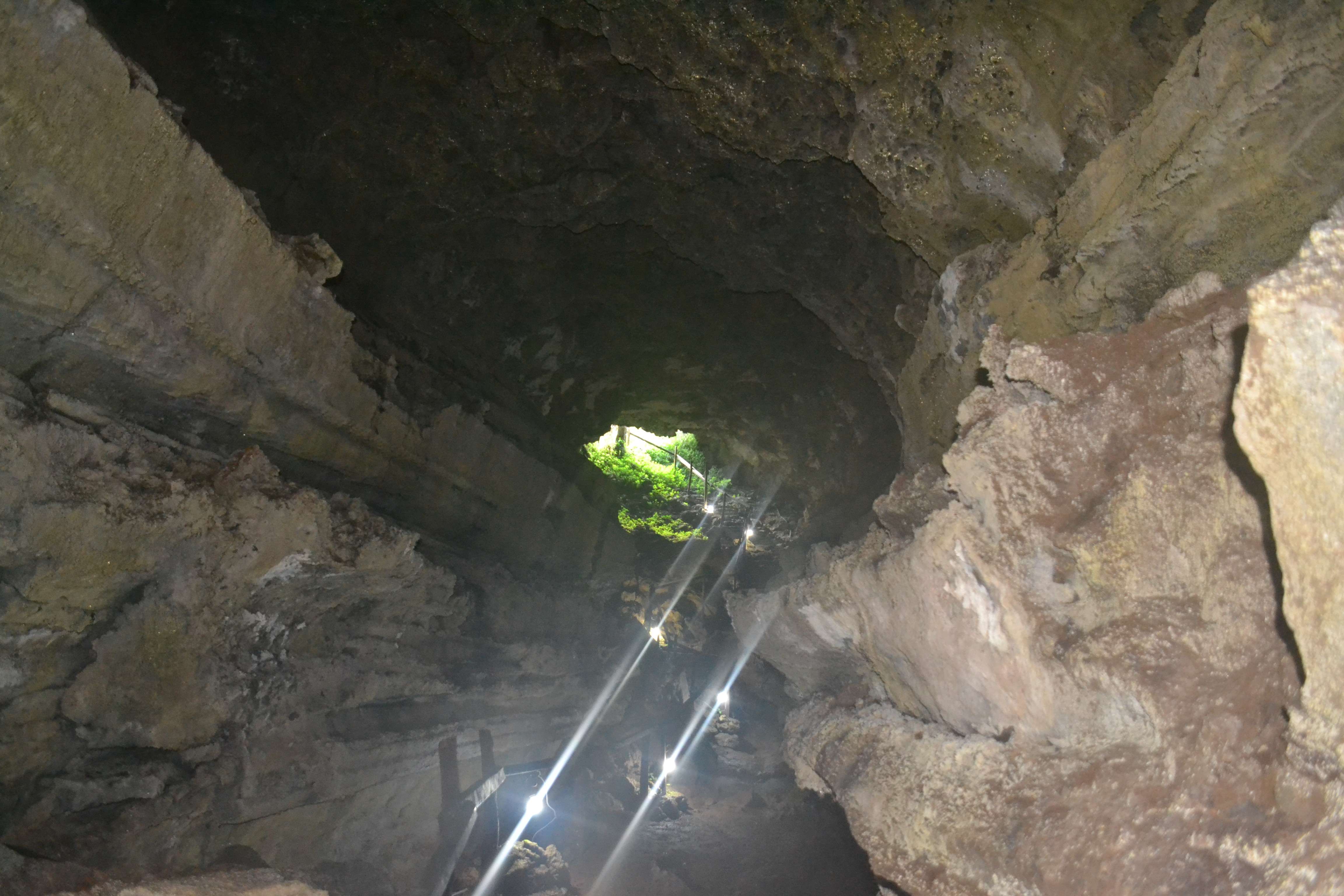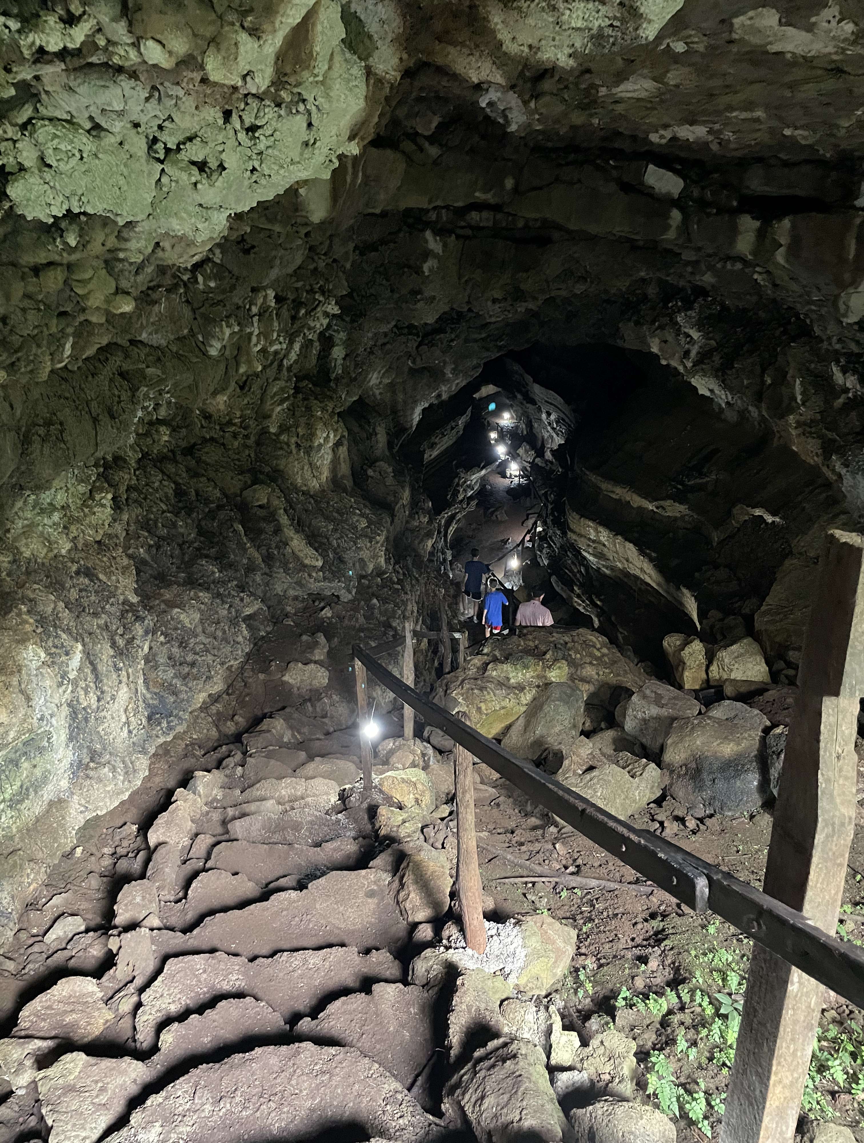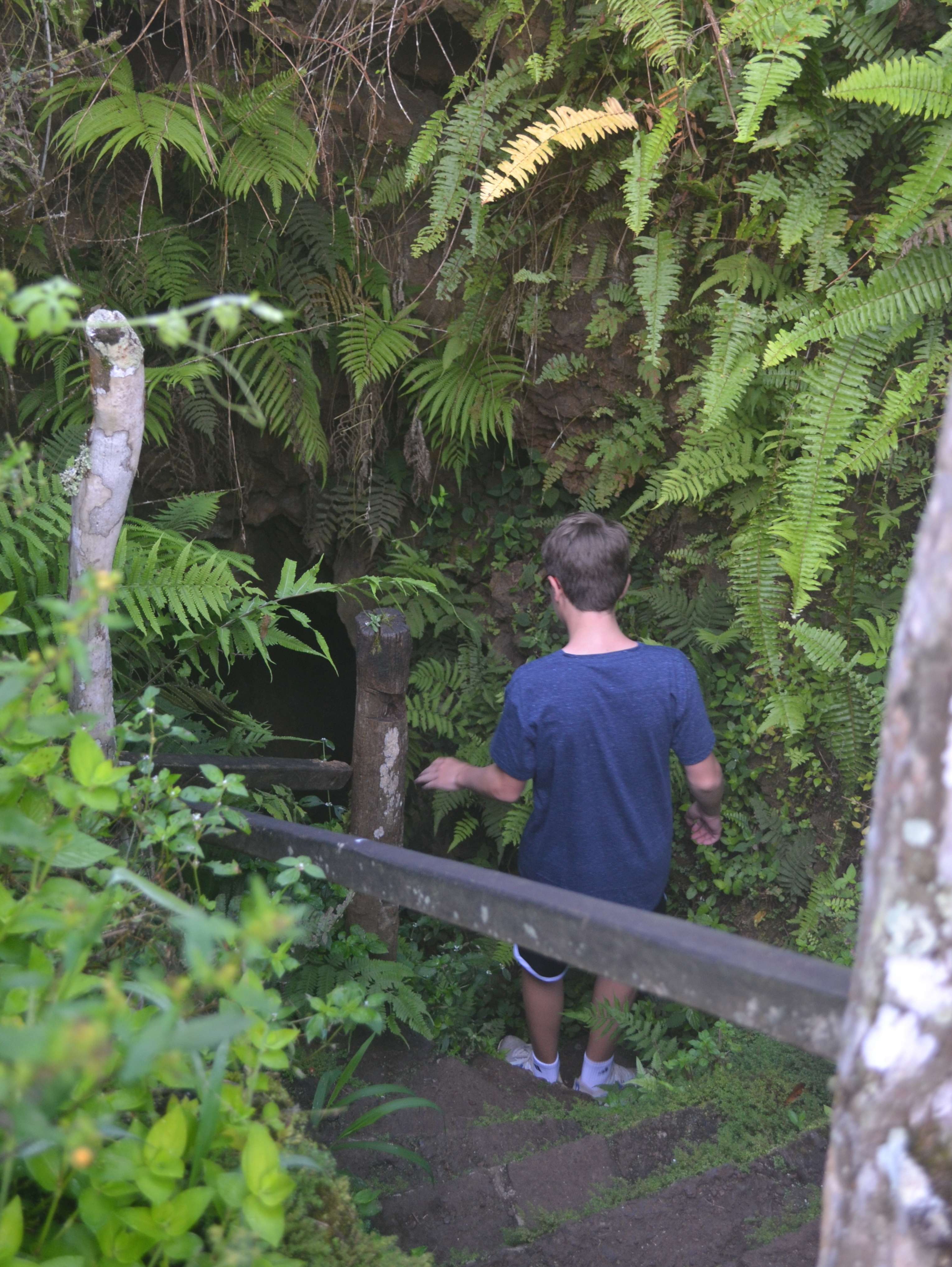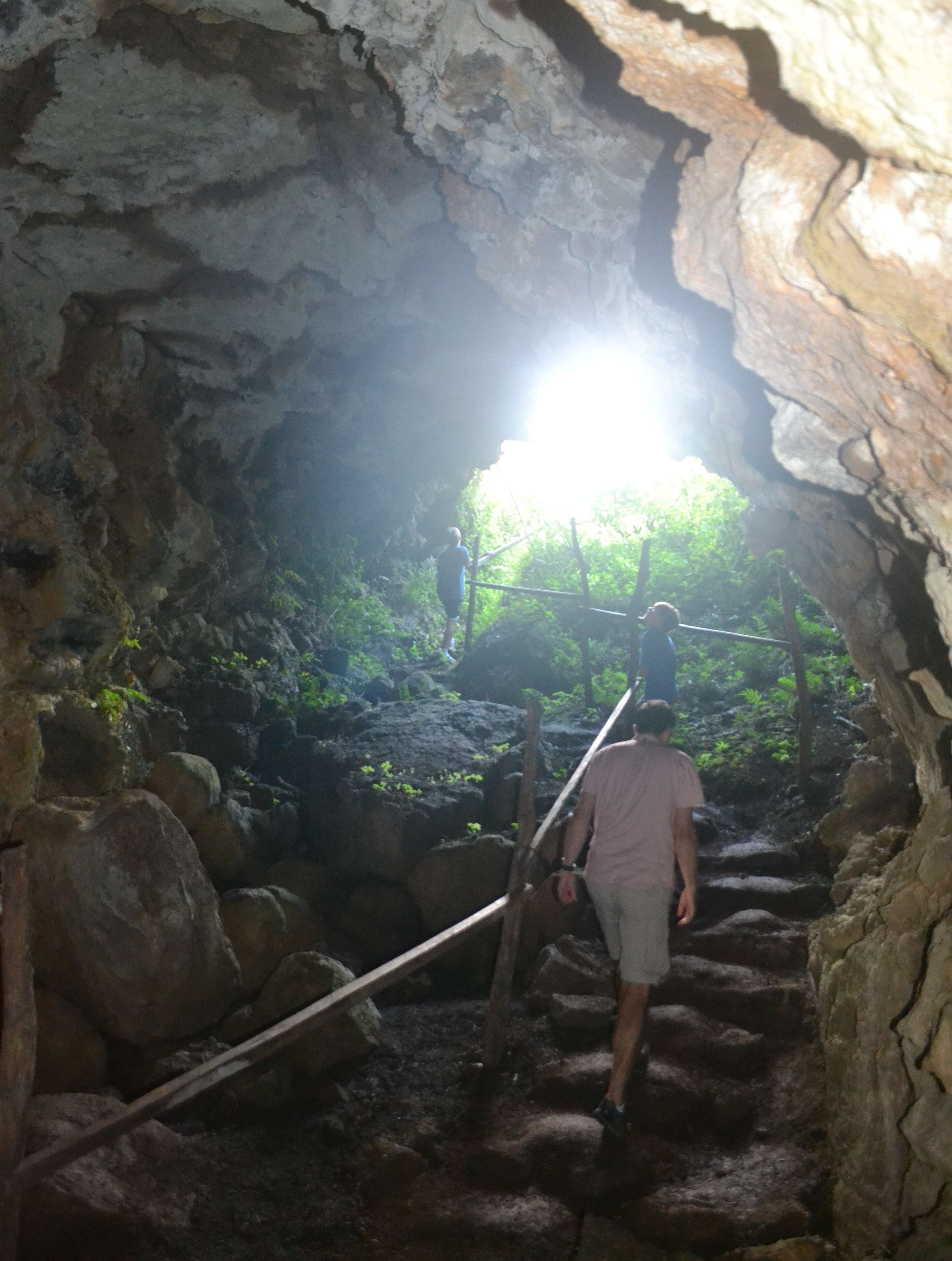 The lava tubes are areas where lava once flowed underground and then cooled and hardened, leaving behind huge underground tunnels. Stairs led down into the cool, dark tunnels and then back out the other side. The longer ones had lighting in them so you could see where you were going. We had peeked into some lava tunnels in Los Humedales on Isabela, and we thought it was neat to actually get to walk through these ones. It took less than 10 minutes to walk through all of them and was an interesting and worthwhile part of our visit.