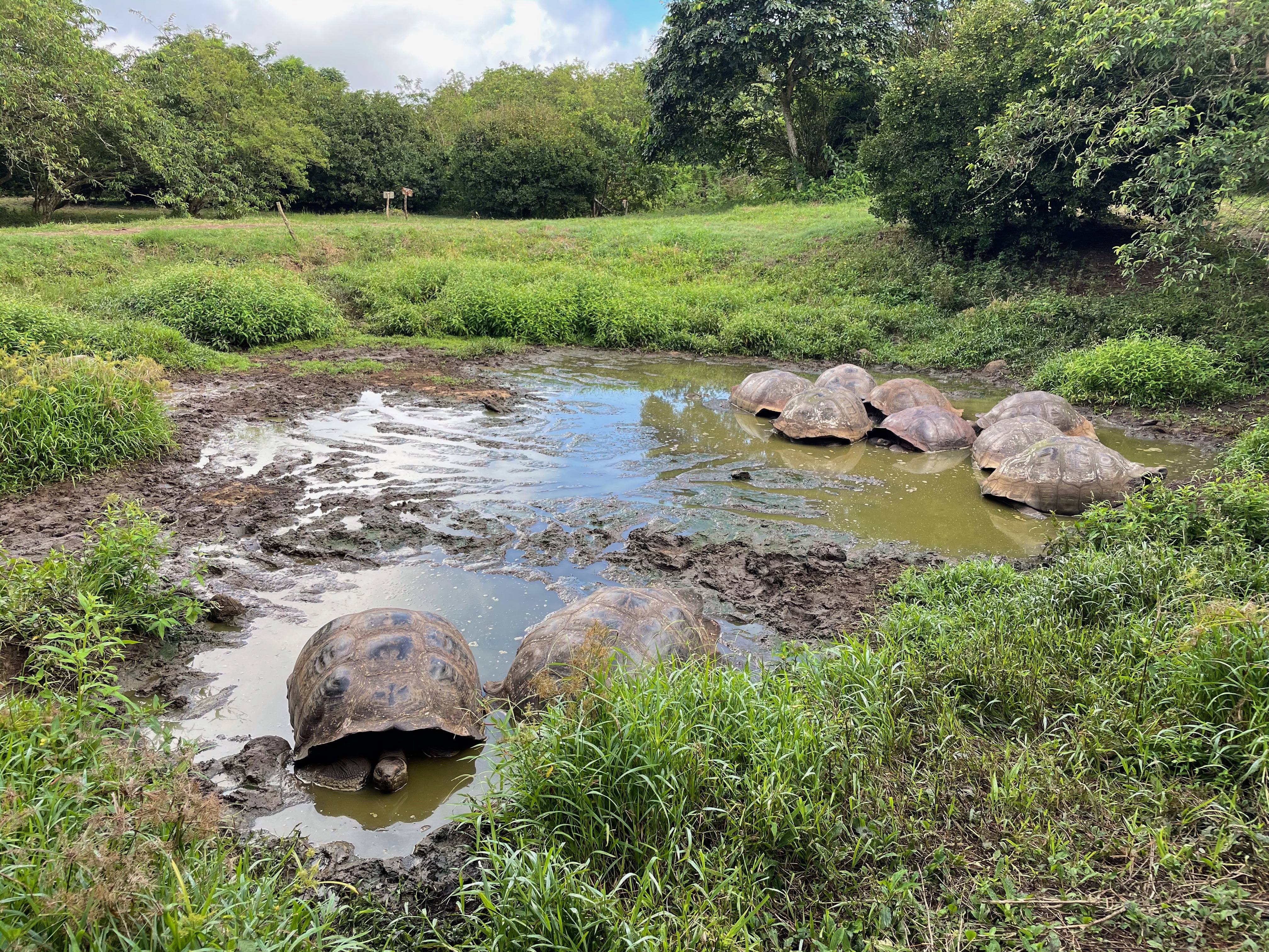 We first came to a large pond, where there were 10 tortoises cooling themselves off in the water and mud.