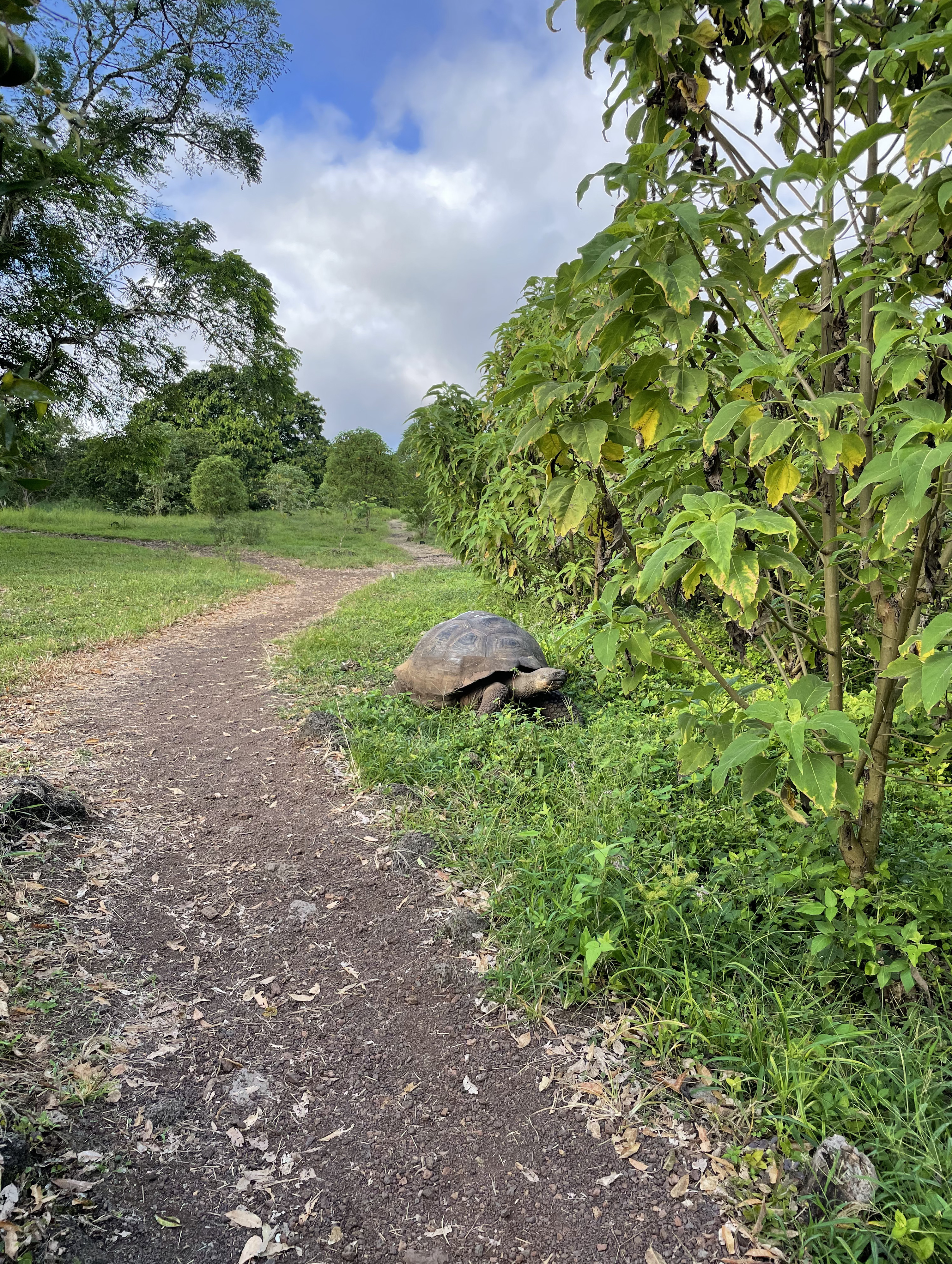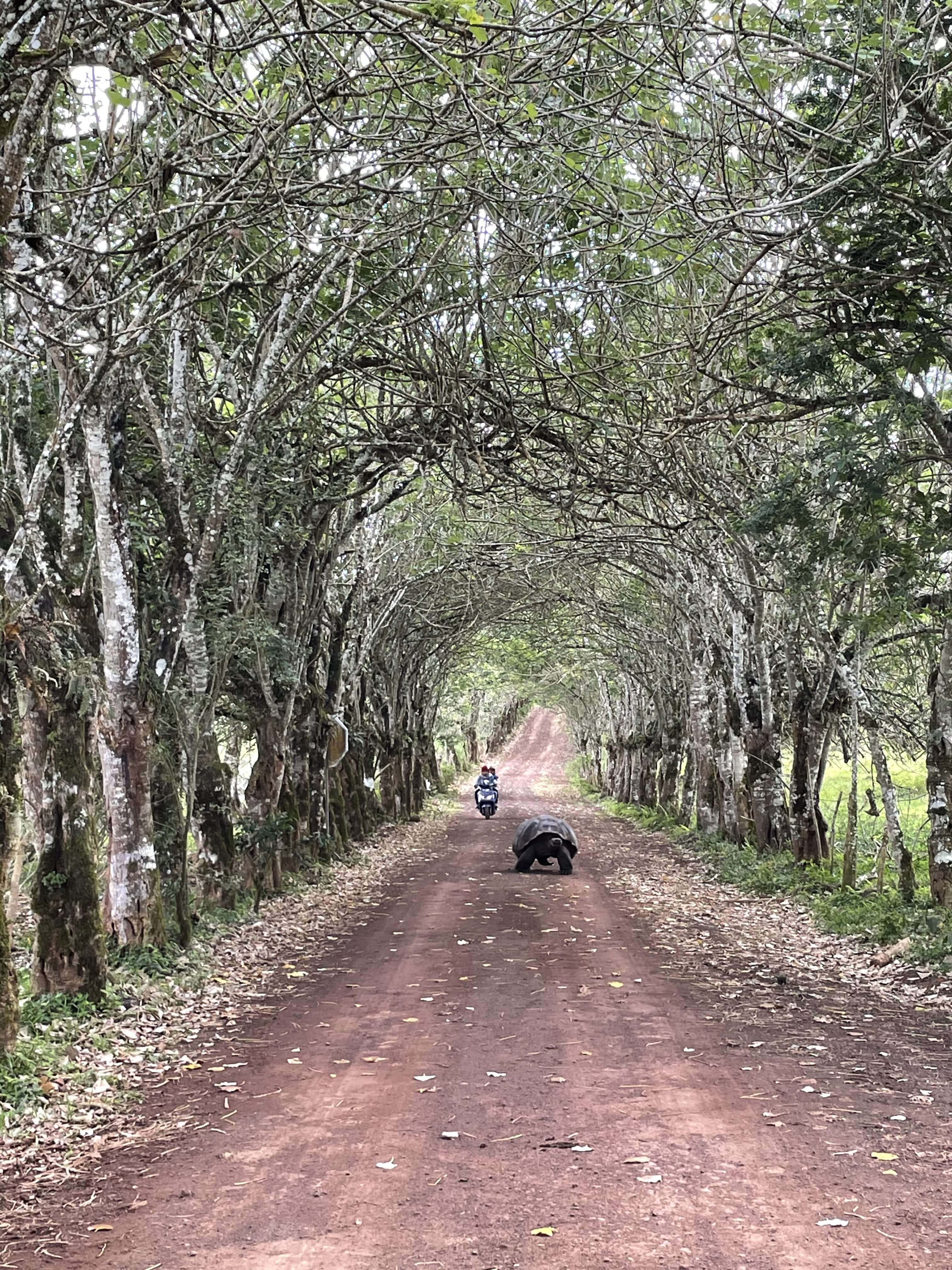We met back with our driver and continued our journey to the airport, making one last stop at Los Gemelos. But we had one final encounter with a tortoise on our way out. As we headed back to the main road, we were stopped by a huge tortoise walking down the center of the road. We had to wait patiently until he made his way to the side of the road but a moped coming from the other direction was able to skirt by along the side of it. With the beautiful backdrop of the tree canopy, this is one of my favorite pictures from our trip.