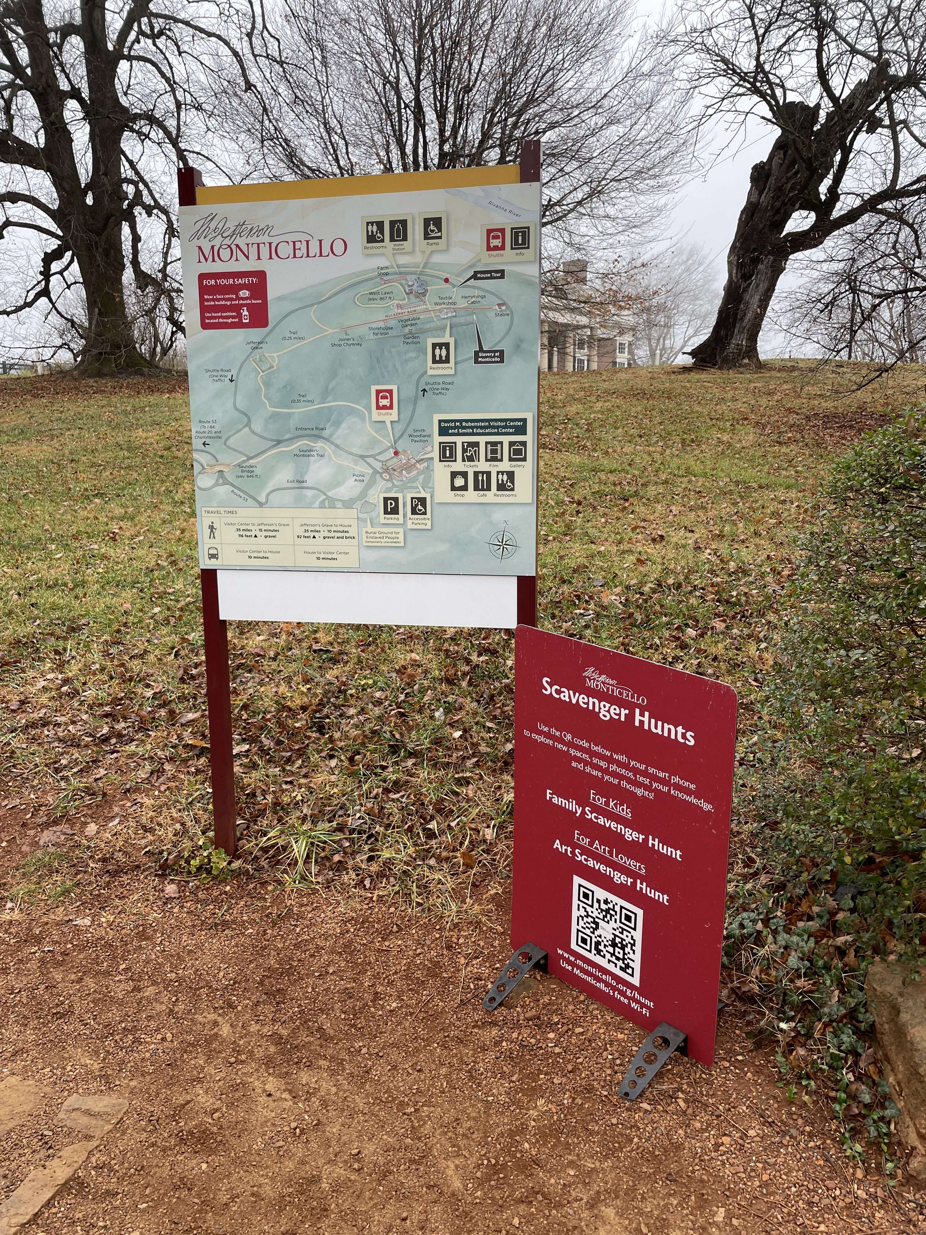 We definitely didn’t win the weather lottery on this trip and missed out on the iconic views because of it. But we still really enjoyed our visit and got a lot out of our time there. The self-guided tour inside the house was well designed and informative and being able to wander the grounds and explore the exhibits in the wings and along Mulberry Row was interesting as well. All told we spent about 2 hours there and thought it is well worth our detour to Charlottesville.