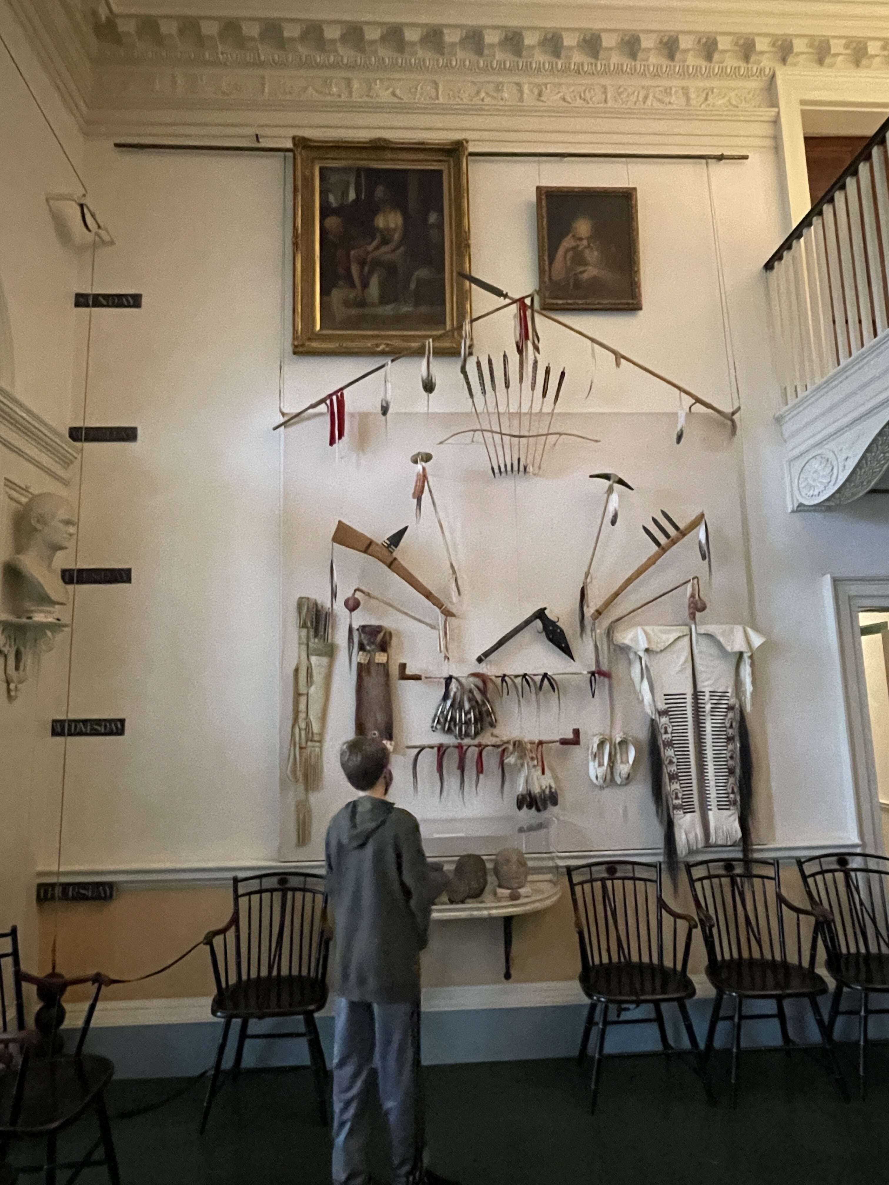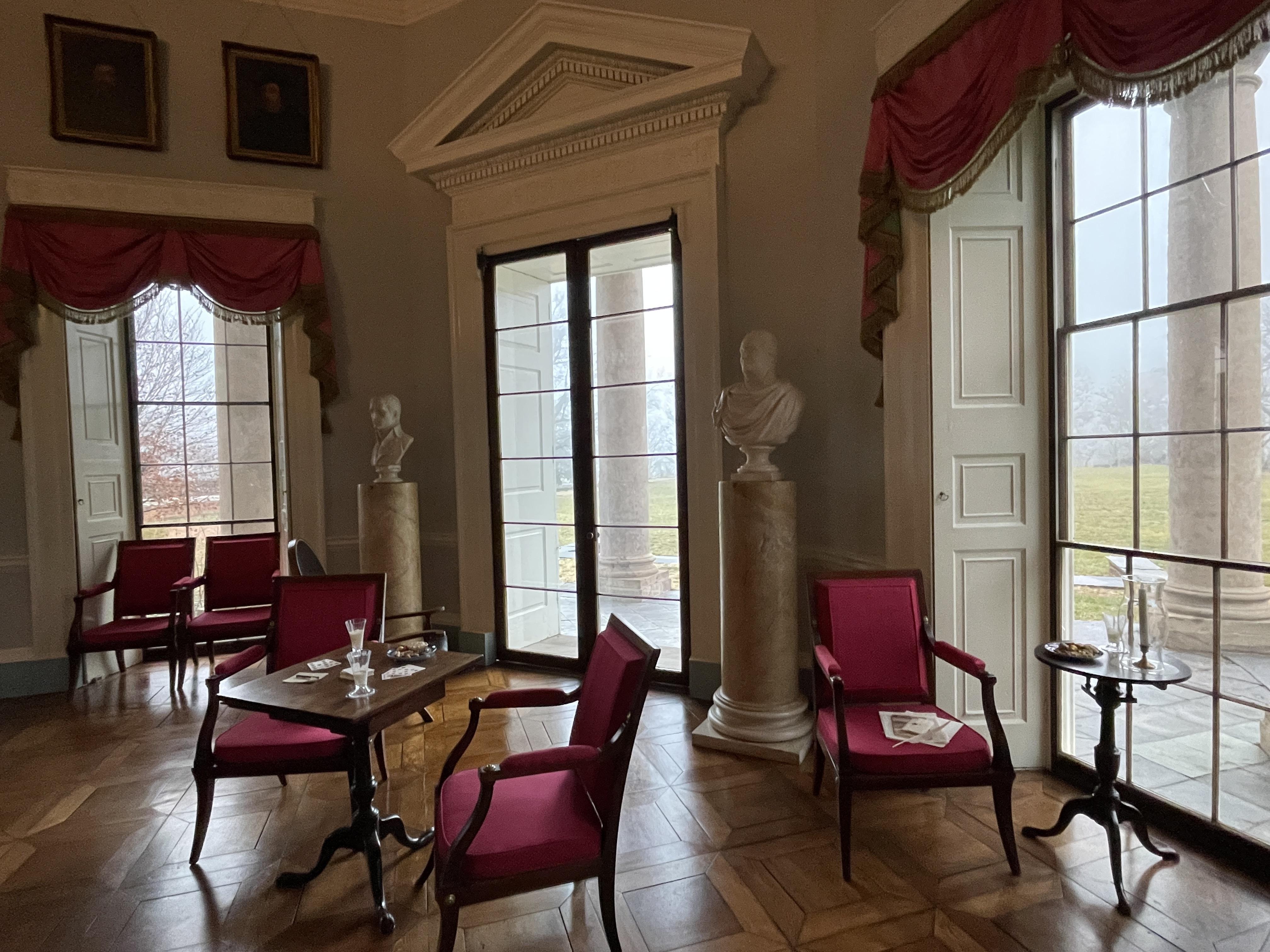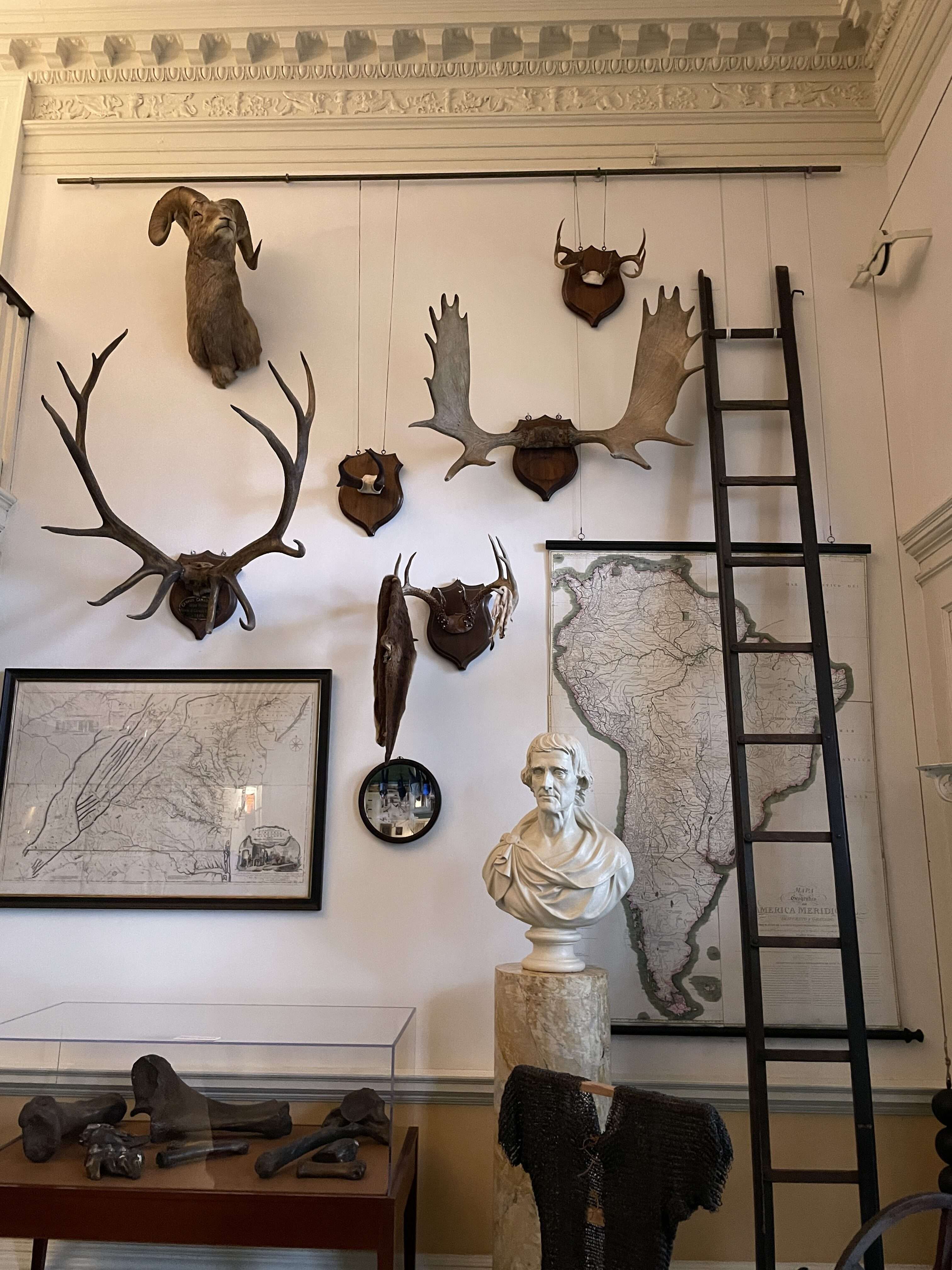 The entrance hall was one of the most interesting rooms. Adorned with everything from busts to antlers to maps, the room was furnished to demonstrate Jefferson’s world focus.