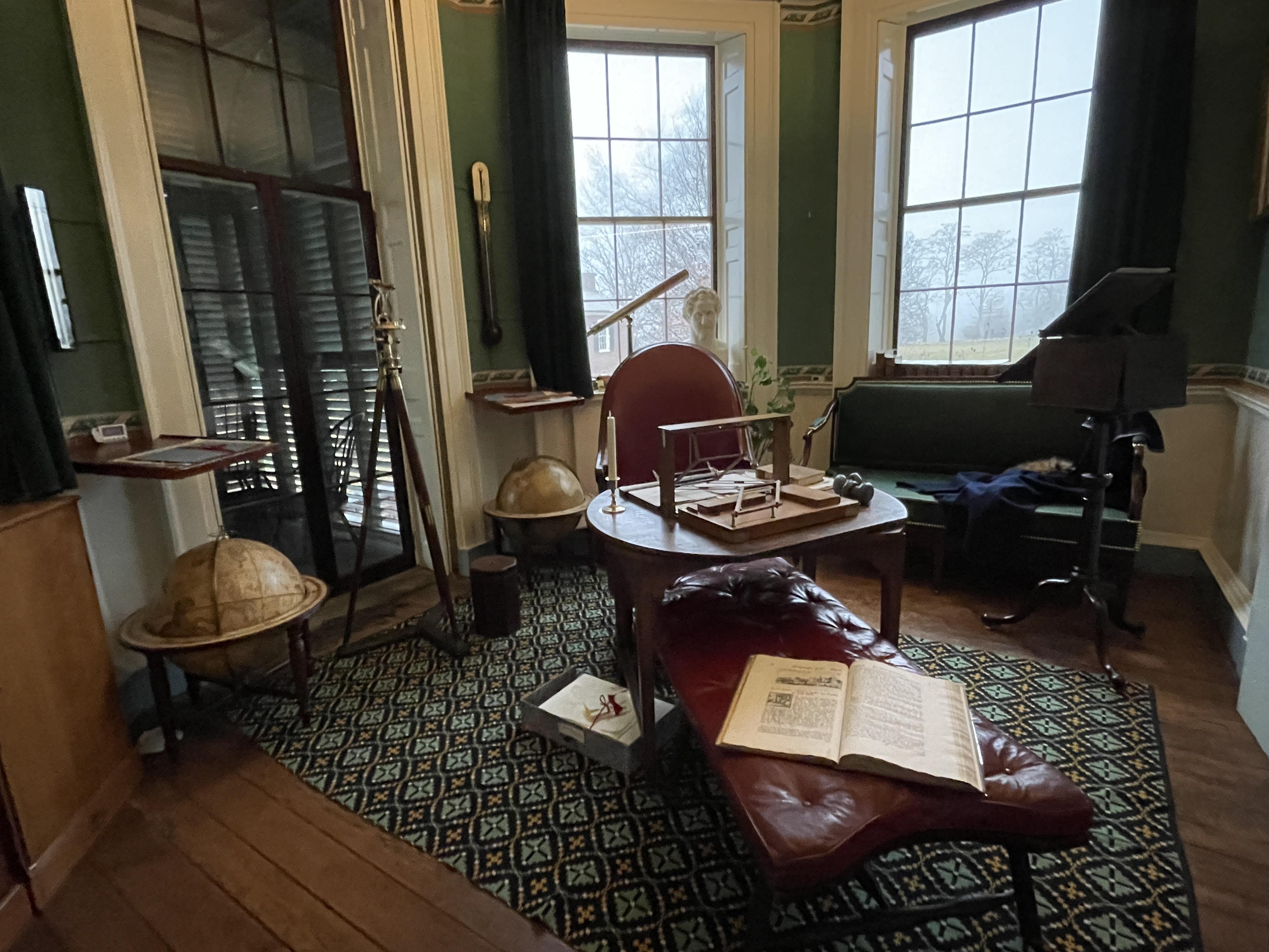 We spent a good bit of time taking in everything in the entrance hall. It was truly a fascinating room filled with fascinating objects. From there we continued the tour by walking through the sitting room, the library, the Cabinet, and Jefferson’s bed chamber.