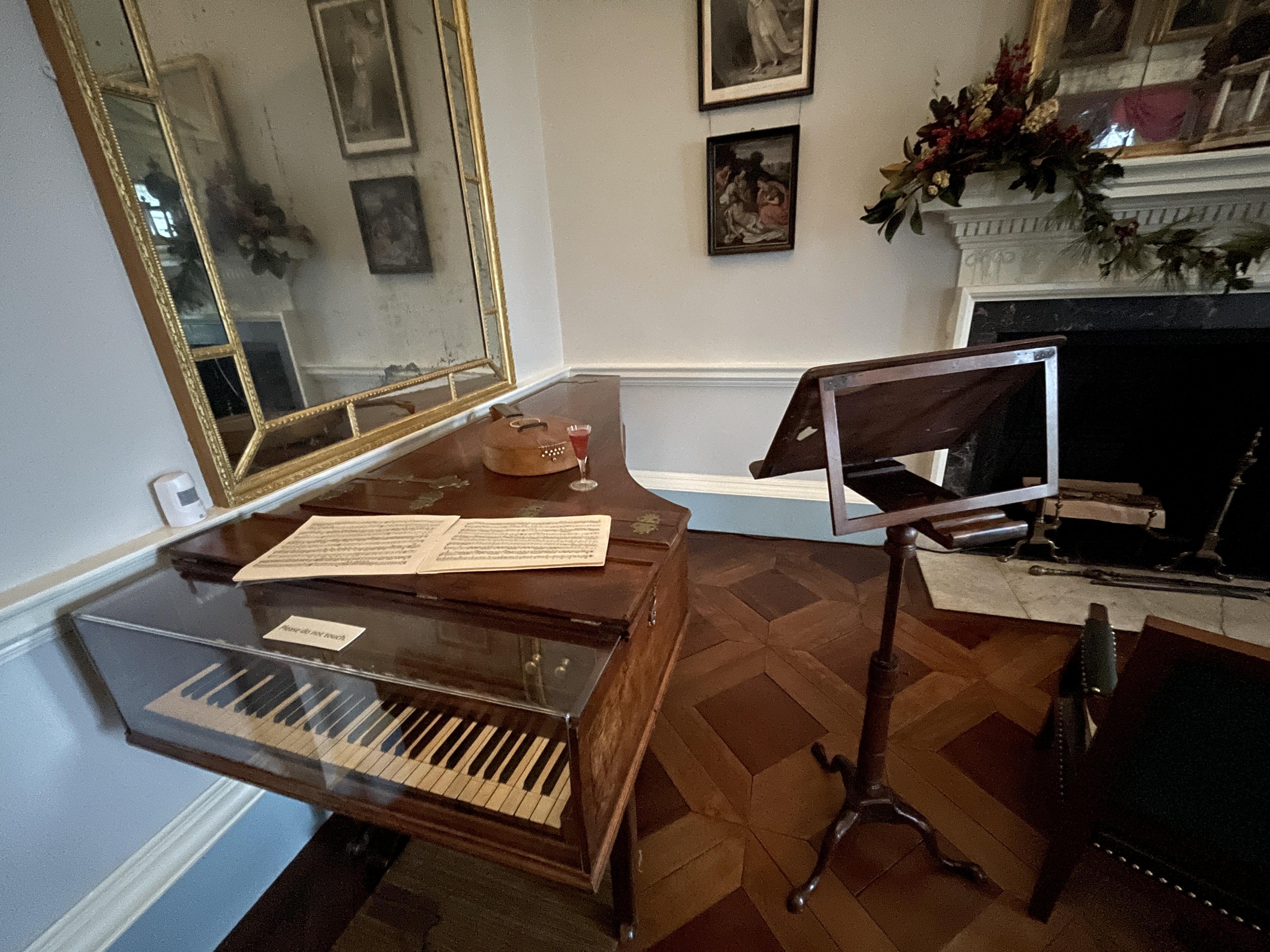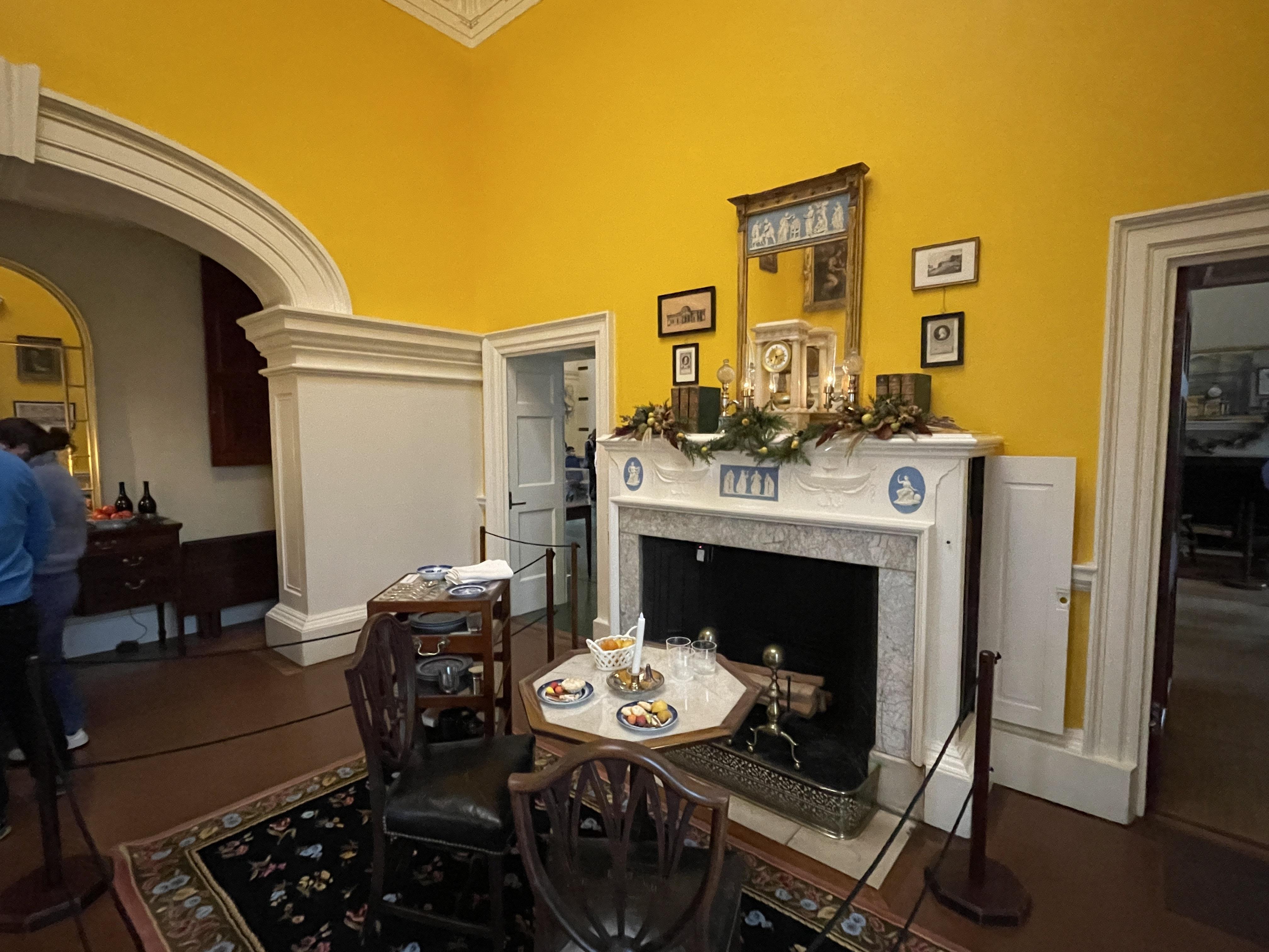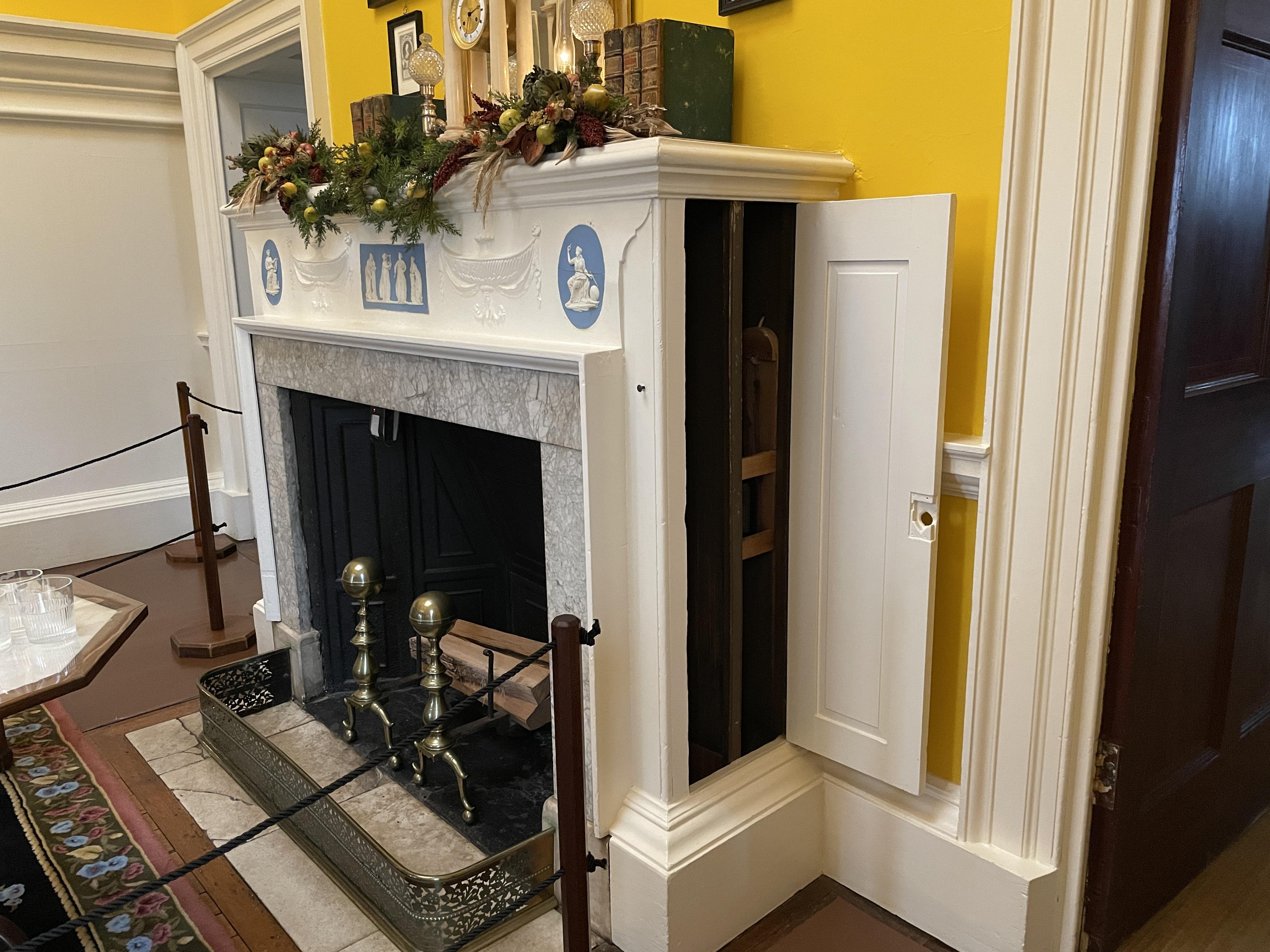 After passing back through the entrance hall, we explored the other side of the house, including the Parlor and the Dining Room. The dining room had another ingenious design feature – a wine dumbwaiter. Built into either side of the fireplace, servants would send bottles of wine up from the cellar using the dumbwaiter.