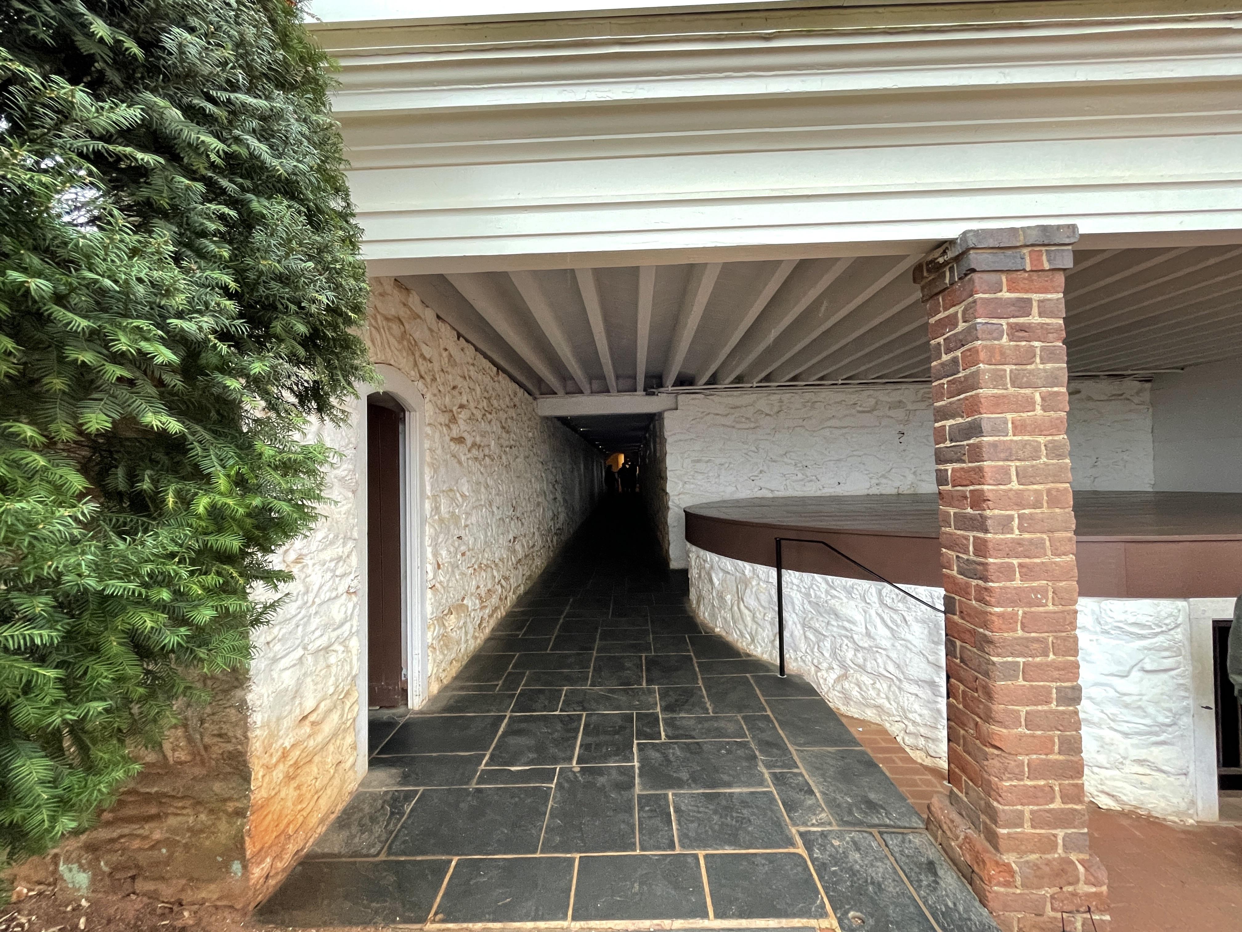 After completing the tour of the inside of the house, we headed outside to explore the grounds. The estate has two L-shaped “dependency” wings extending from each side of the house. These wings housed rooms used for support services such as the kitchen, the ice house, and the smokehouse. The wings were designed to not be visible from the mansion or west lawn. Built into the natural slope of the land with entrances on the back side and their roofs disguised as terraces, the dependency wings were discretely hidden from visitors yet still easily accessible to staff. An all-weather passage connects the wings to each other and to the basement of the house. It was really interesting to explore this area and to see what went into running a house of this prominence.