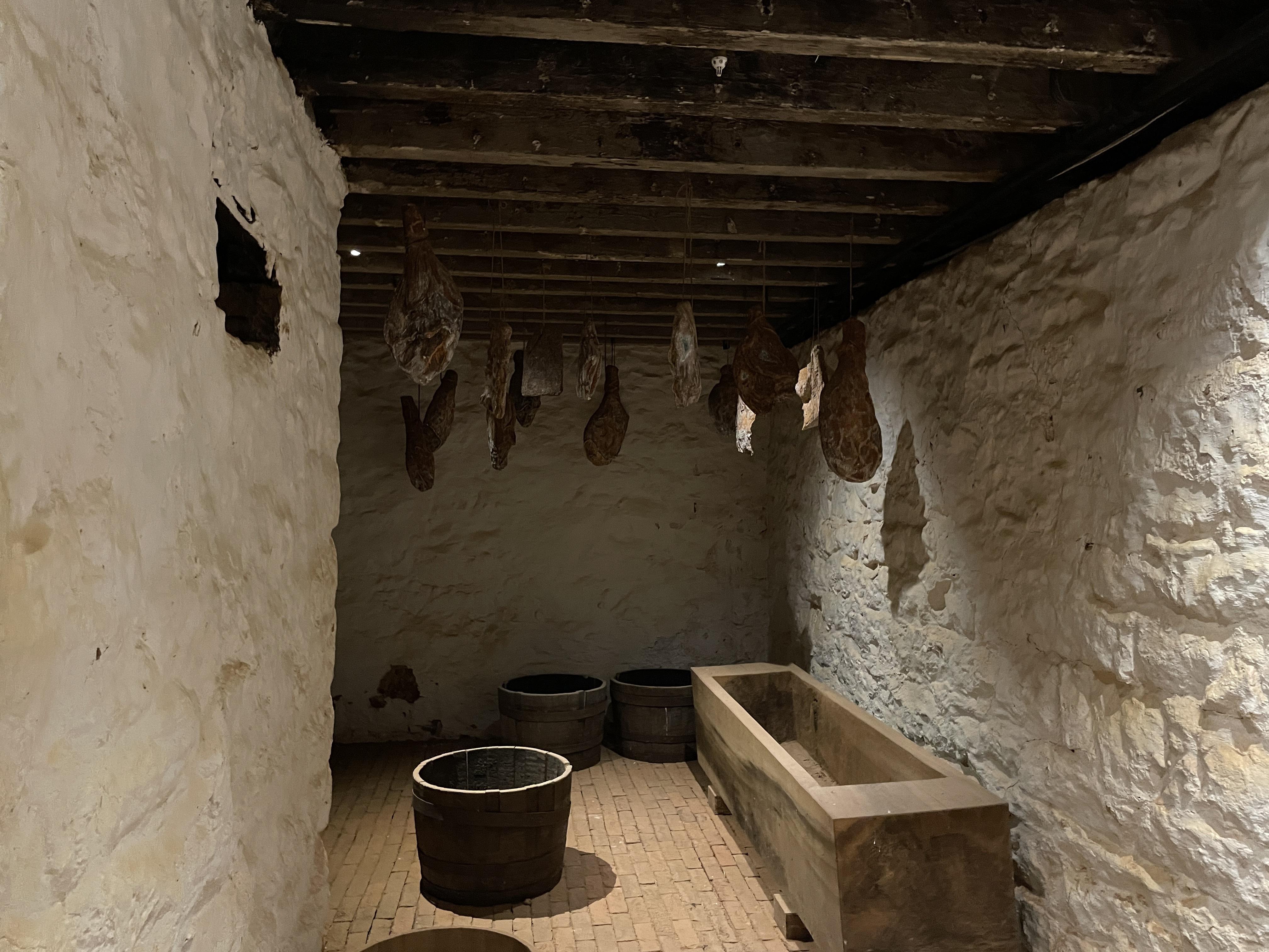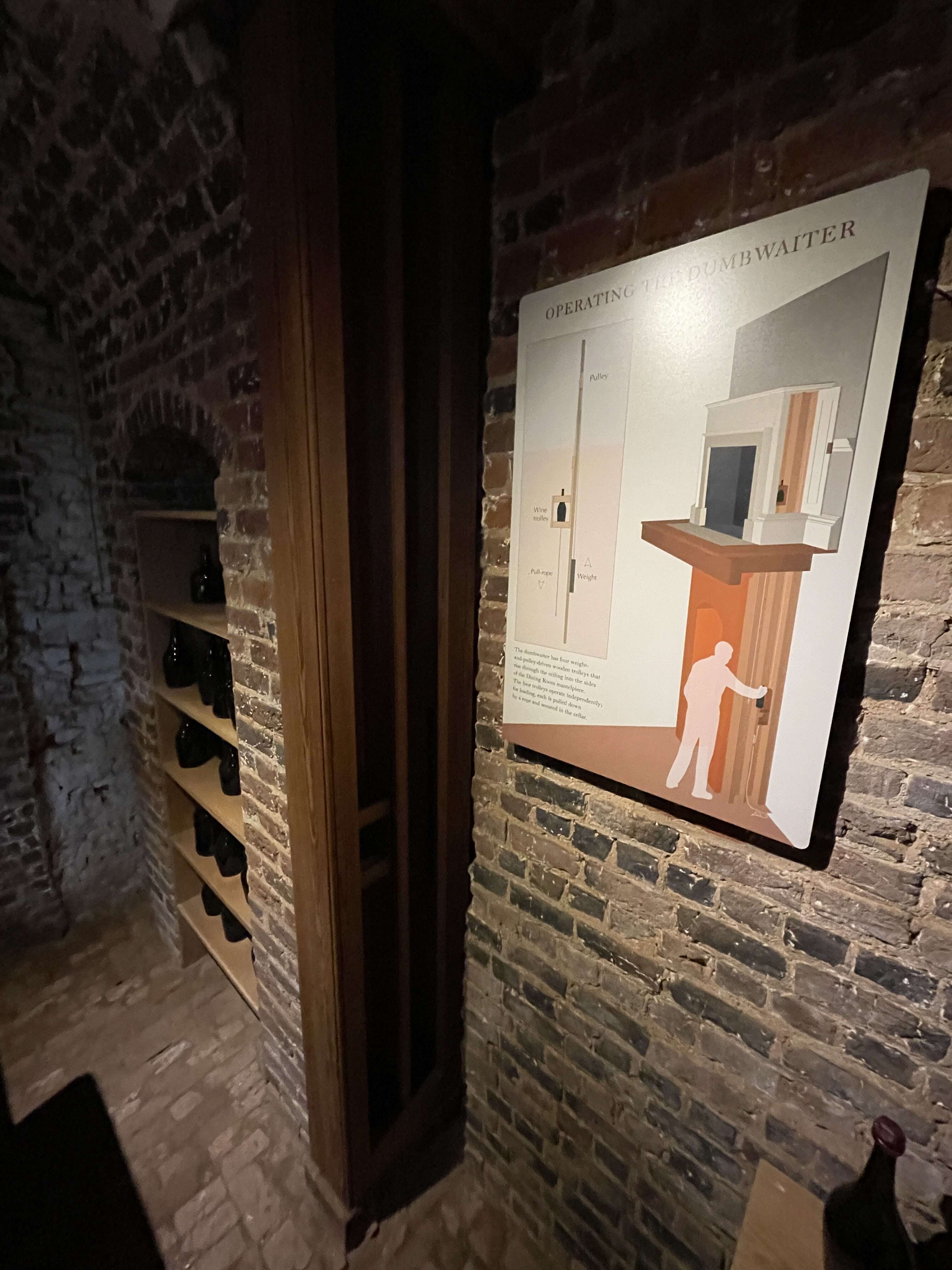 In the storage cellar, we were able to see the other end of the wine dumbwaiter that was built into the dining room fireplace.