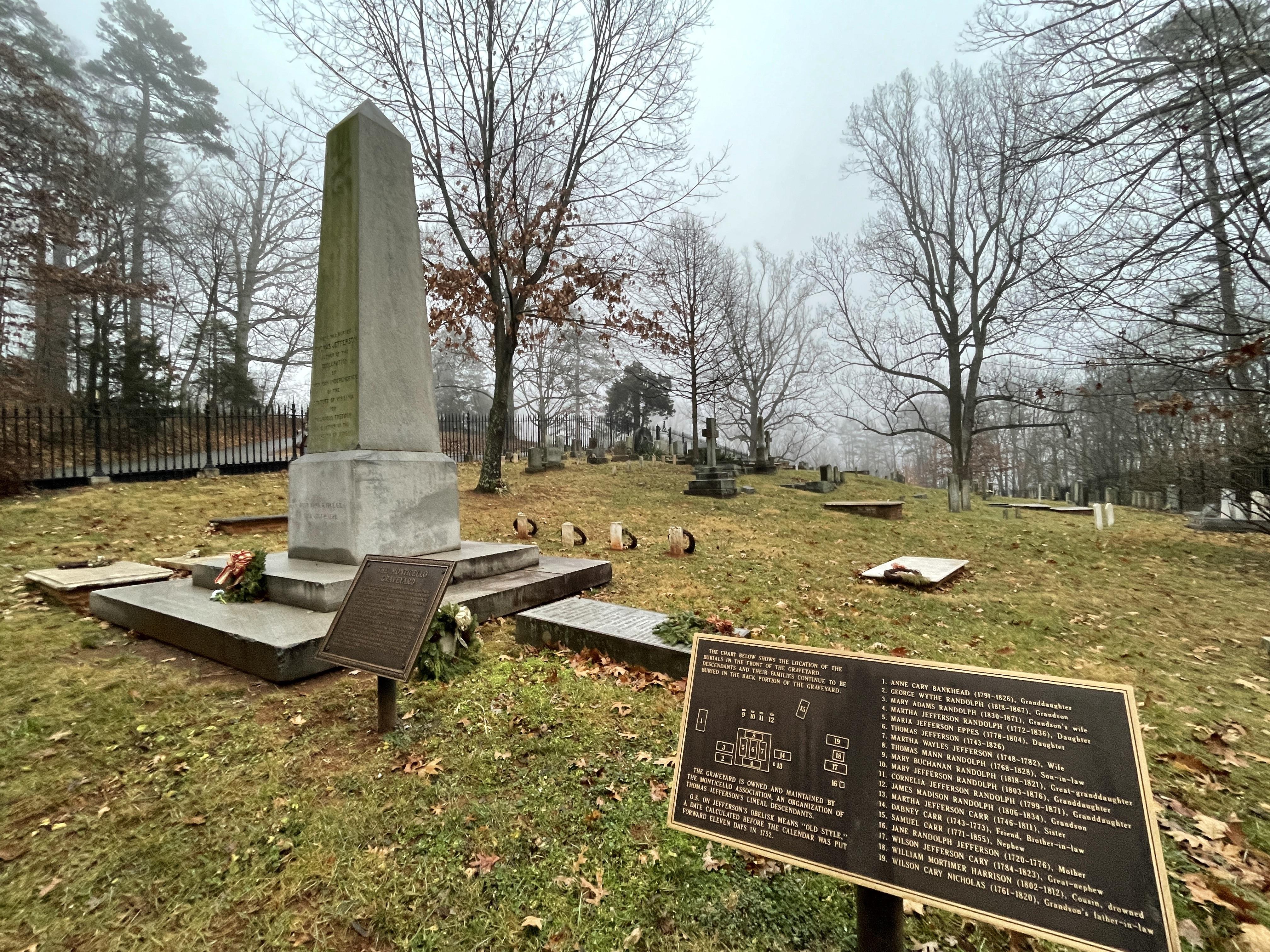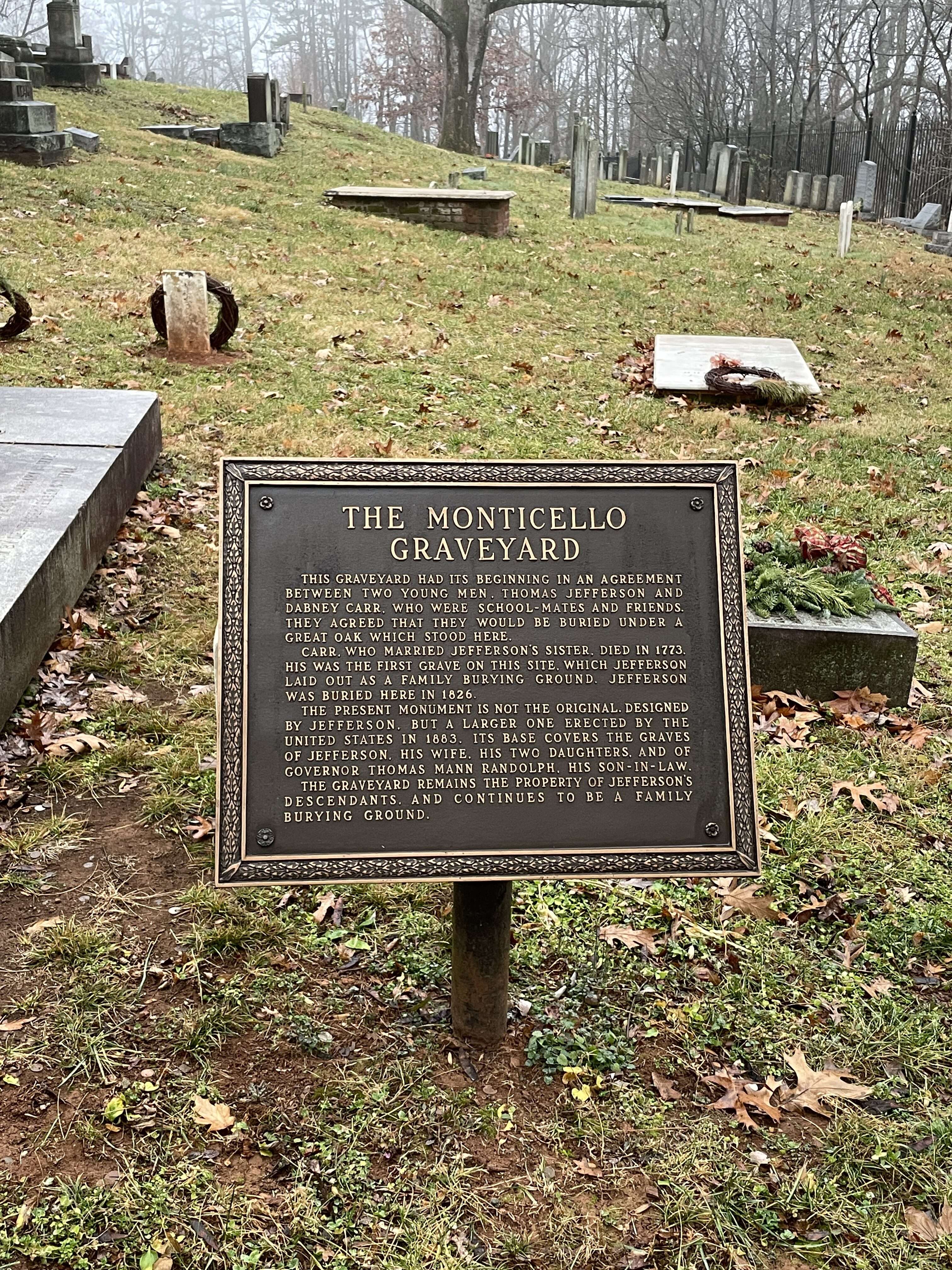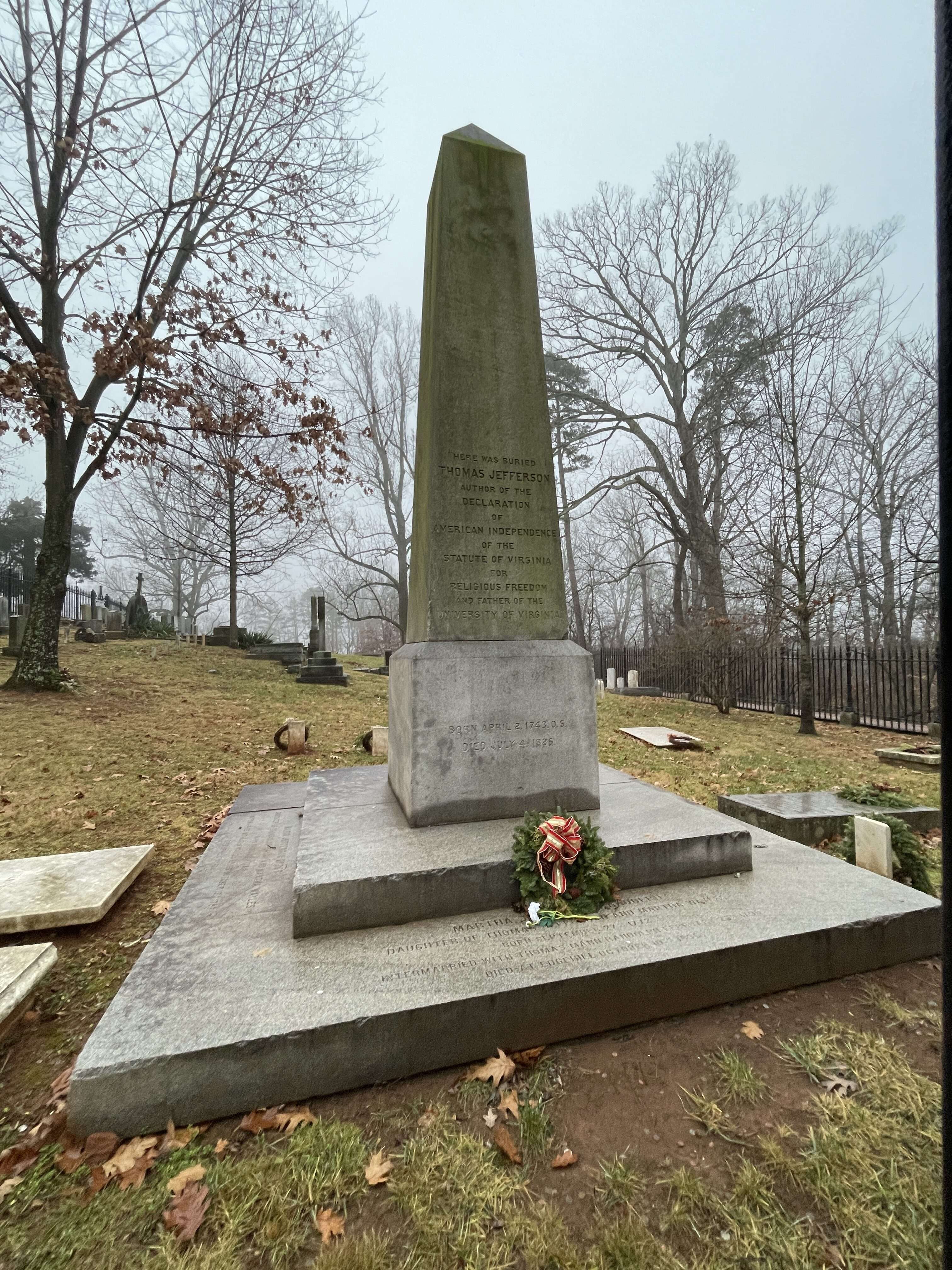 At the end of Mulberry Row, you can either choose to return to the front of the house to take the shuttle bus back to the visitor center or to walk the less than half mile path back. The path takes you past the Monticello Graveyard and Jefferson’s grave. Jefferson designed his own grave marker and left explicit instructions on what was to be inscribed on it: “Here was buried Thomas Jefferson, Author of the Declaration of American Independence, of the Statute of Virginia for religious freedom, and Father of the University of Virginia.