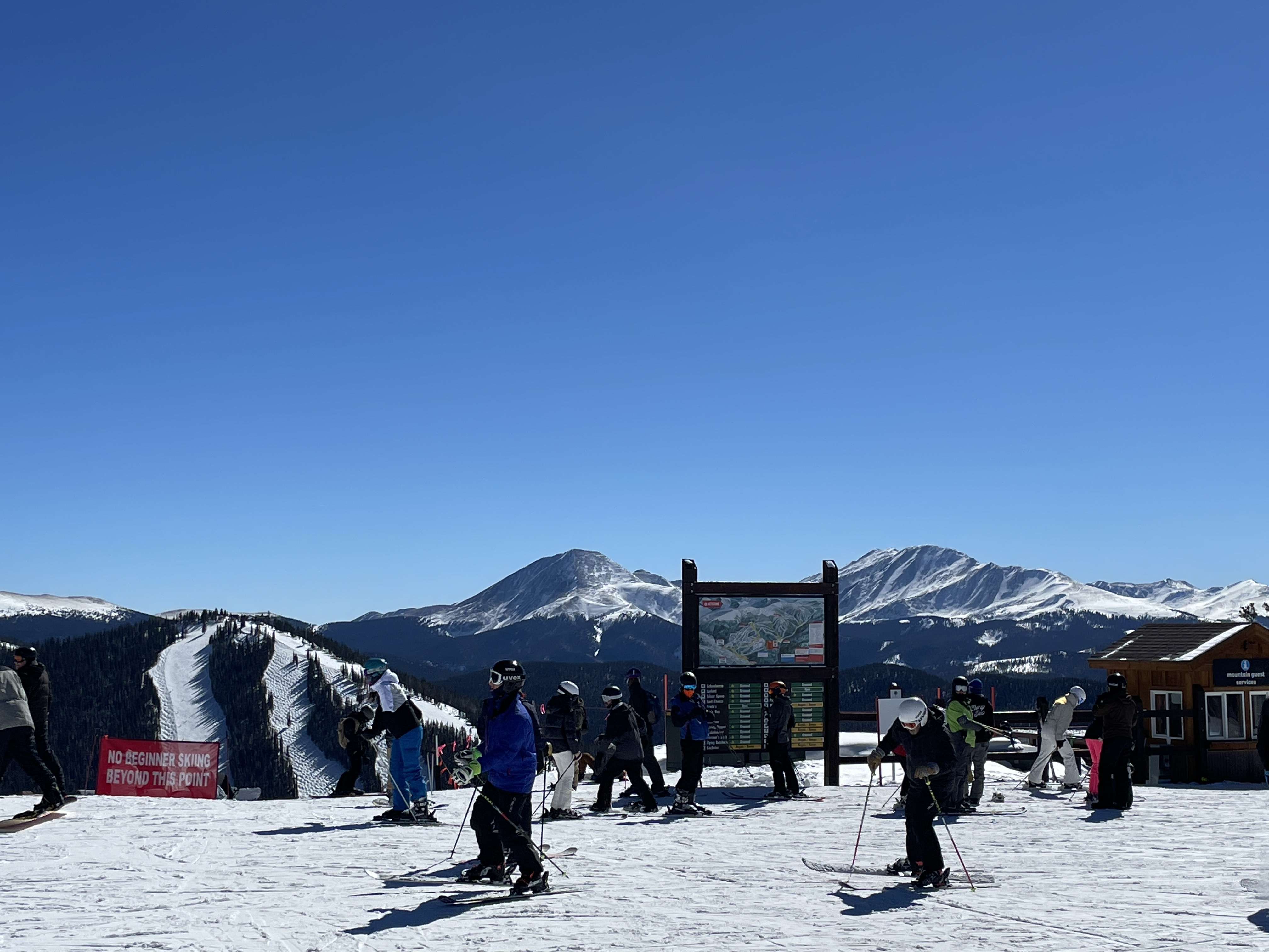 The skiing itself was phenomenal. With 20 lifts, 130 trails, and runs up to 3.5 miles long, there is truly something for everyone here. Dercum Mountain is the main ski area and the gateway to the other two peaks. Its runs are accessible from the lifts and gondolas at both the River Run and Mountain House base areas. Almost all of the runs from its summit back to River Run Village are greens and blues, which was great for our group. Schoolmarm is the “family ski trail”, a green run that is long and varied enough that we didn’t tire of it the same way we did of the green runs at the NC mountain resorts.