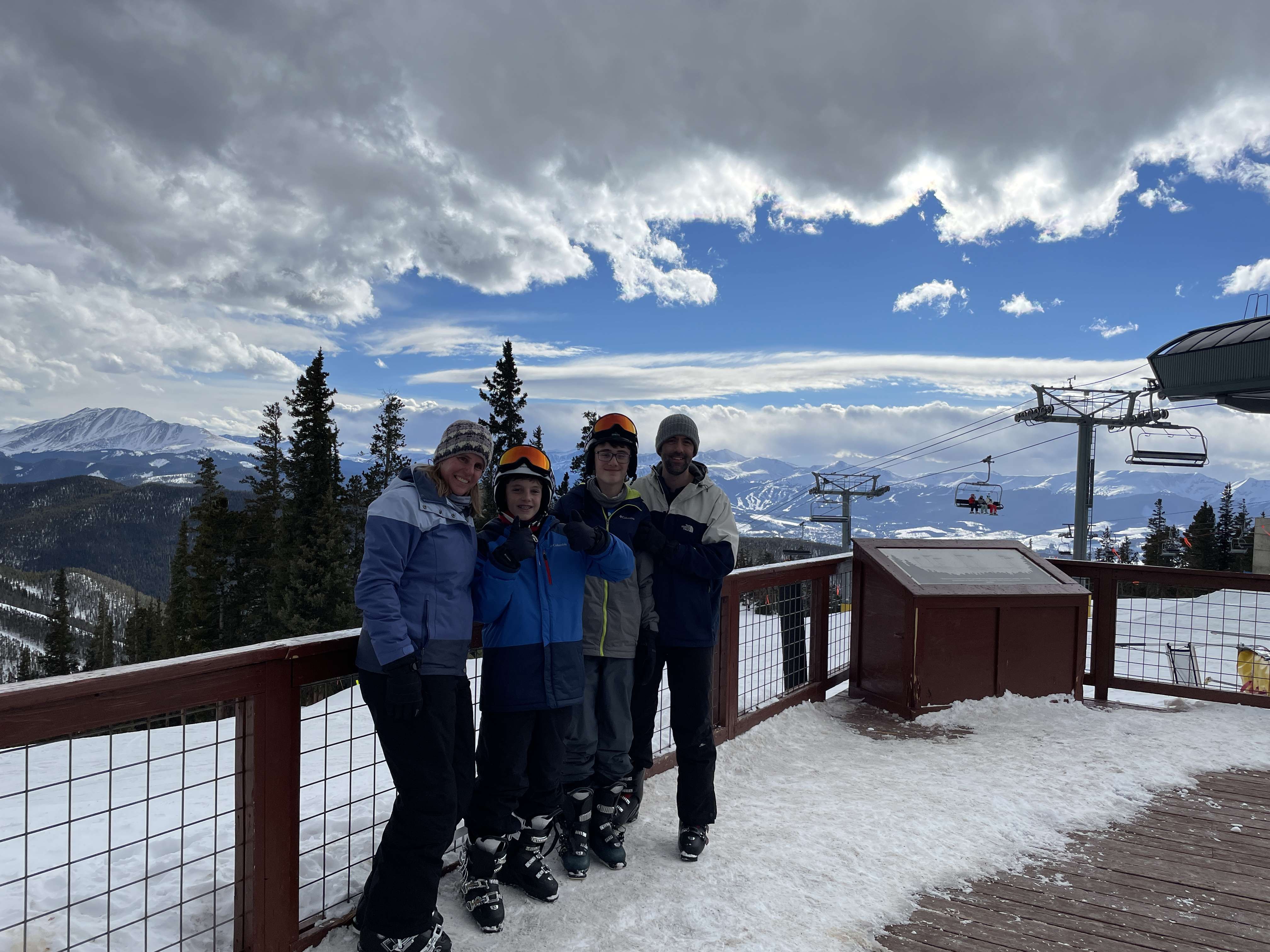 By the third day the kids were confident enough to explore some of the trails on the North Peak. There are no beginner trails on that mountain but there are some blues that were a good but reasonable challenge for them. From the peak of Dercum Mountain, we skied down the back side on the Mozart trail to reach the lift to the top of North Peak. (There is also a peak to peak gondola that we used to get back.) The trail was a little steep and crowded at the head but opened up below. Unfortunately, there seemed to be more reckless skiers on this side of the mountain and we had some close calls, as well as a direct hit from an out of control pre-teen snowboarder who took out our youngest son. Thankfully he was not seriously injured but it did make us all a little more cautious on that side of the mountain. The younger boys and I did another run from there and then headed back to Dercum, while the dads and the older boys spent most of the day on that peak.