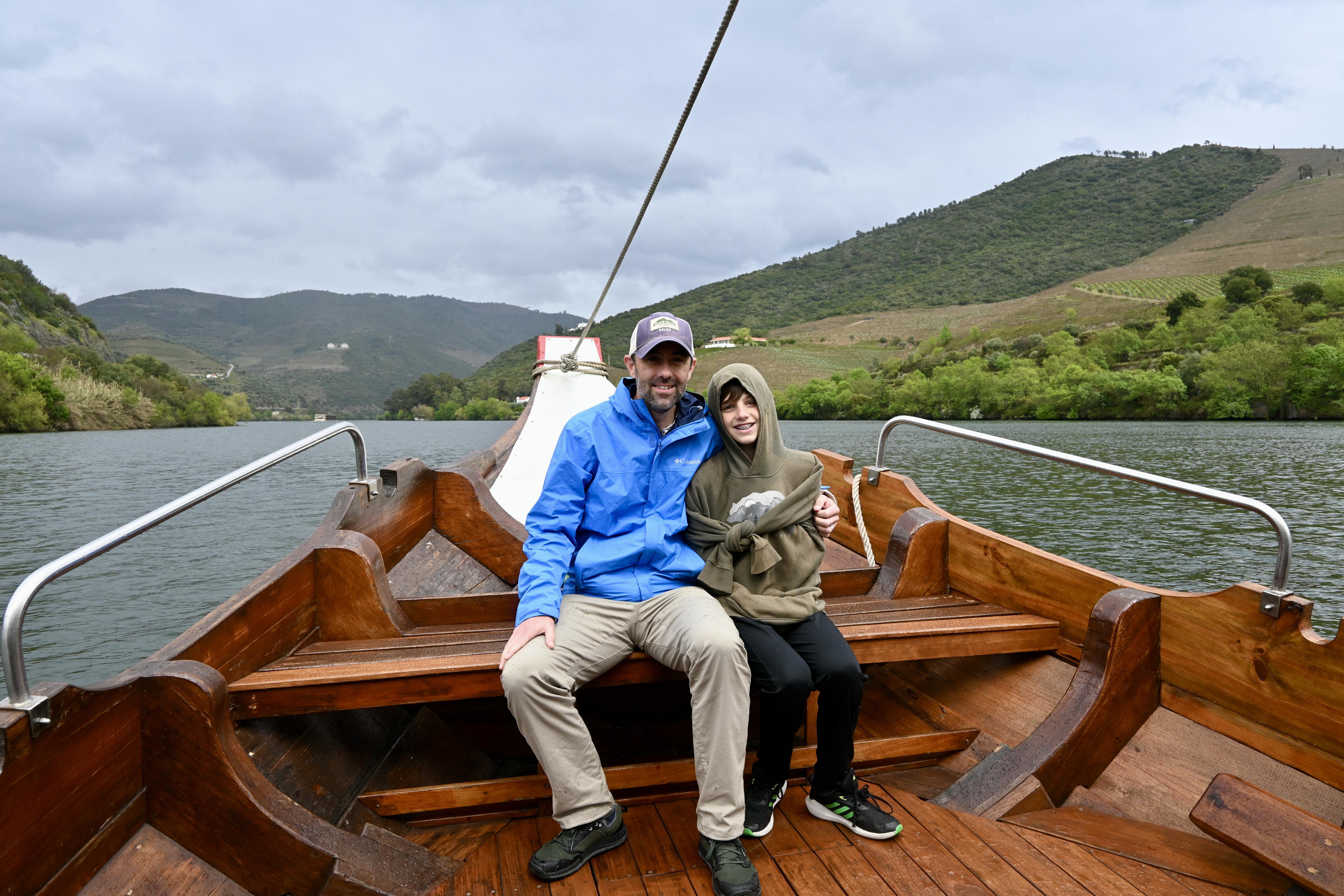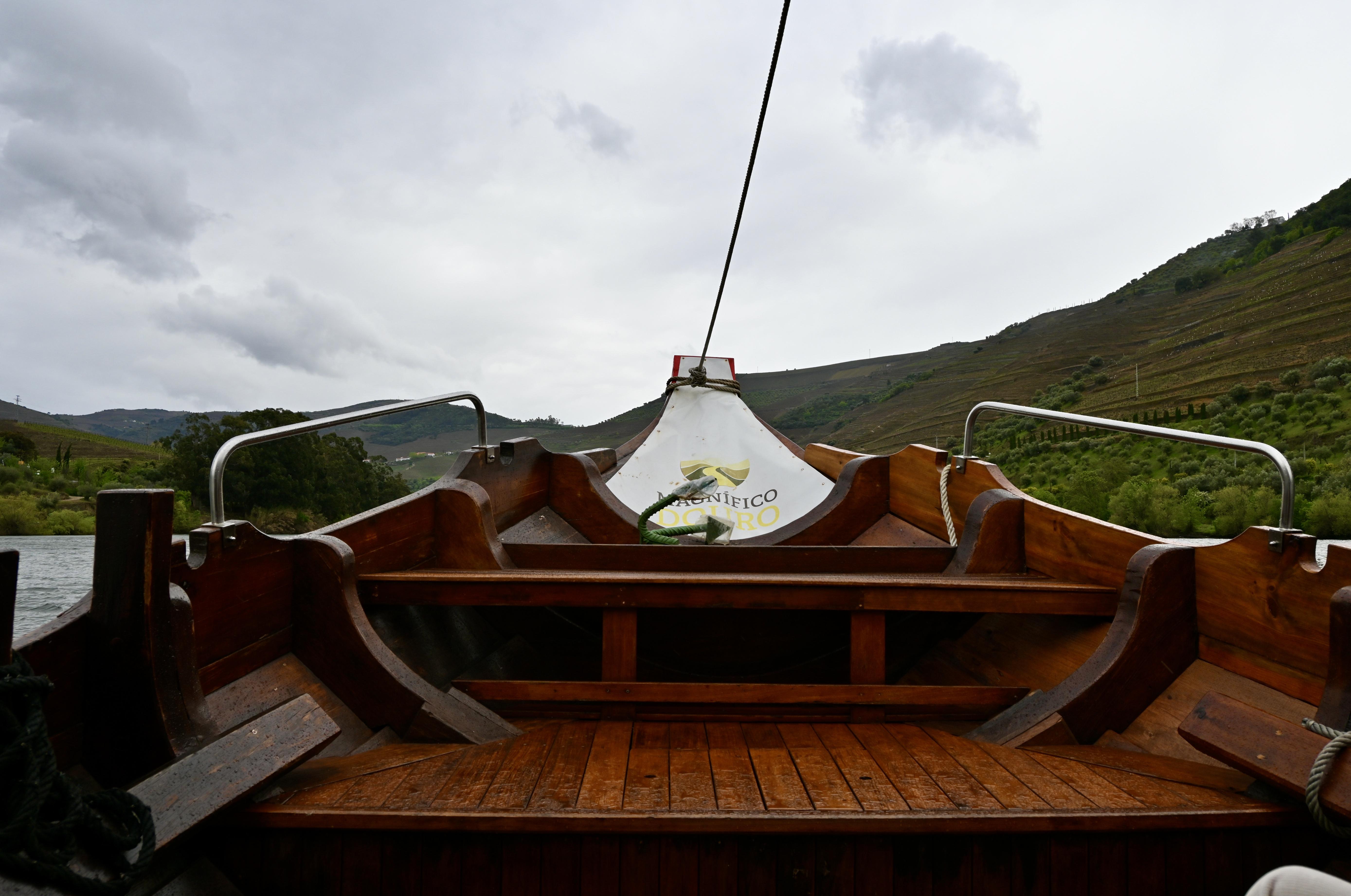 The tour was on a rabelo boat, which is a traditional Portuguese wooden boat that was used for centuries to deliver barrels of port wine from the Douro Valley to Porto. The boats have a flat bottom, which allows them to pass through shallow sections of the river. Rabelo means “little tail”, referring to the long wooden oar used to steer the boat.