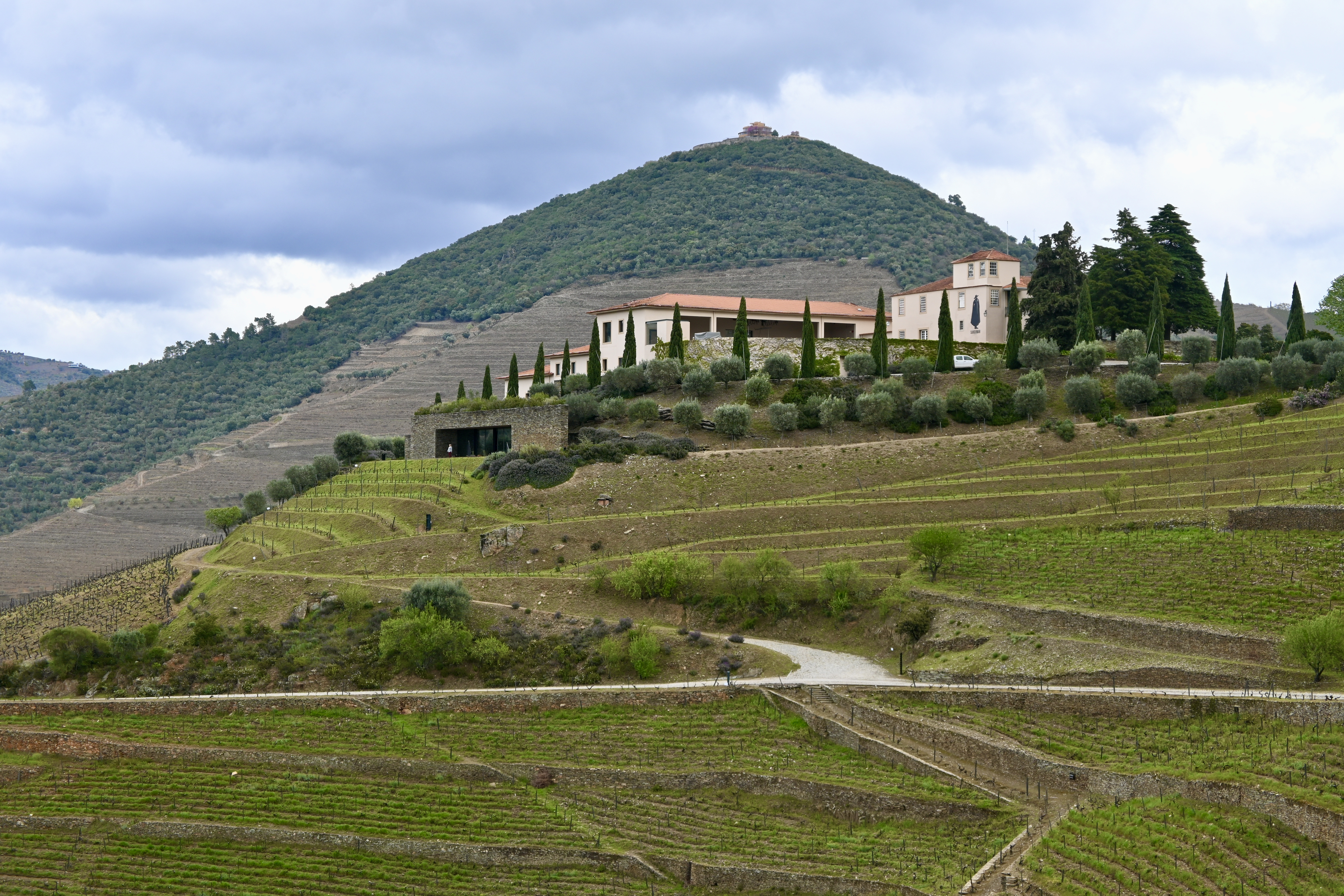 We finally got some hints of blue sky towards the end of the boat ride and Igor had one more stop planned for us on the way home. He took us high into the hills to see the views from Quinta do Seixo, where Sandeman’s Port is made. The winery’s iconic image of a dark figure in a hat and cape can be seen towering above the hills and on signs throughout the valley.