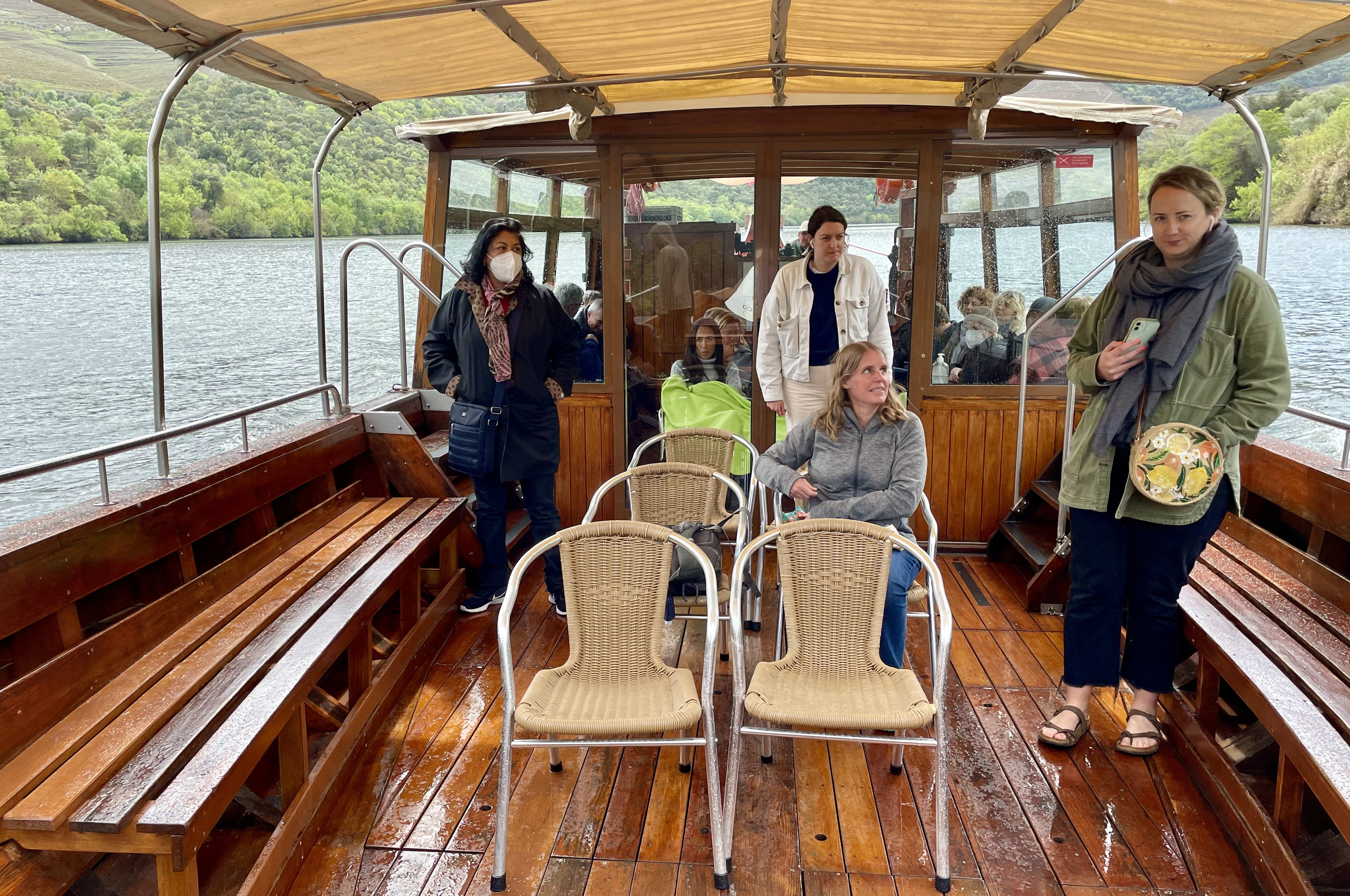 I have to say that this was not the most thrilling of boat tours. We didn’t go very far, only getting out of sight from Pinhao because of the curve of the river. We passed terraced vineyards, old winery buildings, and bridges, but obviously the views weren’t at their most impressive because of the weather. And we never had any idea where we were or what we were looking at. Apparently there was an audio guide that you could access on your mobile phone, but nobody came outside to tell the banished few about it. We just felt like we were cruising down the river on our own.