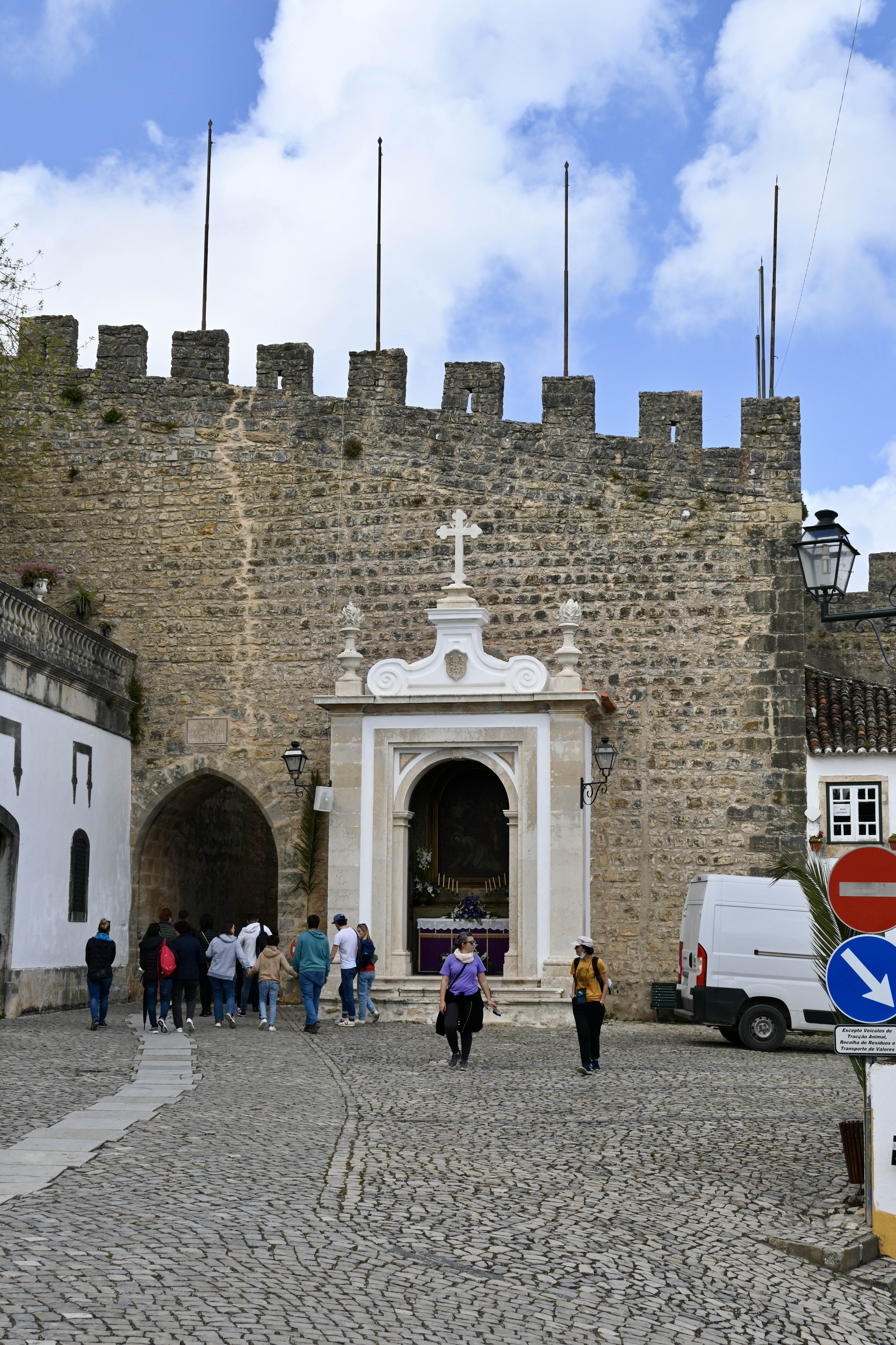 We entered the city through its main entrance, Porta da Vila, an unassuming arched opening in the city’s stone outer wall. Above the entryway is the inscription The Virgin Our Lady was conceived without original sin. This inscription was added on orders of King D Joao IV in 1640 following the Restoration of Independence, a revolution in which Portugal broke free from Spanish rule.