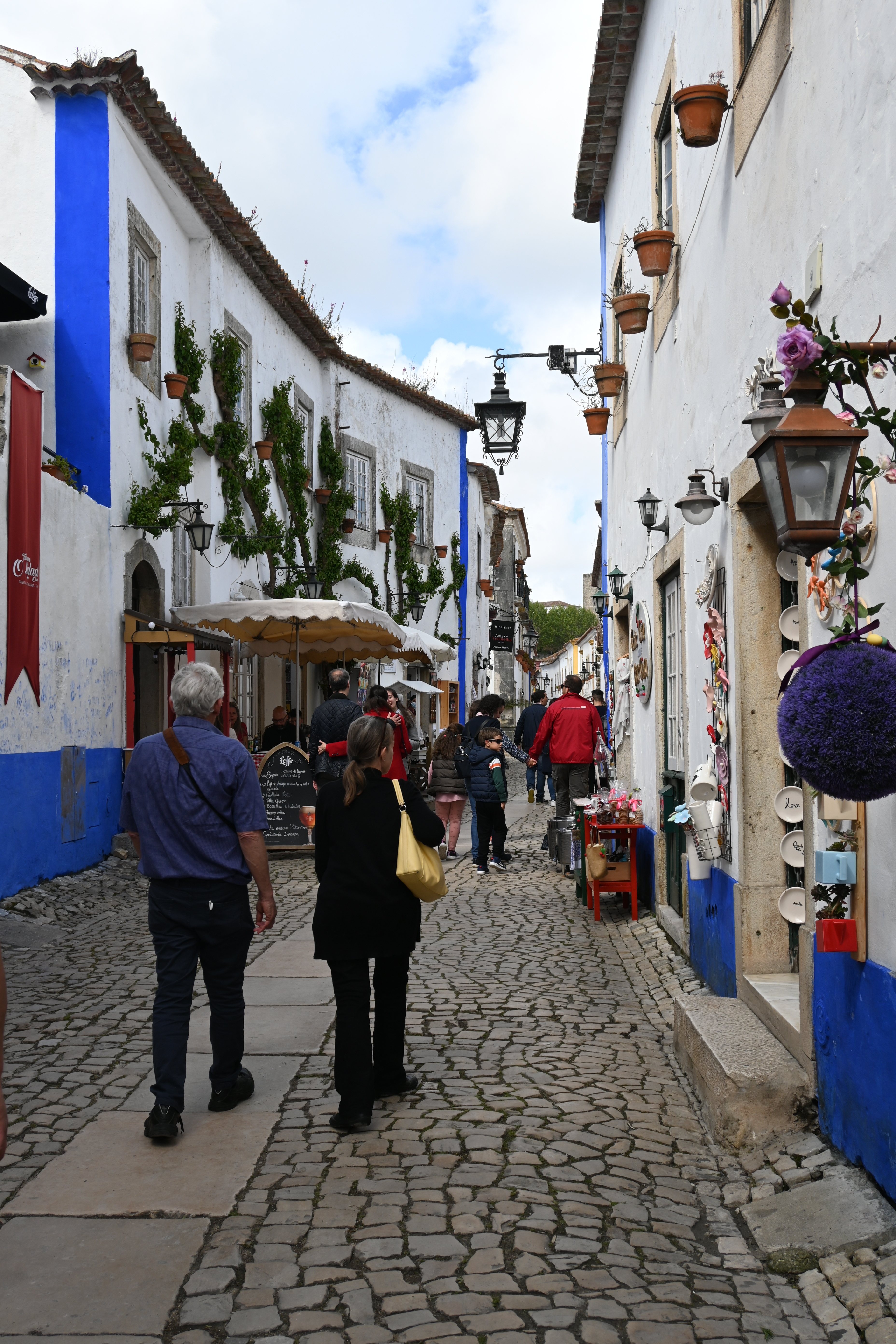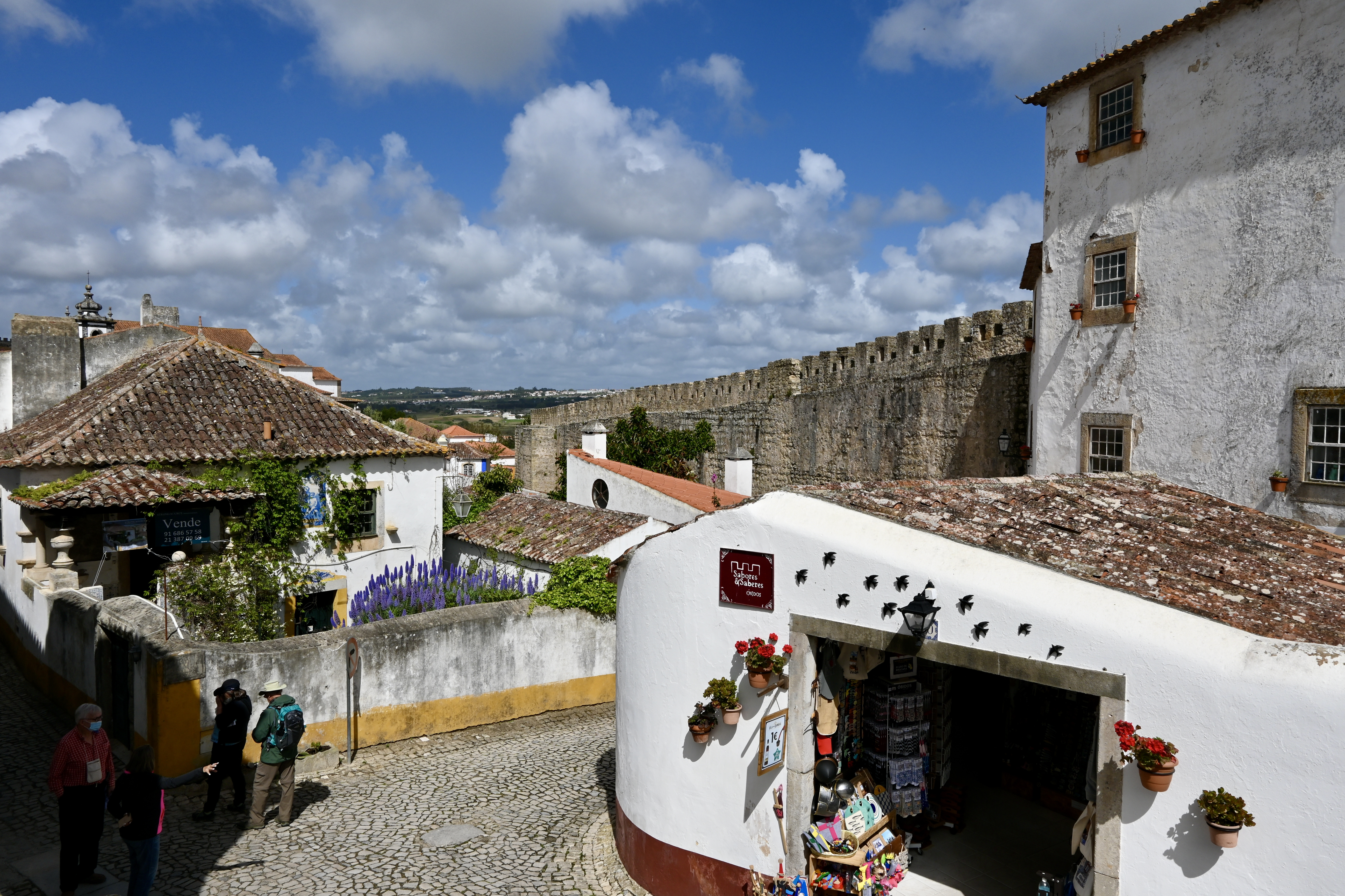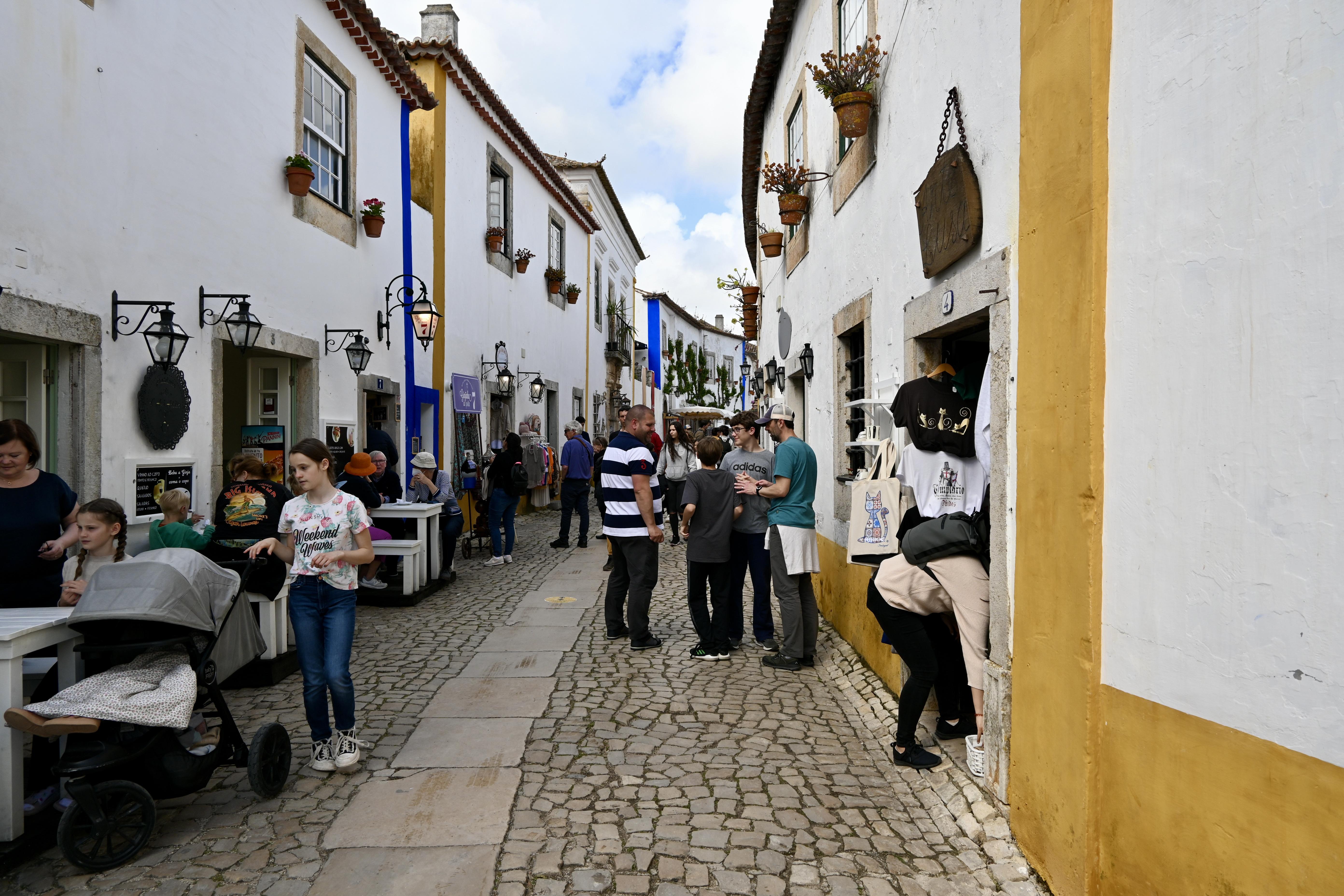 After passing through the second gateway, the town immediately splits into two main cobblestone streets, Rua Direita to the left and Rua Josefa d’Óbidos to the right. The lower street that bears to the right is quieter and lined with restaurants. The upper street is filled with shops and tourists and connects Porta da Vila to Óbidos Castle.