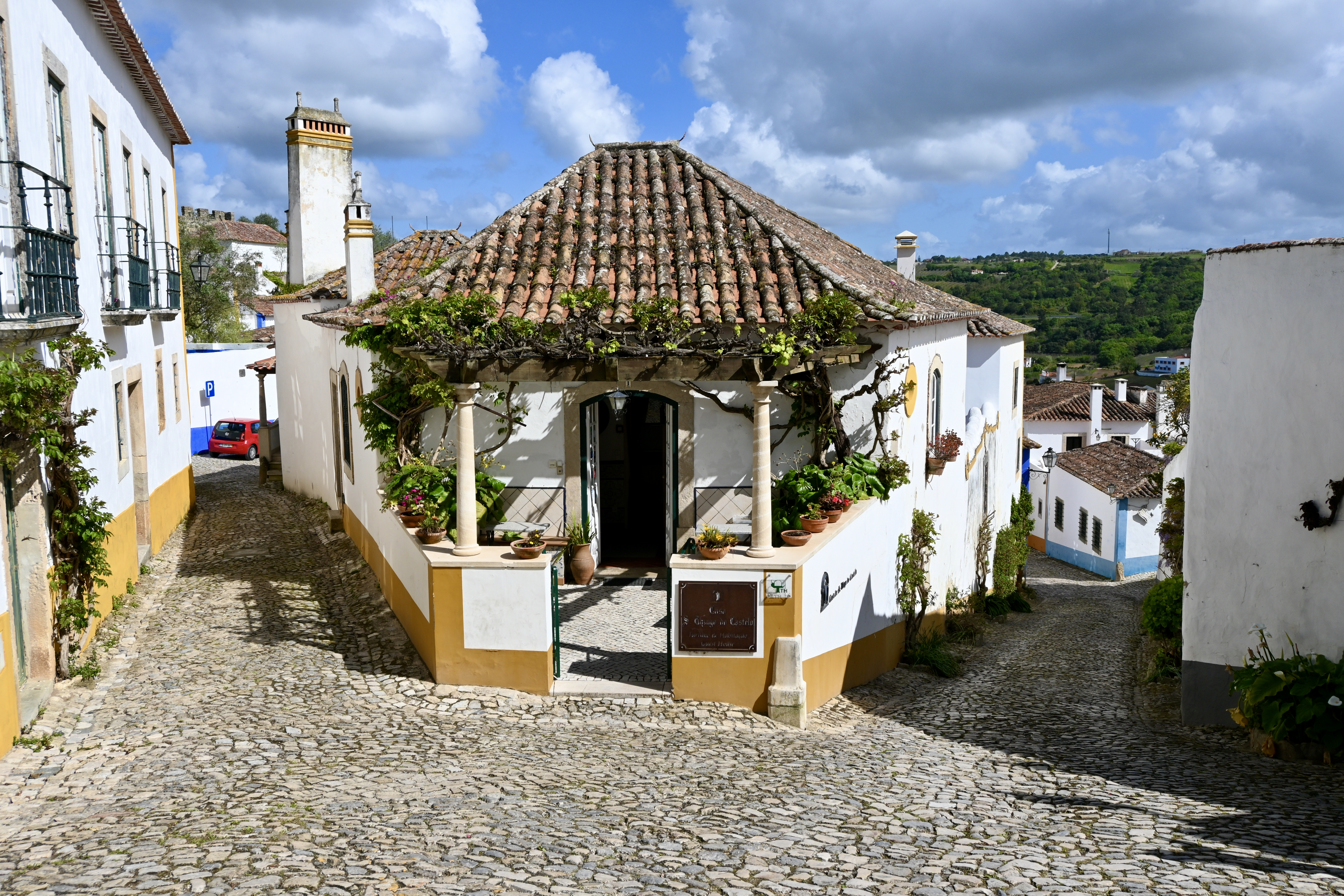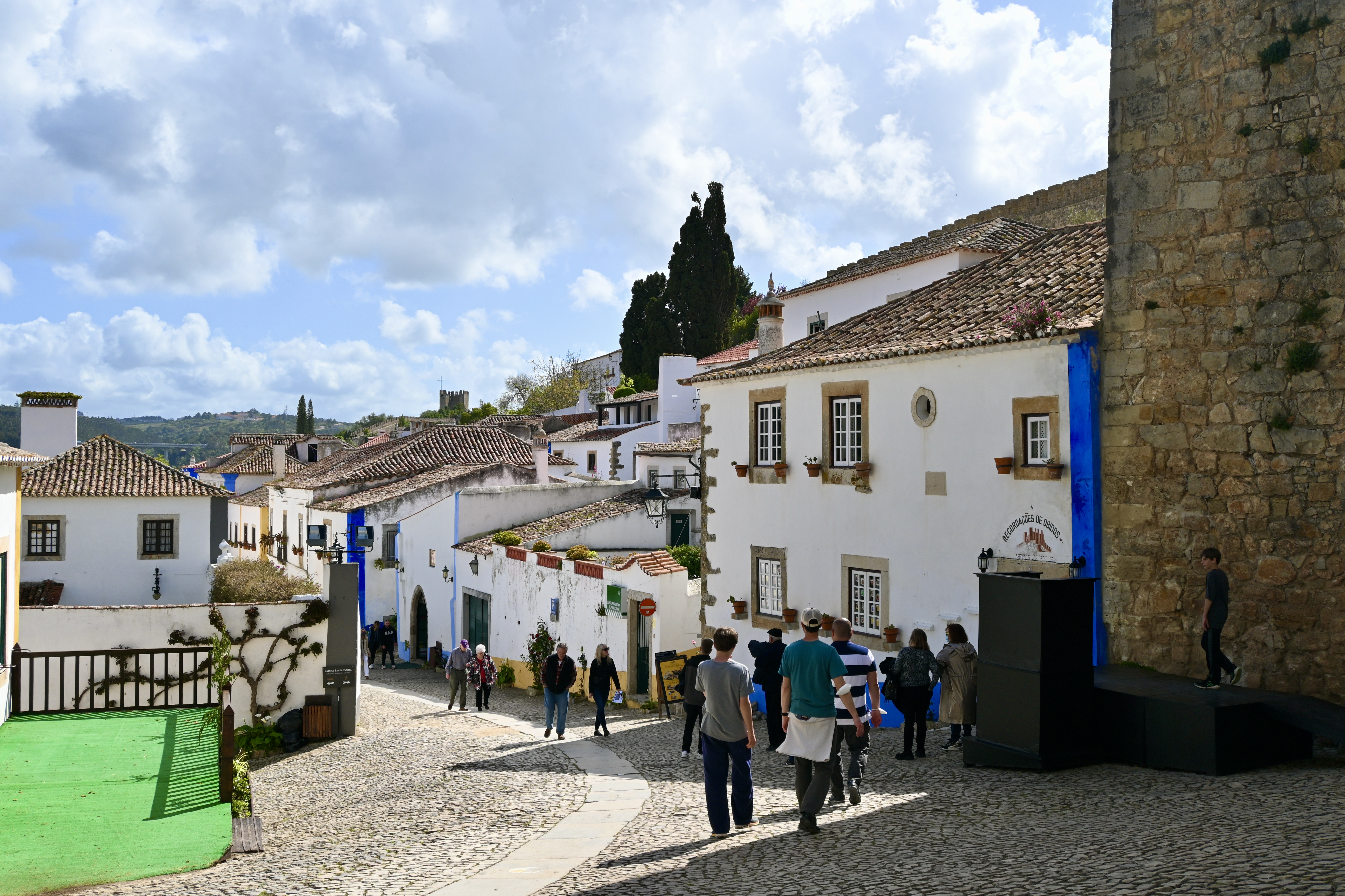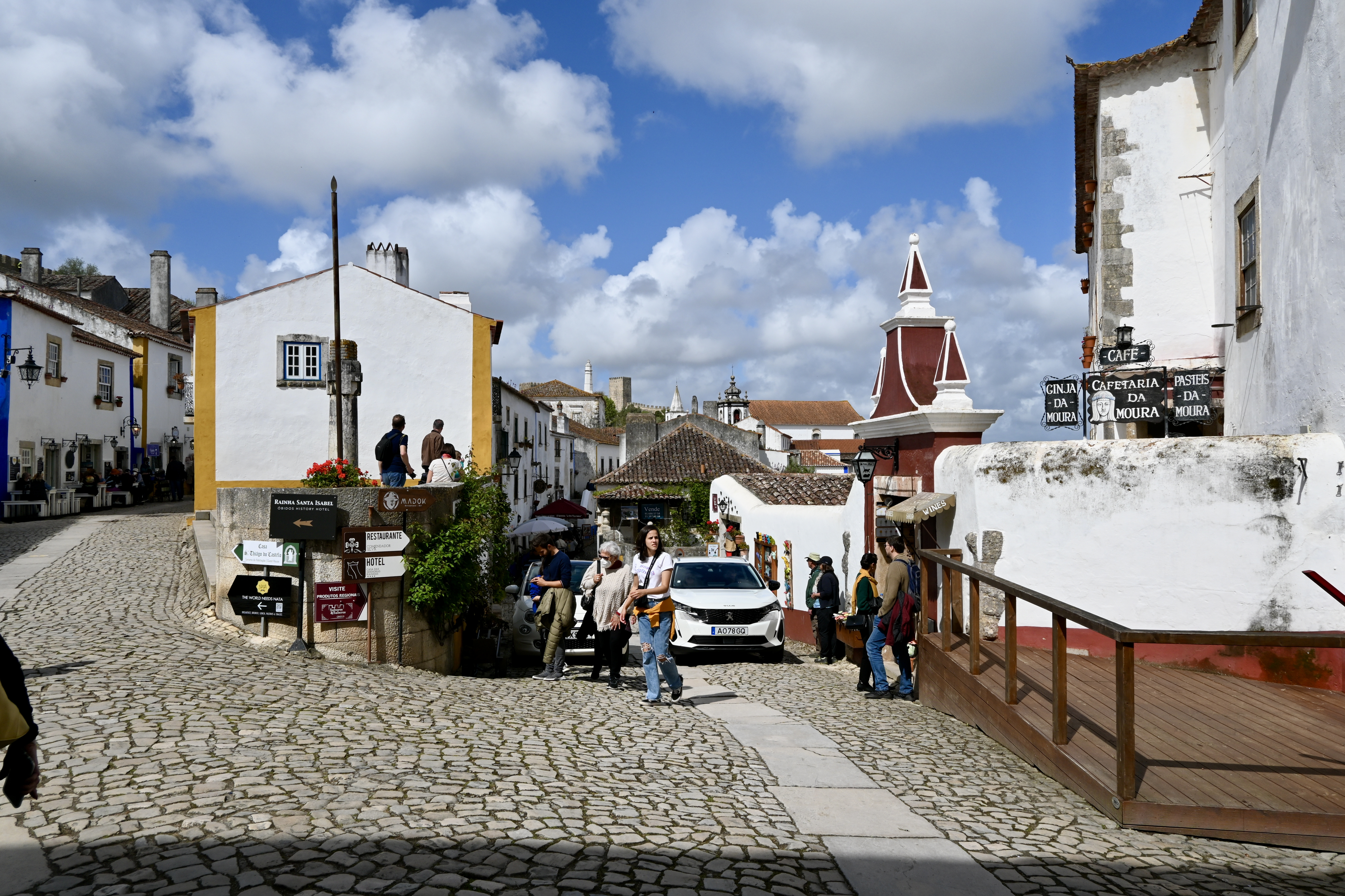 After passing through the second gateway, the town immediately splits into two main cobblestone streets, Rua Direita to the left and Rua Josefa d’Óbidos to the right. The lower street that bears to the right is quieter and lined with restaurants. The upper street is filled with shops and tourists and connects Porta da Vila to Óbidos Castle.