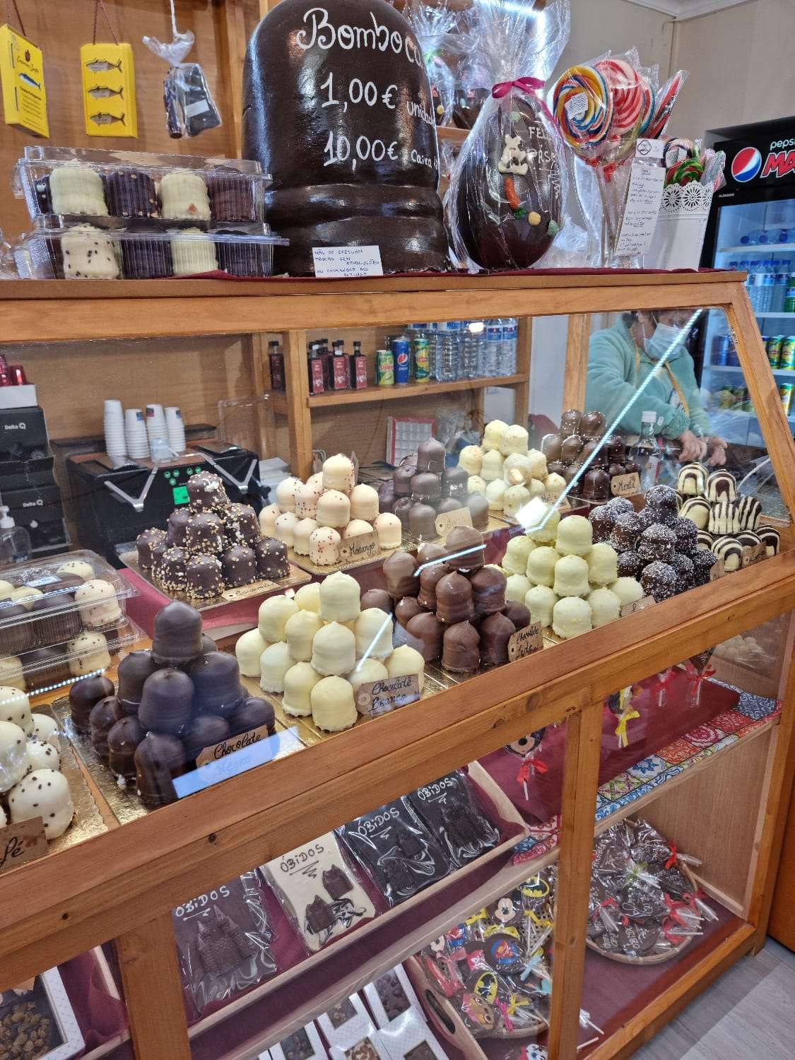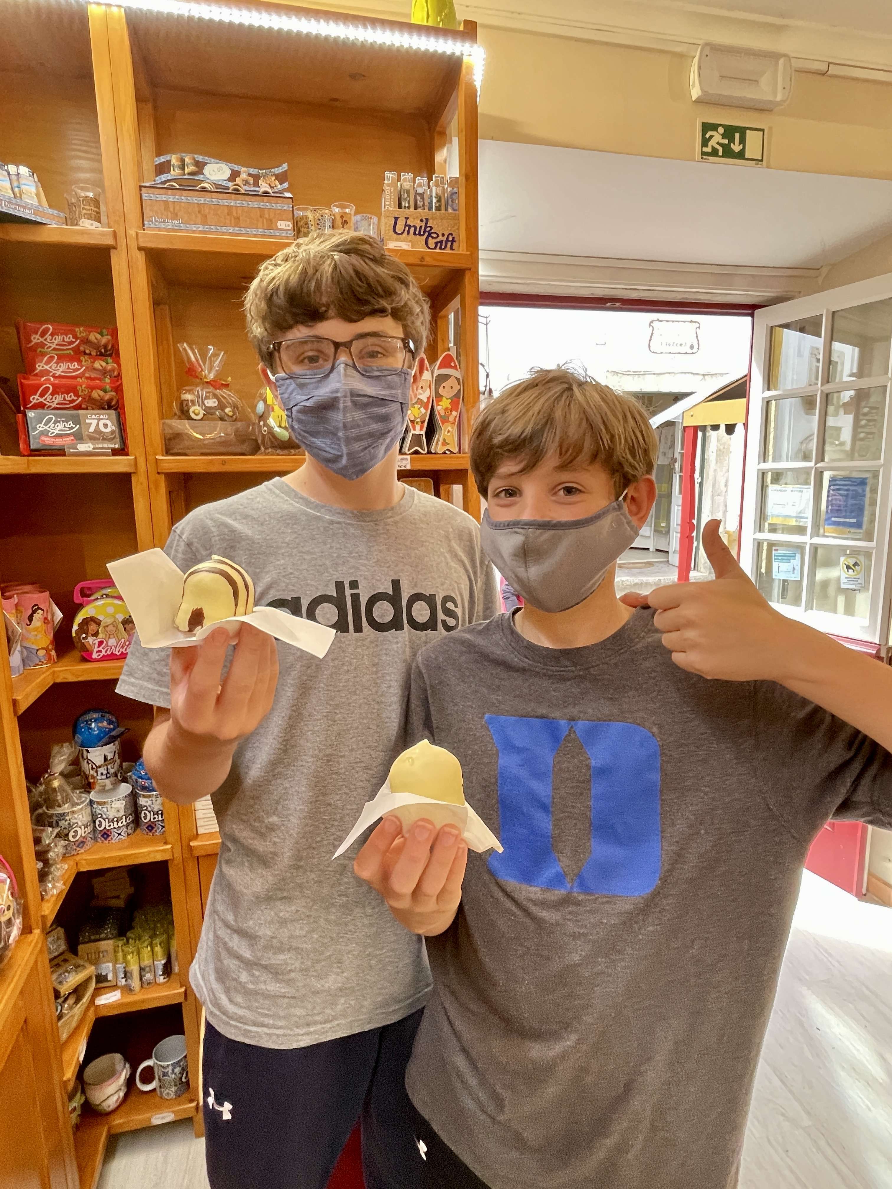 We stopped in a few shops, wandering in and out the cute storefronts. Óbidos is famous for its ginjinha, a cherry liqueur served in edible chocolate cups, and there were lots of places selling them in the streets or inside their stores. Still remembering the taste of the super strong port wine from our Porto tasting, I passed on the liqueur (although I was tempted just to eat the chocolate cup!). But my husband tried the ginjinha and the kids got chocolate covered marshmallows, and everyone enjoyed their taste of Óbidos.