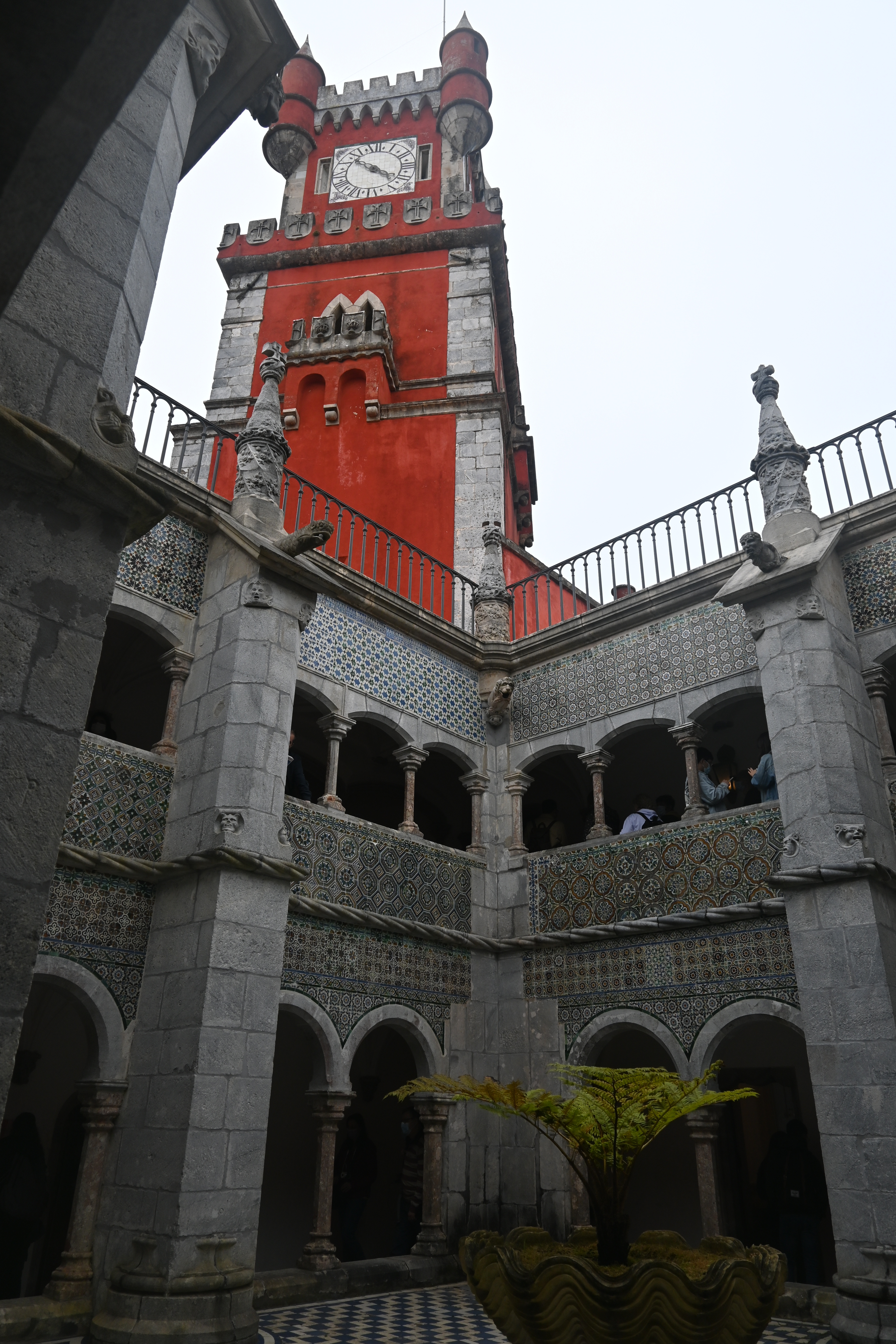 There was already a decent line to buy tickets, and we found that the line for the kiosks moved faster than the line for a real person. We bought the “Palace and Park” ticket, which allowed us to visit the interior of the palace at a specified time. (Although we were there shortly after the park opened at 9:30, the first interior entrance time available was not until 10:30.) We also bought a ticket for the shuttle to take us up to the base of the palace. Although after the car ride it felt like we had already reached the top, it was actually a good bit further to get to the palace itself. While the hike from town to the ticket office is not recommended because it is long and on narrow windy roads with no sidewalk or shoulder, if you have the time and inclination, the hike through Pena Park to get to the palace can be really enjoyable.