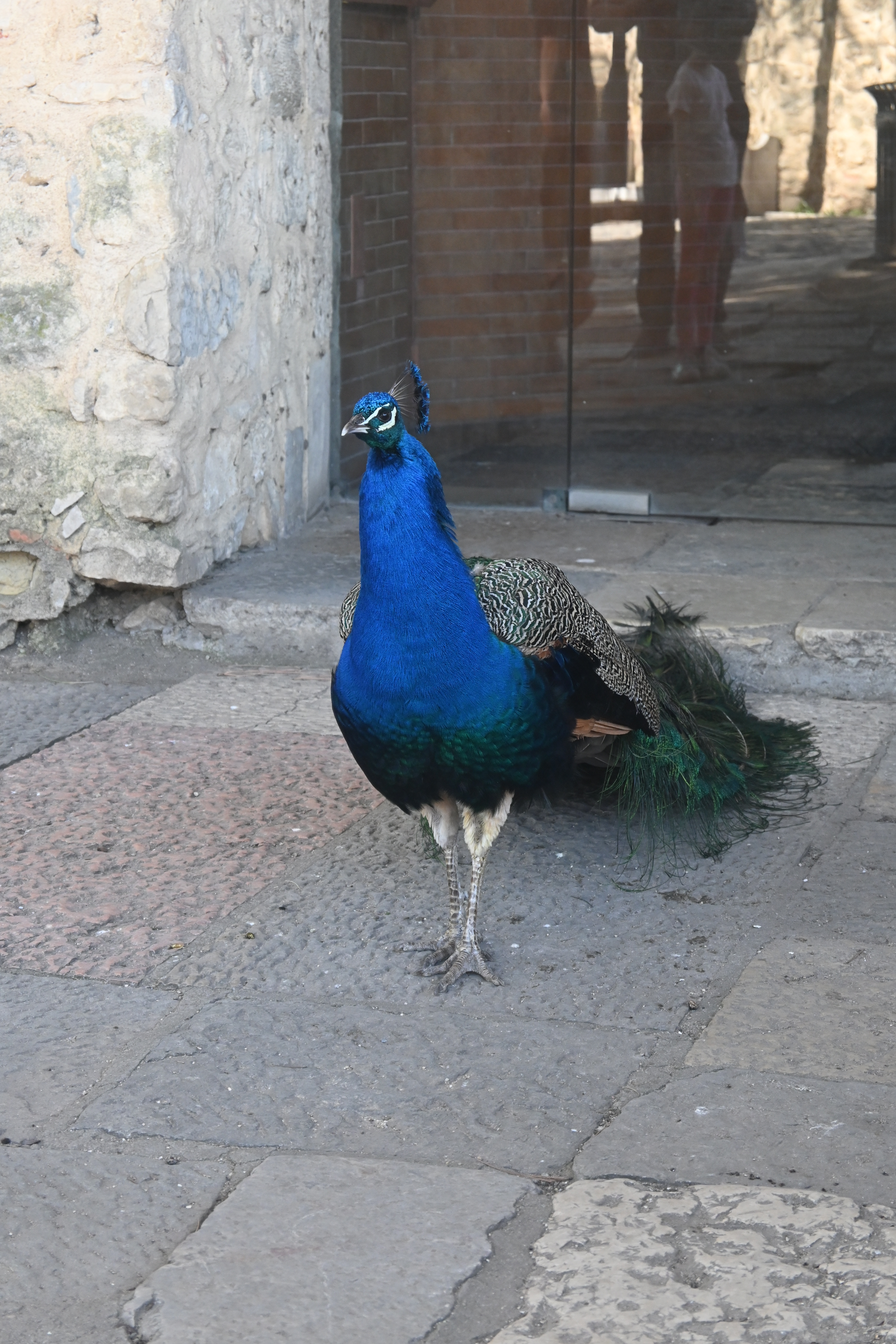 We walked down a narrow lane into the inner fortress and came to a garden area. While the gardens were very pretty, the real attraction here was the peacocks! We had spotted one up on top of a wall as we entered the area and everyone had stopped, craning their necks to get a good look. Little did we know that all we had to do was continue into the gardens and we would see peacocks everywhere. But the biggest surprise of all was an adorable baby peacock following its mom around!