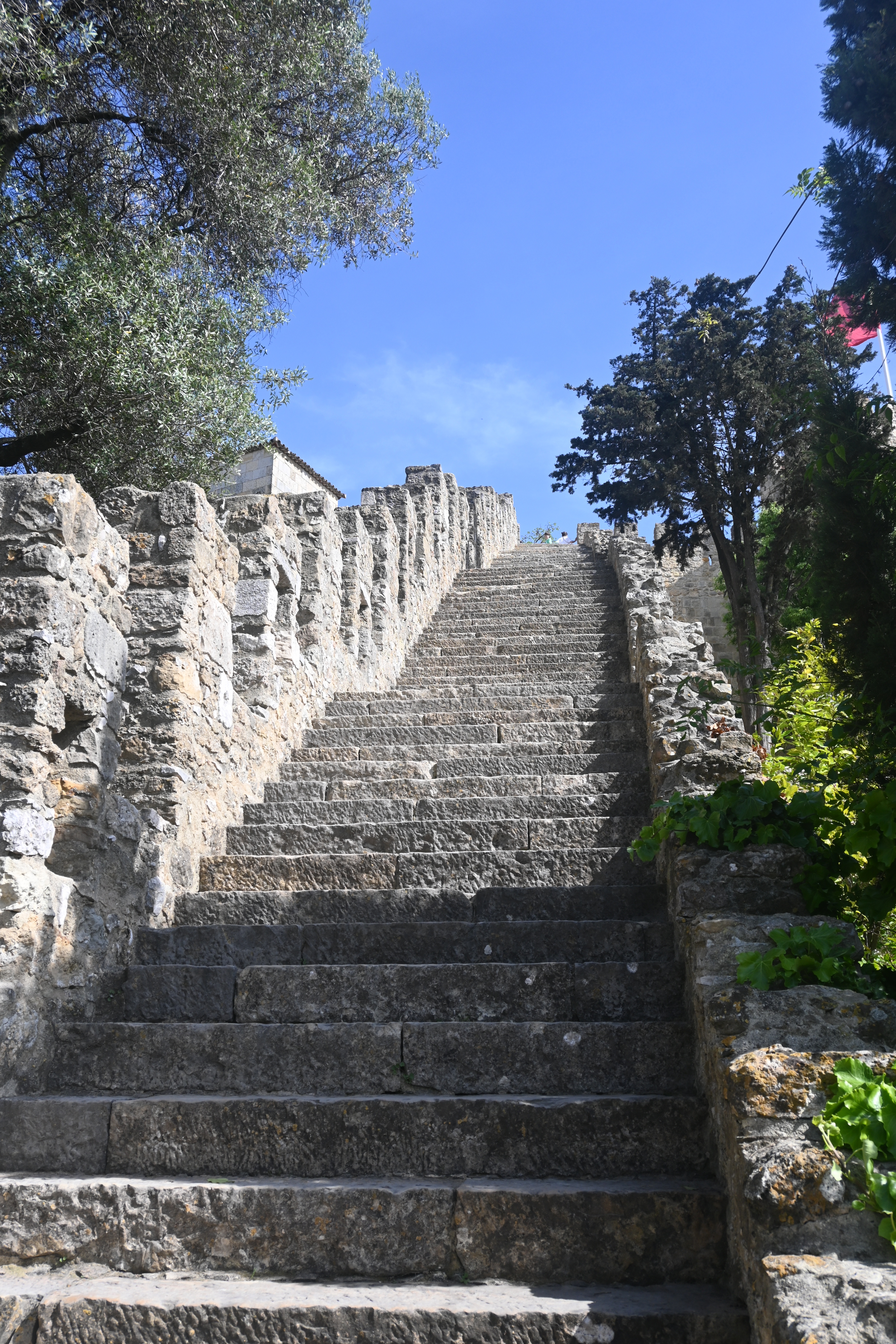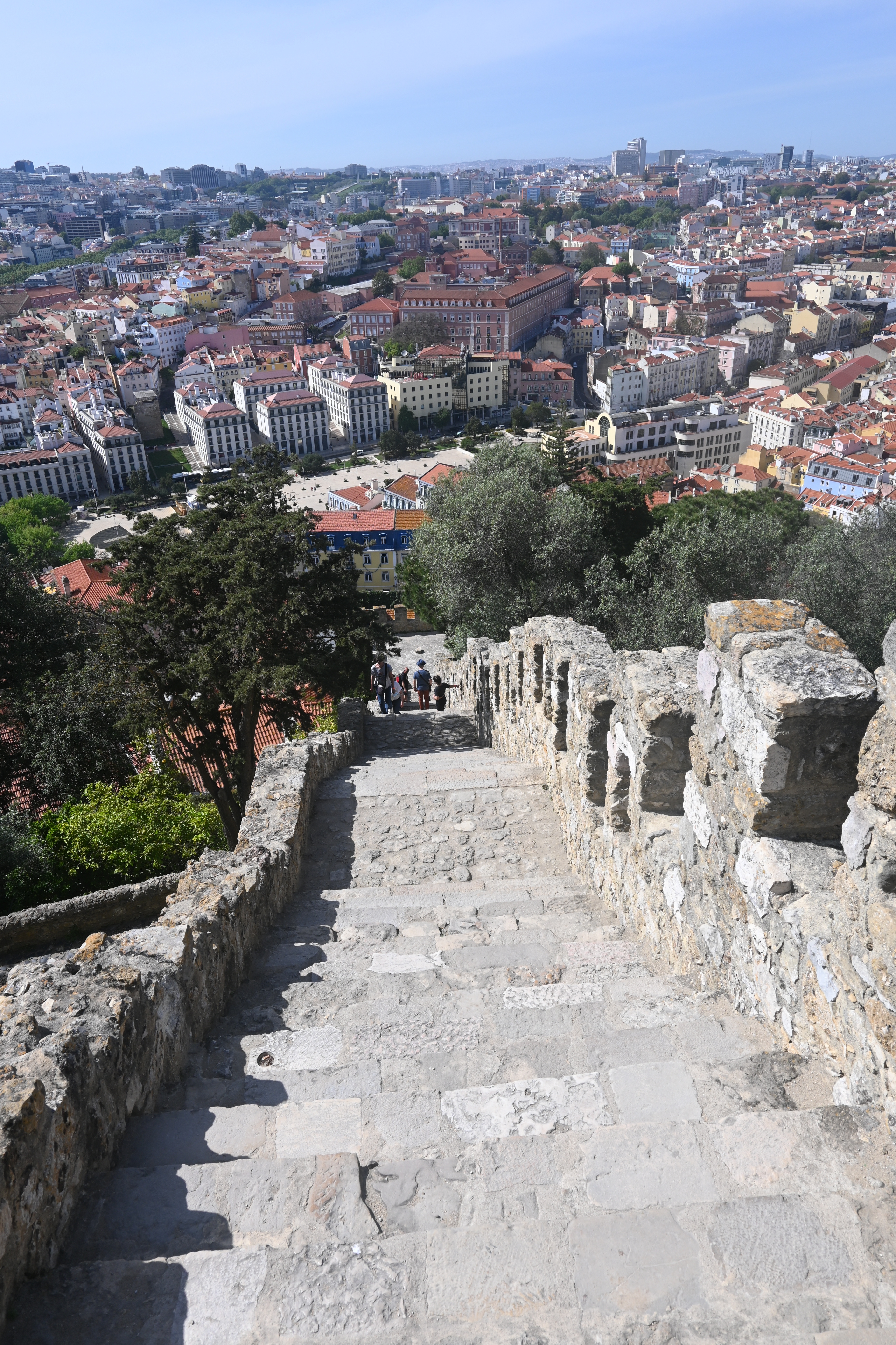We came upon a long set of steep stairs that went far down the hill to Torre de São Lourenço, one of the remaining outer fortifications. The stairs are protected by battlements and provided safe access to a well outside the castle. I was the only who made the trek down the stairs, and I’ll be honest… it may not have been worth it. The view from the tower was less impressive than from the higher areas of the castle. What was impressive was the steps themselves and the realization that well water was lugged up and down these steps.