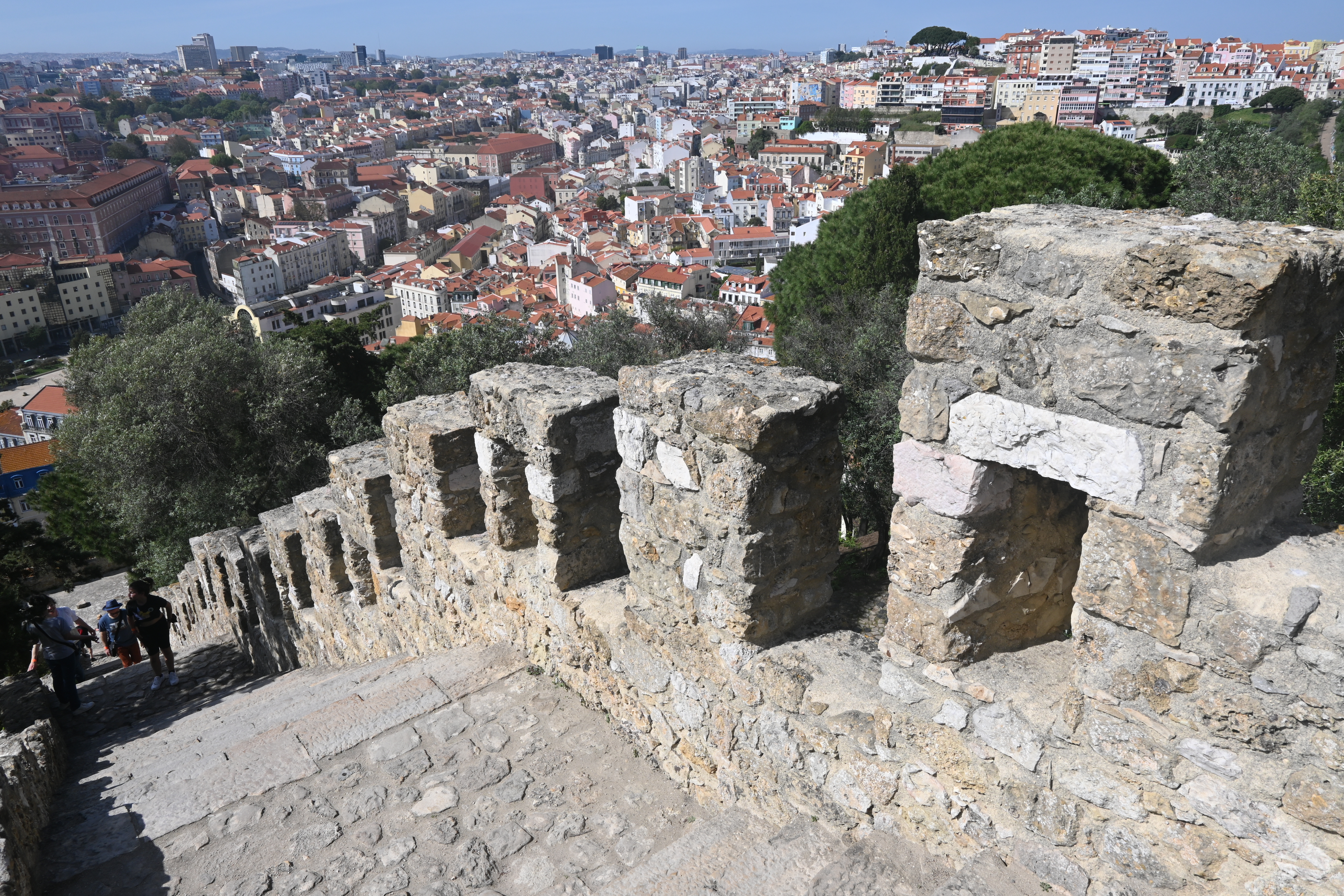 After a fun morning at Oceanário de Lisboa, we ate lunch in Parque das Nacoes and then took an uber to Castelo de São Jorge. Perched high in the hills of Lisbon, the site was settled in the 7th century BC, while the castle itself was built by the Moors in the 11th century. In 1147 the castle was captured by Christian Crusaders and over the next few centuries it served as both a defensive structure and a royal residence. In the late 14th century the castle was dedicated to Saint George, the patron saint of England, when King Alfonso Henriques gifted it to his English wife, Philippa of Lancaster. The castle was expanded at various points over the centuries until it sustained significant damage in the earthquake of 1755. It underwent a major renovation in 1938 that was somewhat historically inaccurate but turned the site into a major tourist attraction.