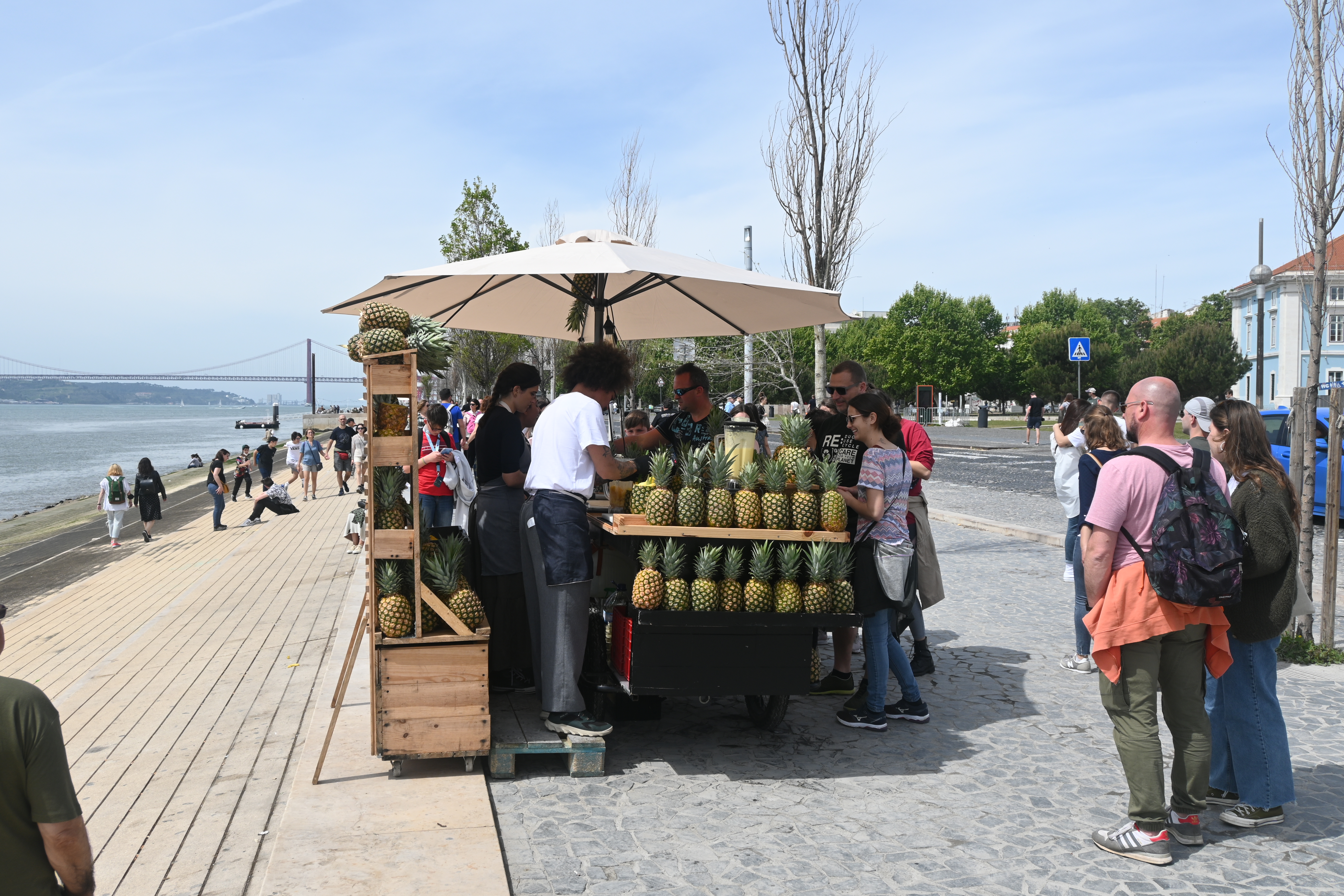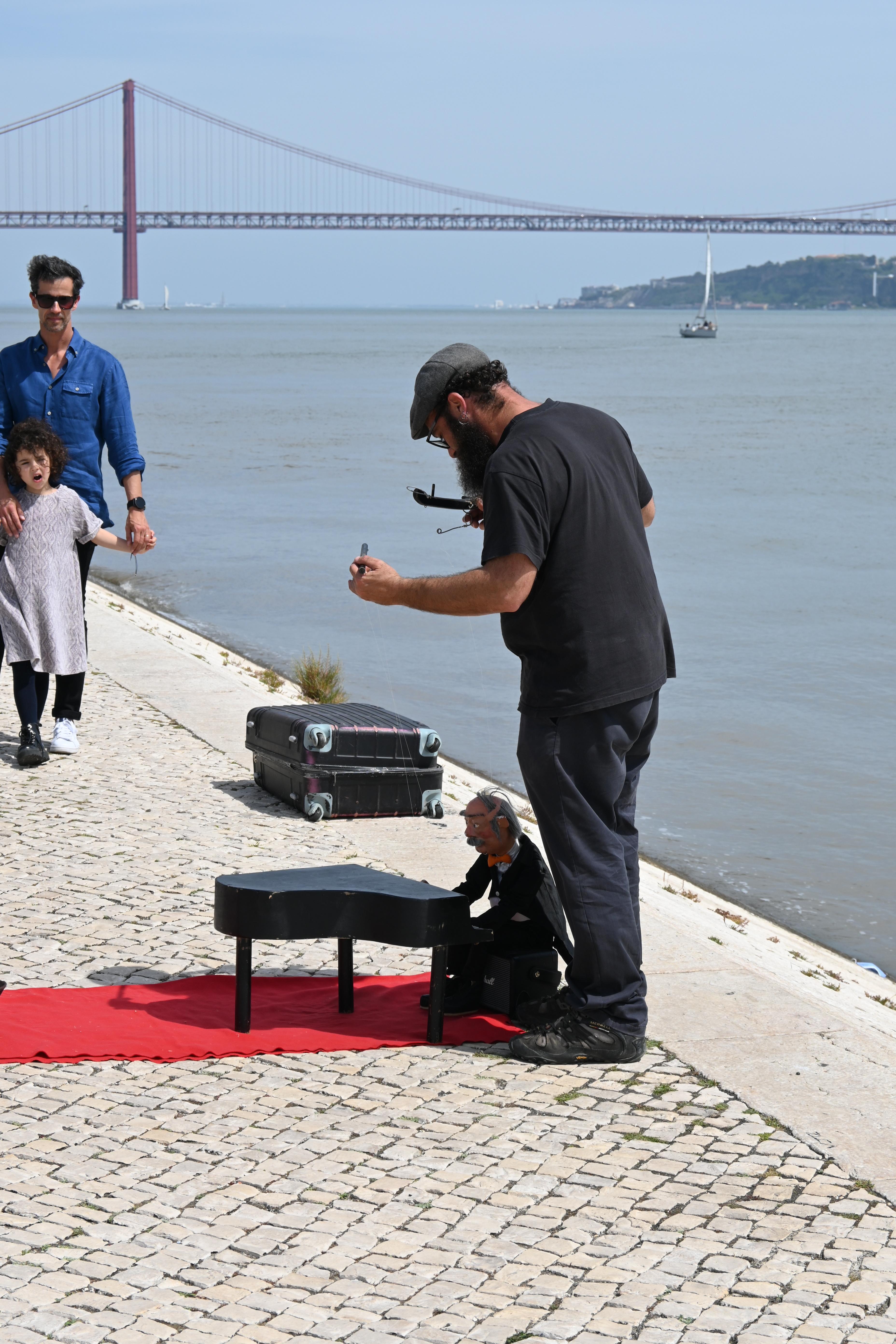 We walked along the water towards Belém Tower, stopping to enjoy a street performer with a piano-playing marionette, a quick work-out at a random outdoor fitness area, and lunch at an Italian place.