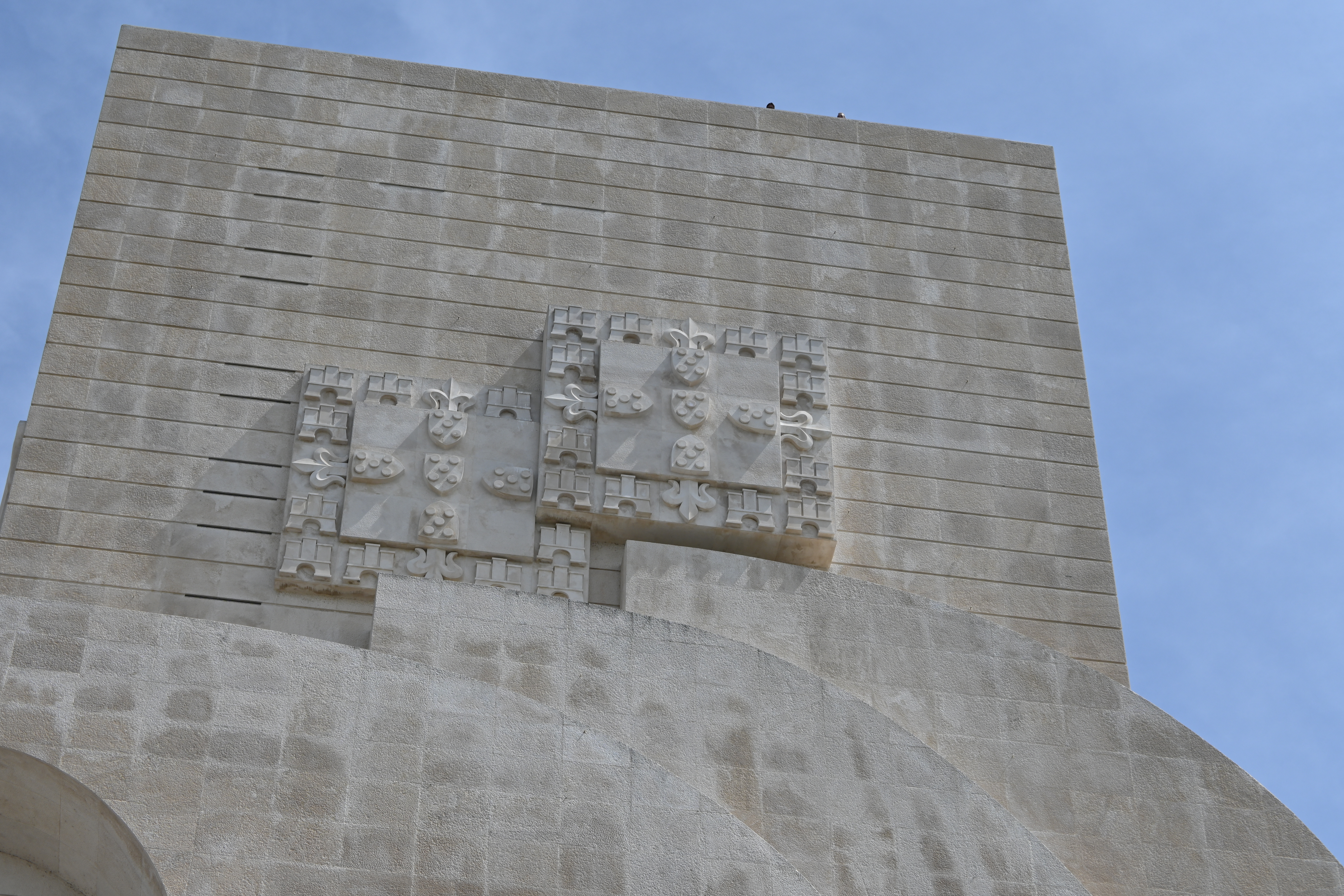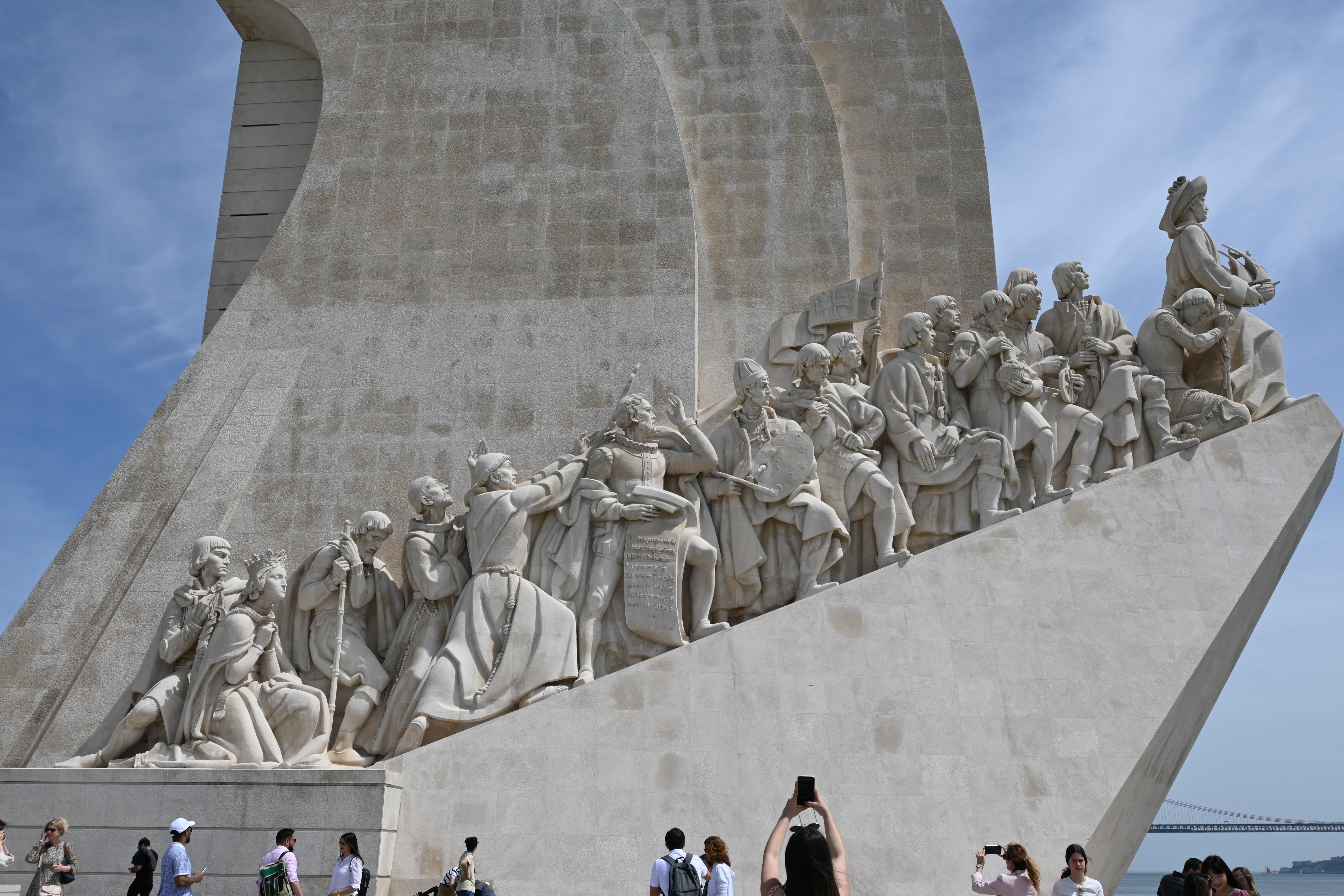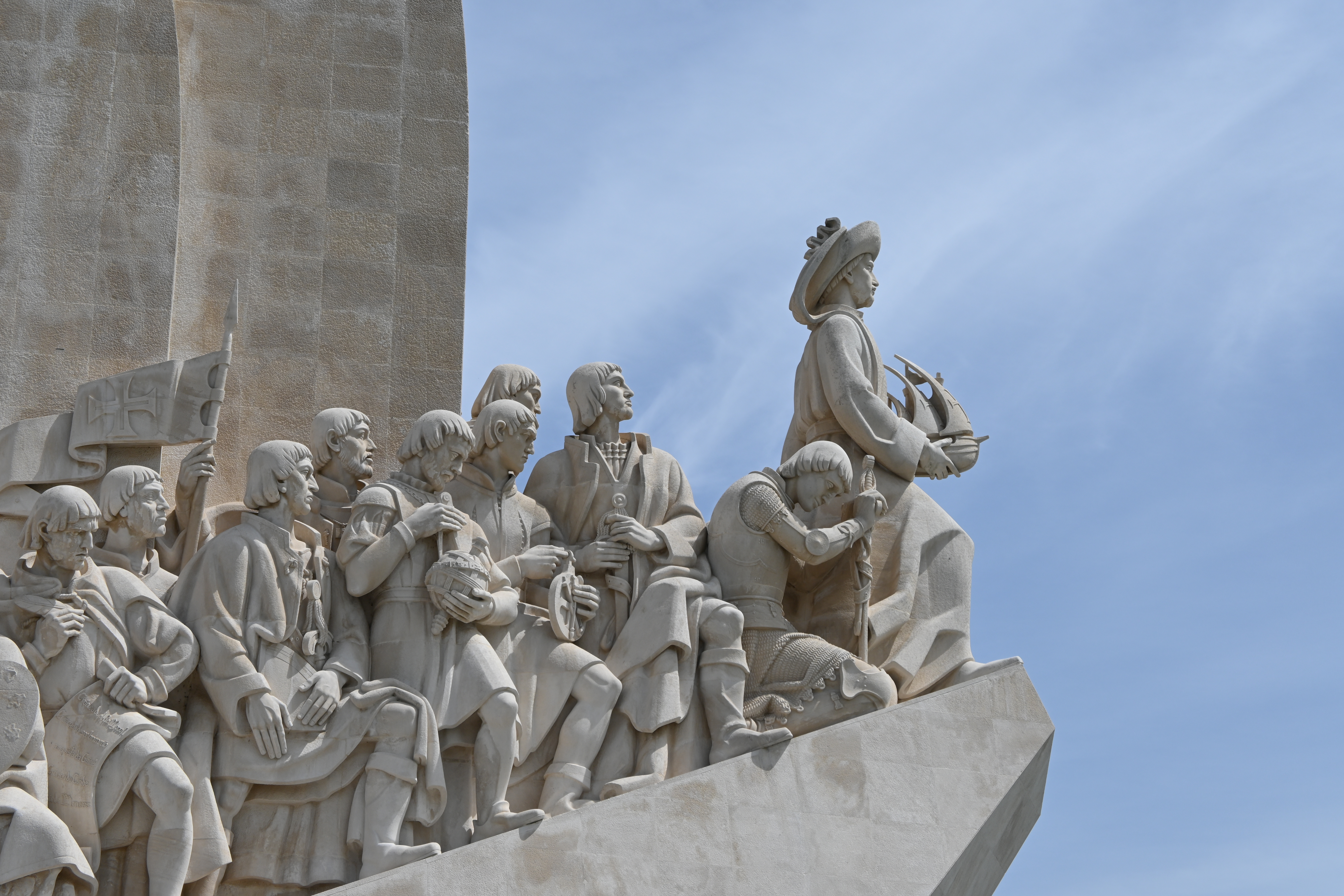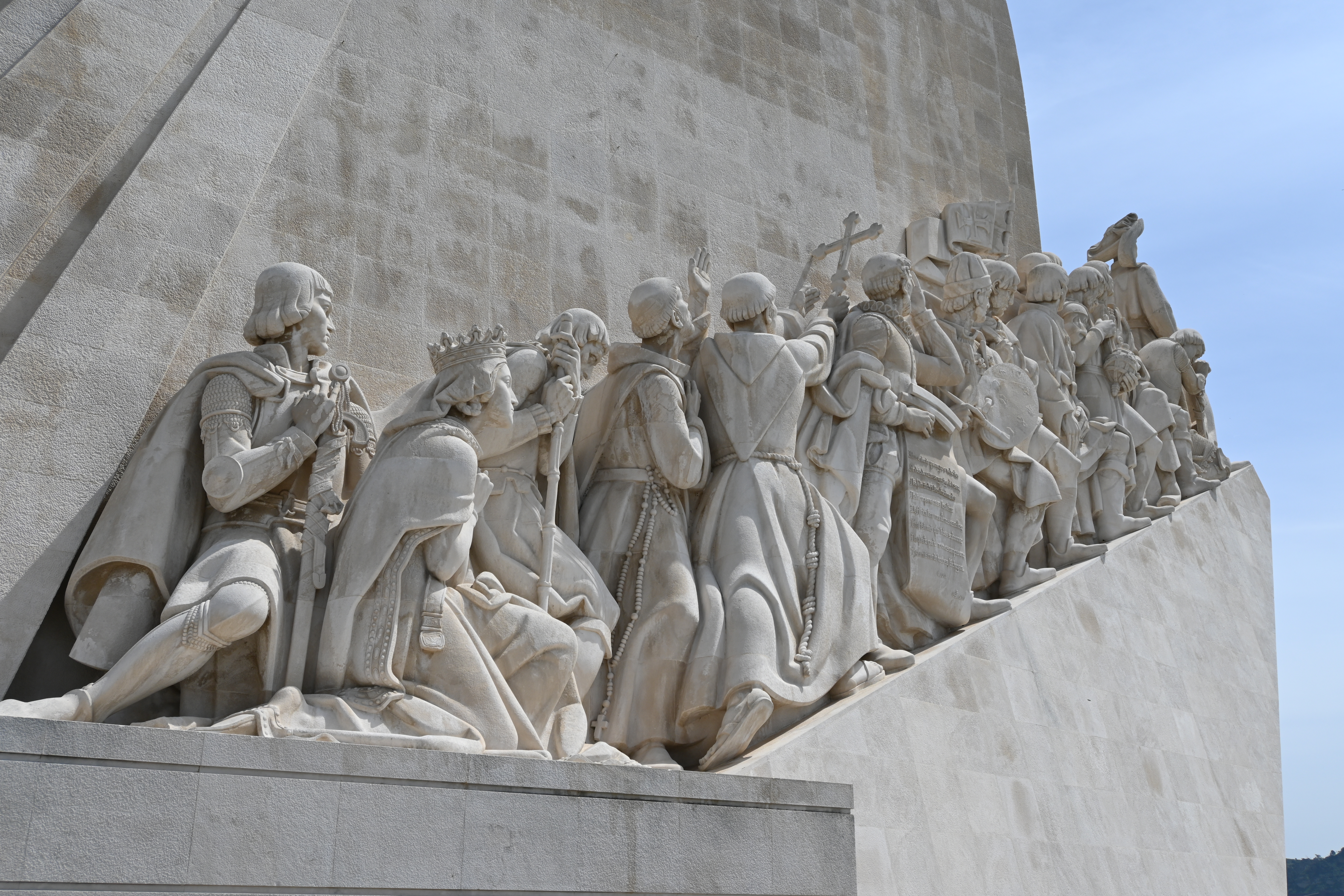 Across the street is the impressive Padrão dos Descobrimentos, or Monument to the Discoveries. It was a little confusing to get there, as we had to find the pedestrian tunnel that went under the very busy road, but we eventually figured it out. The monument is a tribute to the great explorers of Portugal. The 170 foot concrete statue of a caravel, or Portuguese sailing ship, features 32 men who played a significant role in the Age of Discoveries, with Henry the Navigator leading the way. The details on the limestone figures are really impressive, as is the overall structure of the monument. From the sides it is clearly the prow of a sailing ship, but from the back it takes the form of a sword within a cross.