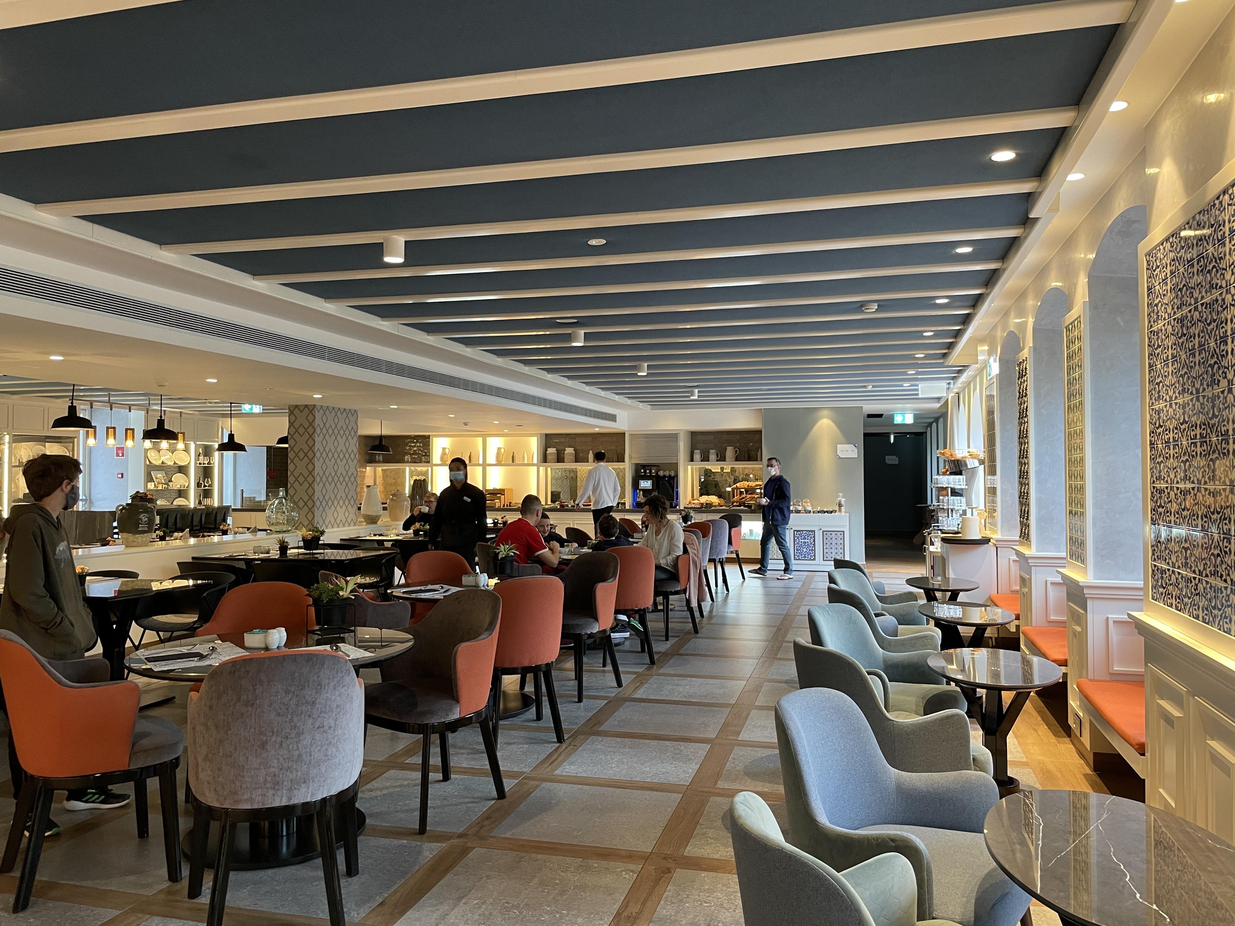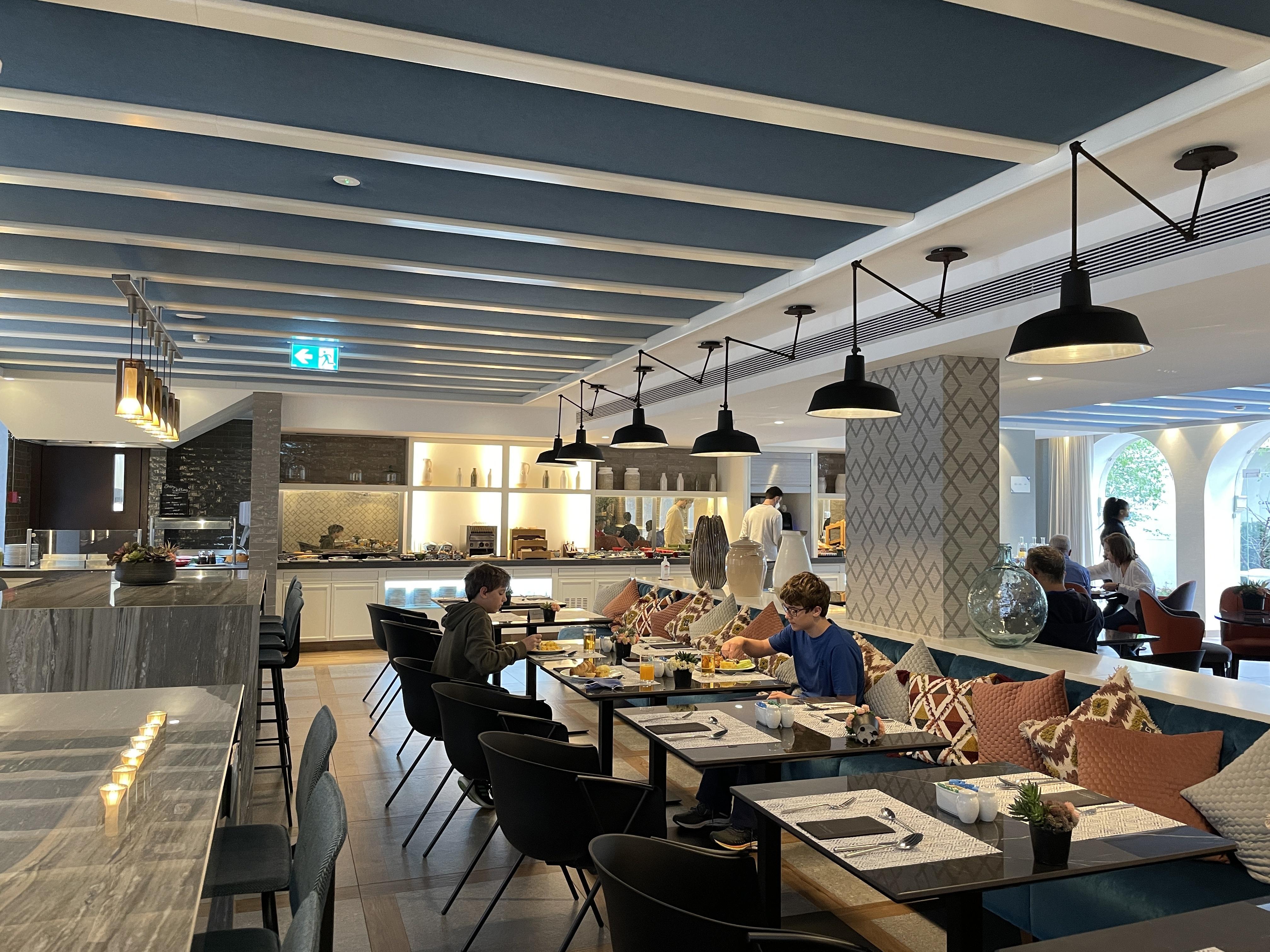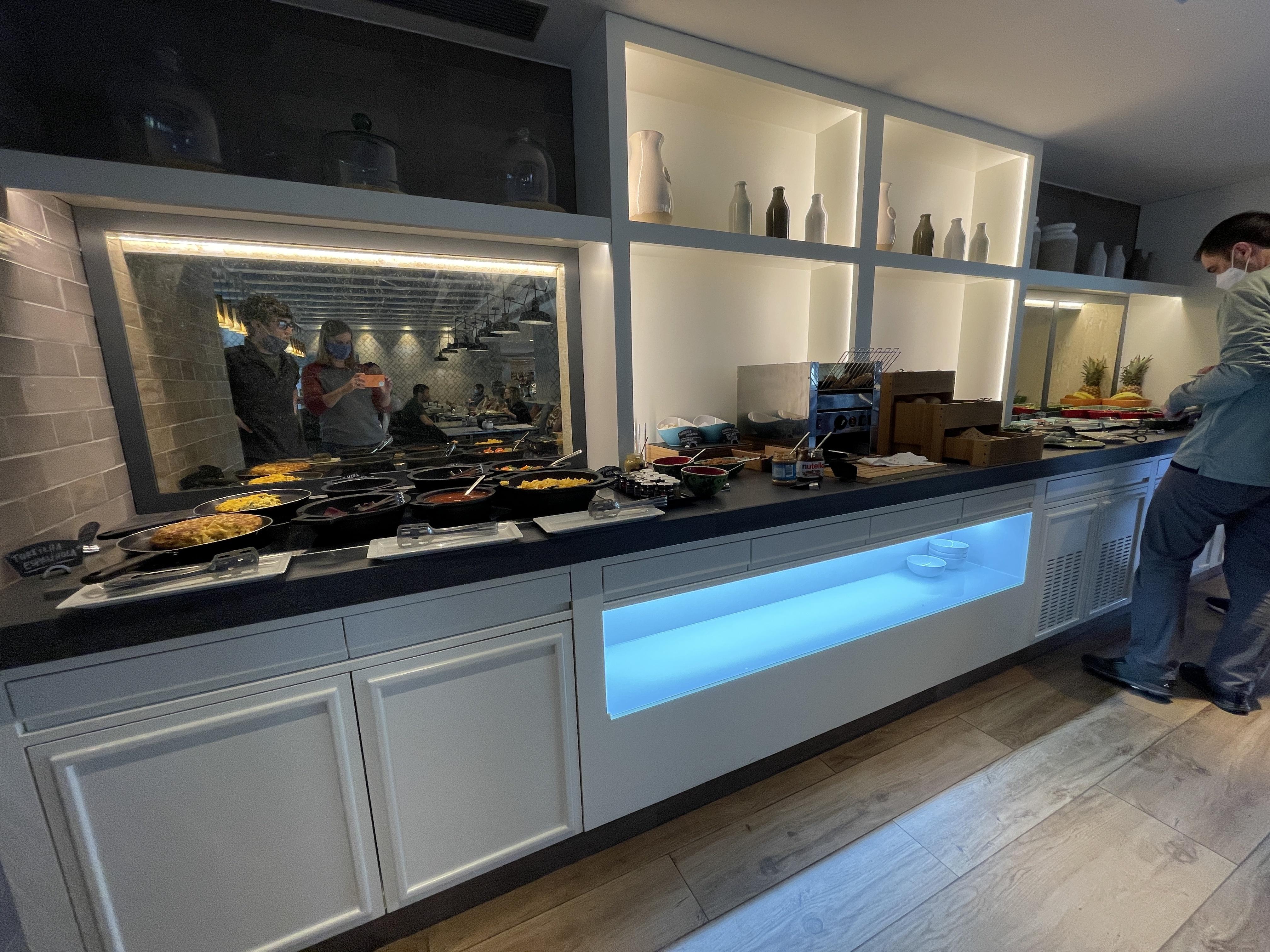 The lobby is modern, yet warm and inviting. The staff is friendly and helpful. And the included breakfast is phenomenal. They had a huge variety of fresh fruits and breads, as well as hot entrees like eggs and potatoes and a make-to-order pancake and omelette station. And the family favorite was the huge orange juicer that squeezed fresh juice from a bucket of oranges; it was as much fun to watch as it was delicious to drink.