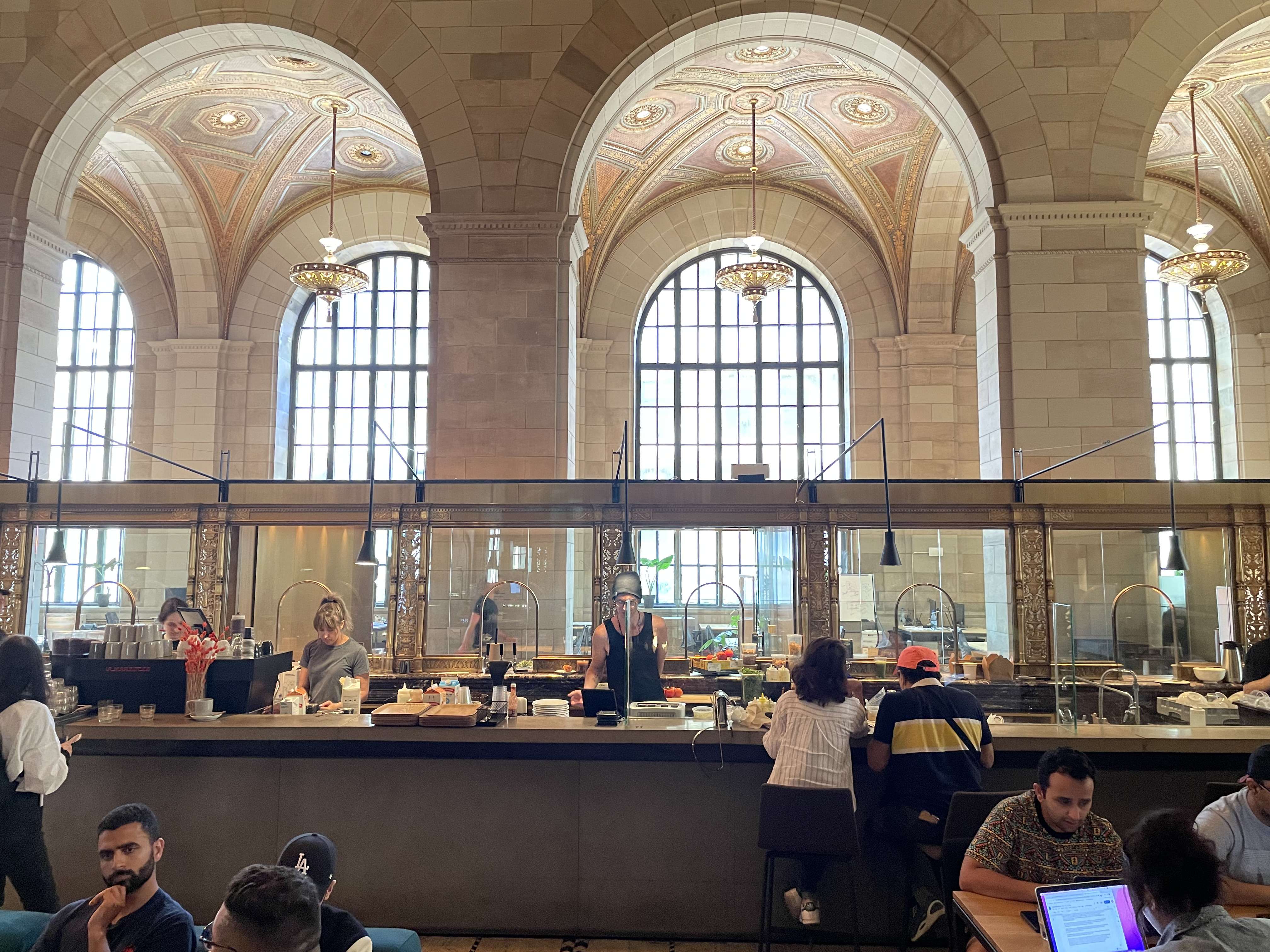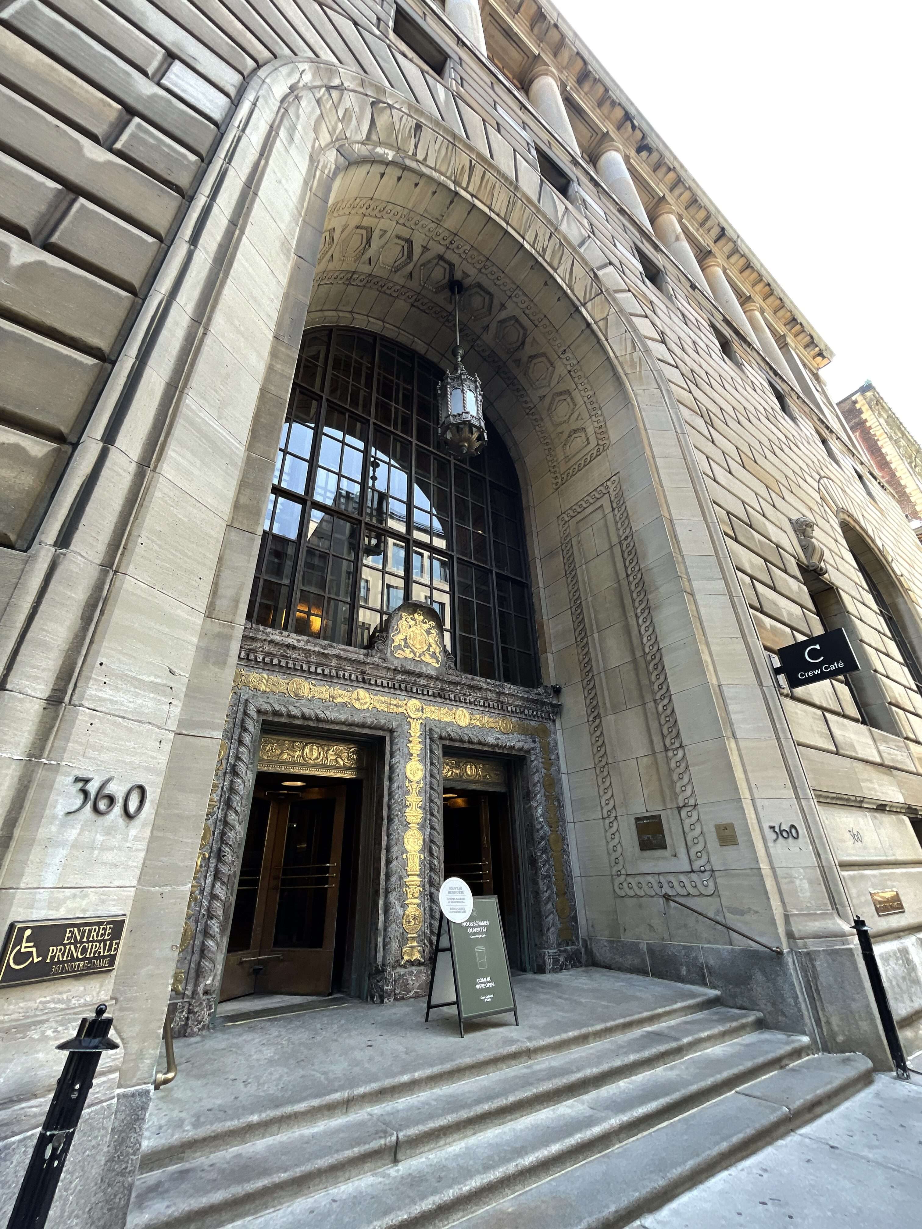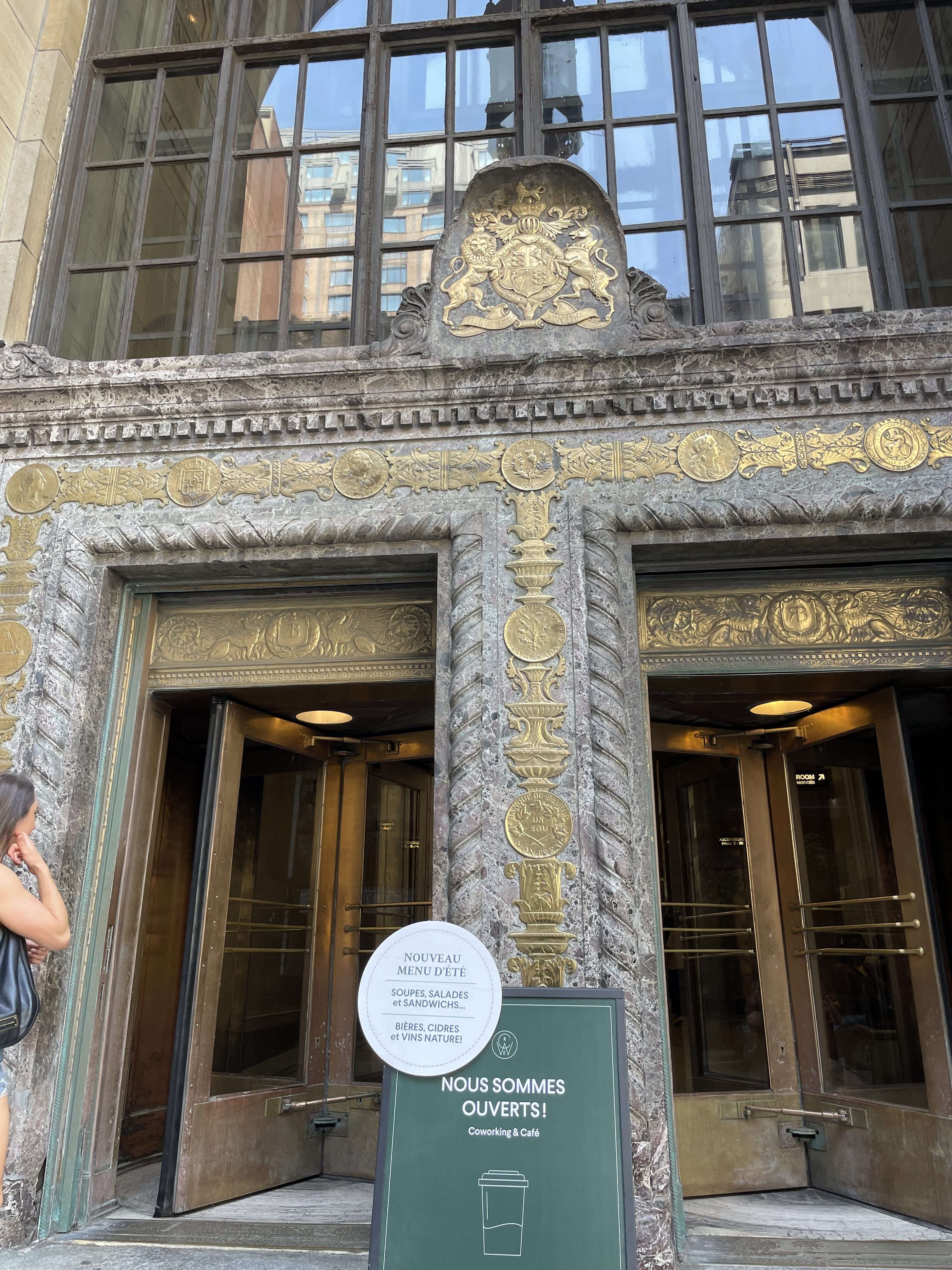 After spending some time taking in all the sights and sounds of Place d’Armes, I continued along Rue St Jacques, also known as Canada’s Wall Street. The Royal Bank Tower found at 360 Saint-Jacques Street was Montréal’s tallest building when it was built in 1928. After standing empty for 6 years, the beautiful building underwent a very unique transformation. In 2016, the space was reopened as Crew Collective & Cafe. Part cafe, part co-working, meeting and event space, Crew brilliantly repurposed the stunning interior of the historic building to be used as a social and professional meeting space. Cafe workers brew coffee in front of the old teller’s counter, while customers sit at the deposit slip desks. We spent about an hour here one afternoon and really enjoyed the unique experience.